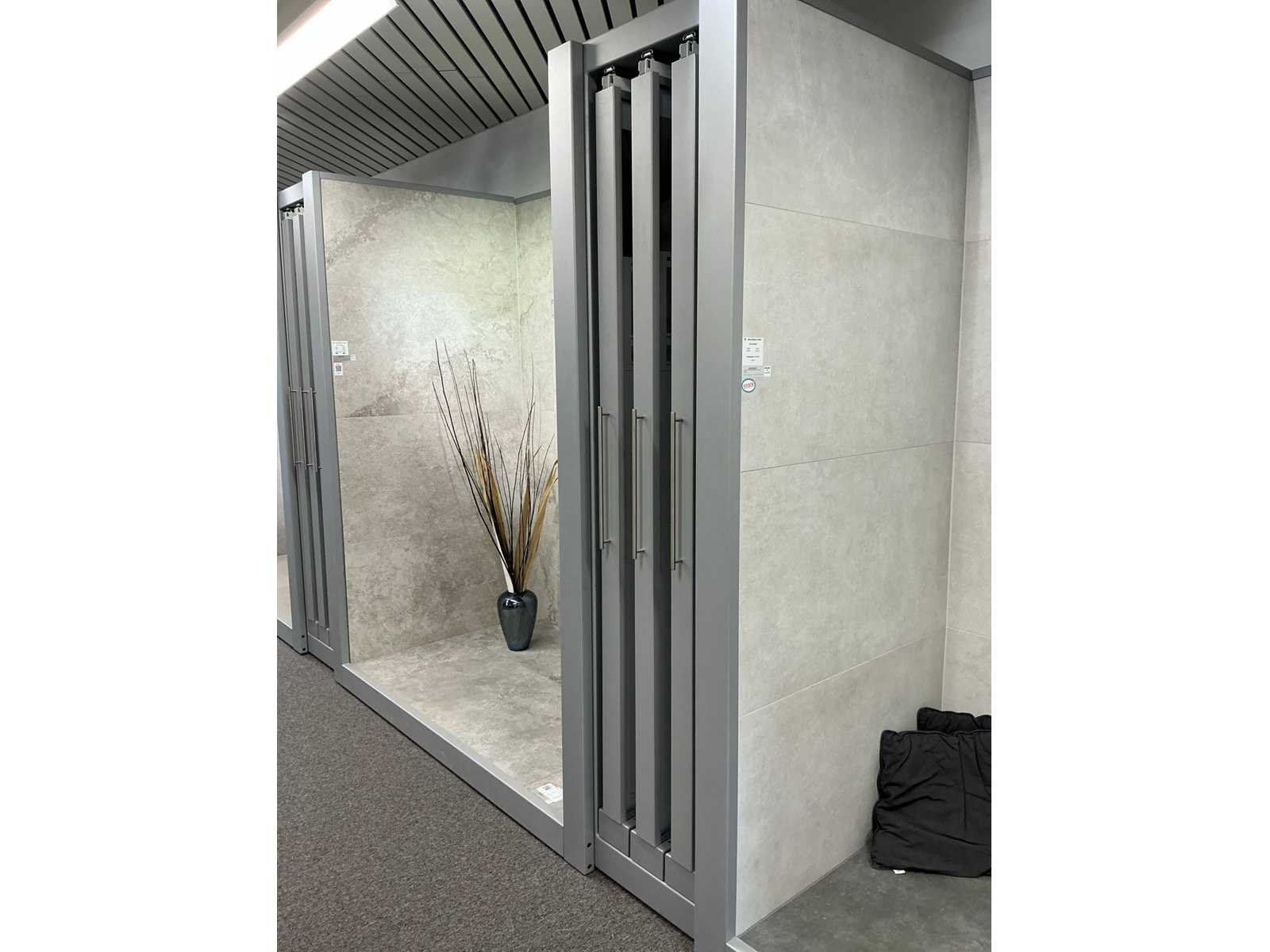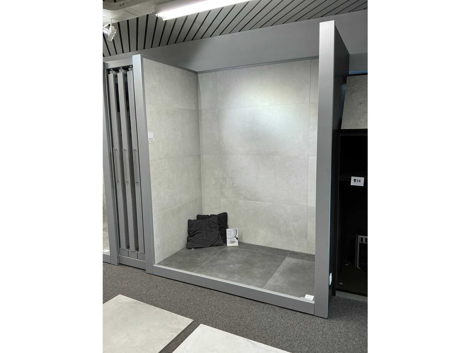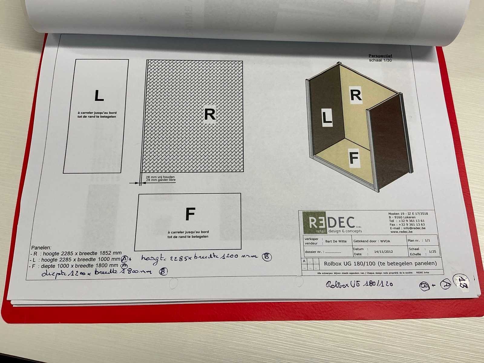 Bestaande uit REDEC Zeta 3 (4x), elk met afmetingen ca. 130 x 70 x 240cm + REDEC Rolbox UG 180/120 (5x), elk met afmetingen ca. 130 x 200 x 240cm. Door koper te demonteren van omgeving. Alle aangekleefde tegels en toebehoren MOETEN meegenomen worden door koper. Nee Merk: REDEC