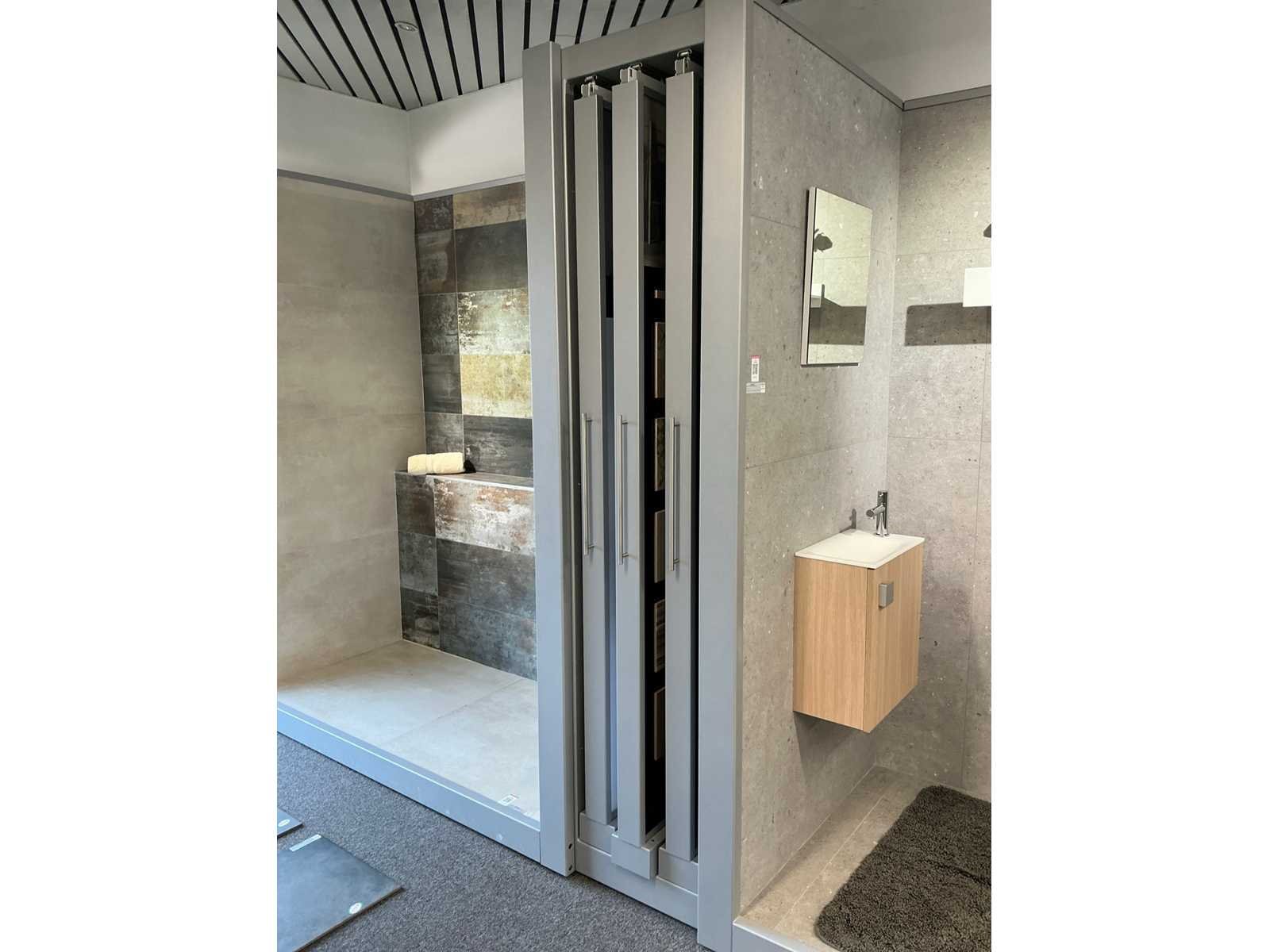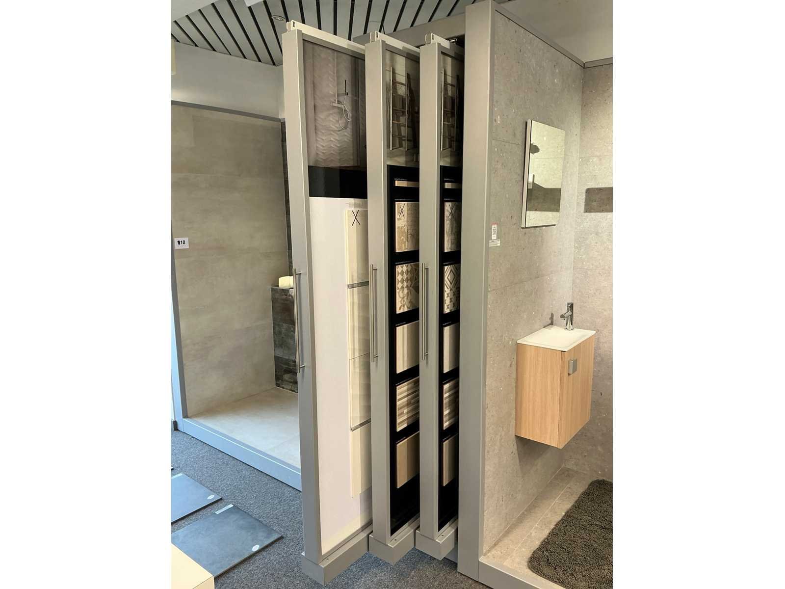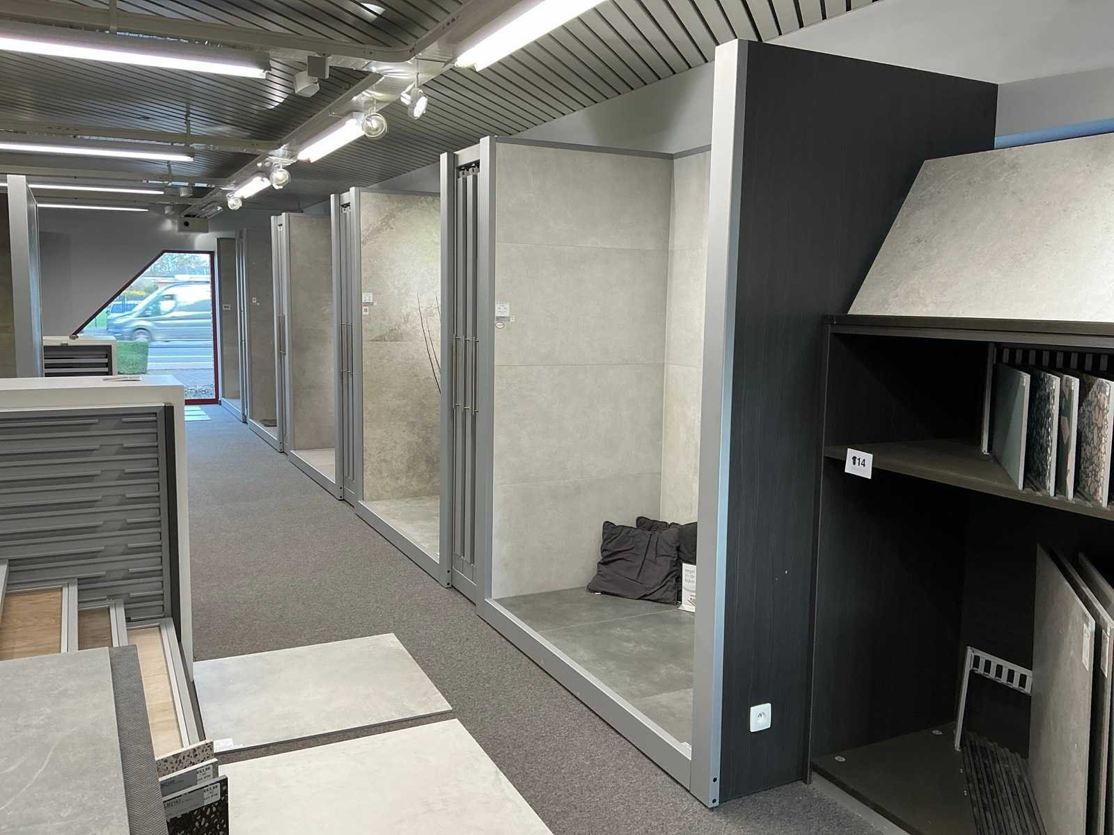 Bestaande uit REDEC Zeta 3 (4x), elk met afmetingen ca. 130 x 70 x 240cm + REDEC Rolbox UG 180/120 (5x), elk met afmetingen ca. 130 x 200 x 240cm. Door koper te demonteren van omgeving. Alle aangekleefde tegels en toebehoren MOETEN meegenomen worden door koper. Nee Merk: REDEC
