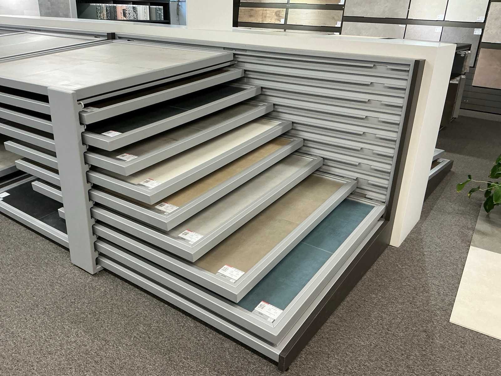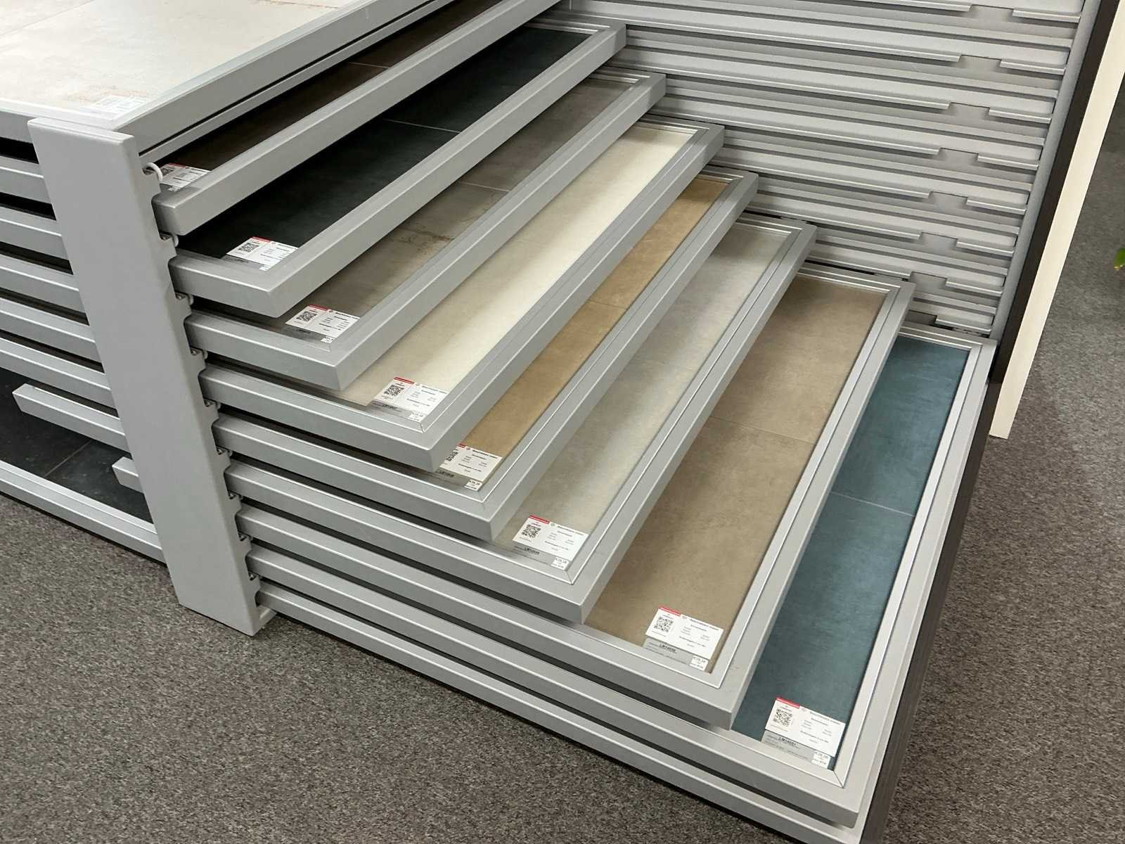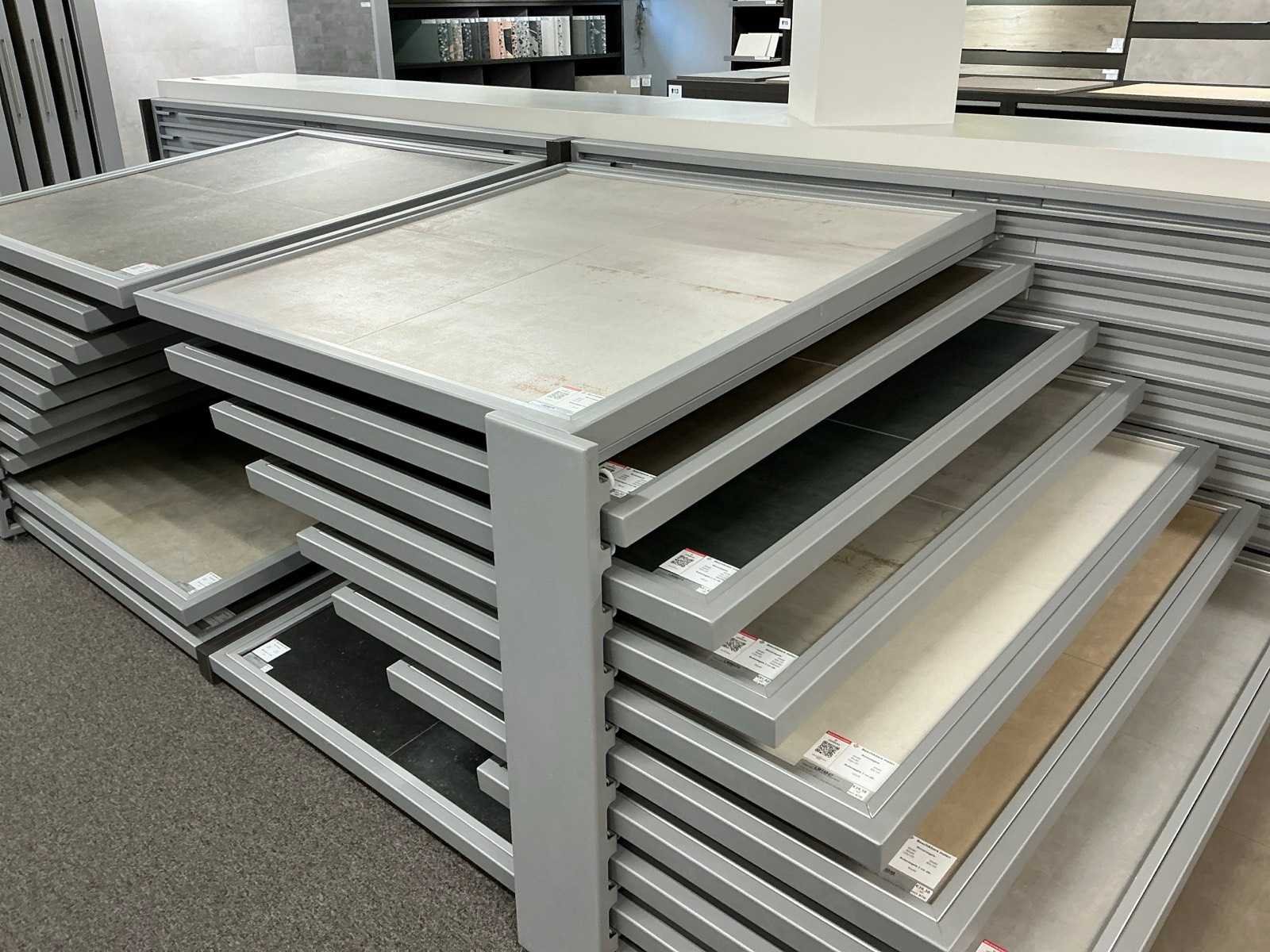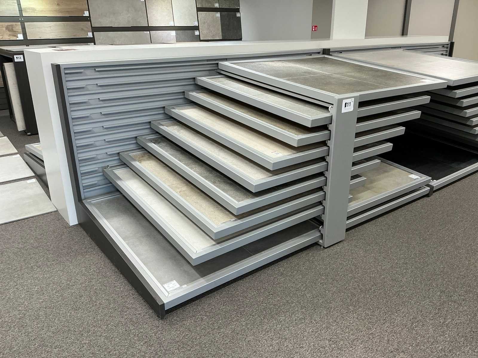 Elk voorzien van 9x schuif-/presentatieplateau. Door koper te demonteren/verplaatsen van omgeving. Alle opgeplakte tegels en toebehoren MOETEN meegenomen worden door koper. Nee Merk: REDEC