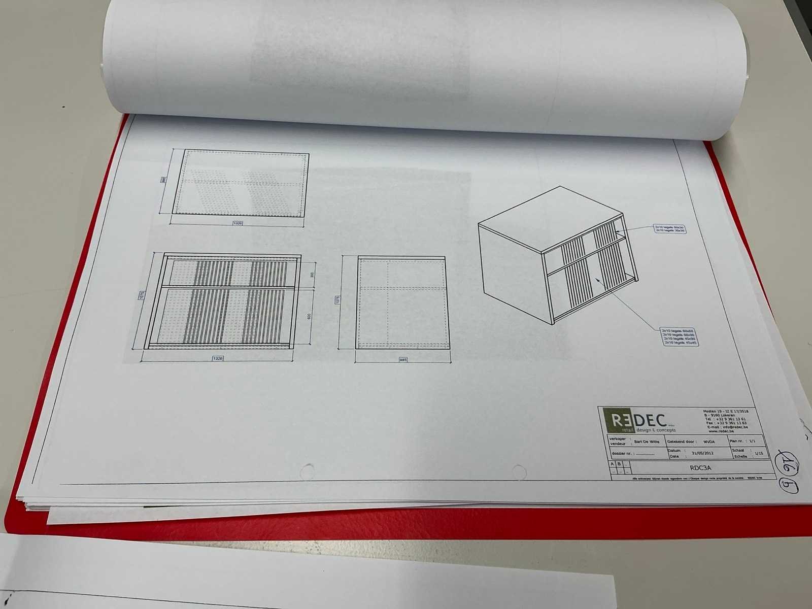 Bestaande uit 4x REDEC BU blok voorzien van 2x schuifladen, elk met afmetingen ca. 133 x 66 x 110cm, 1x REDEC RDC3A voorzien van 2x opbergvak, met afmetingen ca. 133 x 90 x 110cm en 1x REDEC RDC3B voorzien van 1x opbergvak, met afmetingen ca. 133 x 90 x 110cm. Te demonteren/verplaatsen van omgeving door koper. Alle aangeplakte tegels en toebehoren MOETEN meegenomen worden door de koper. Nee Merk: REDEC