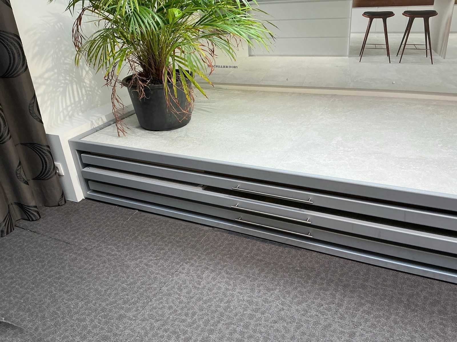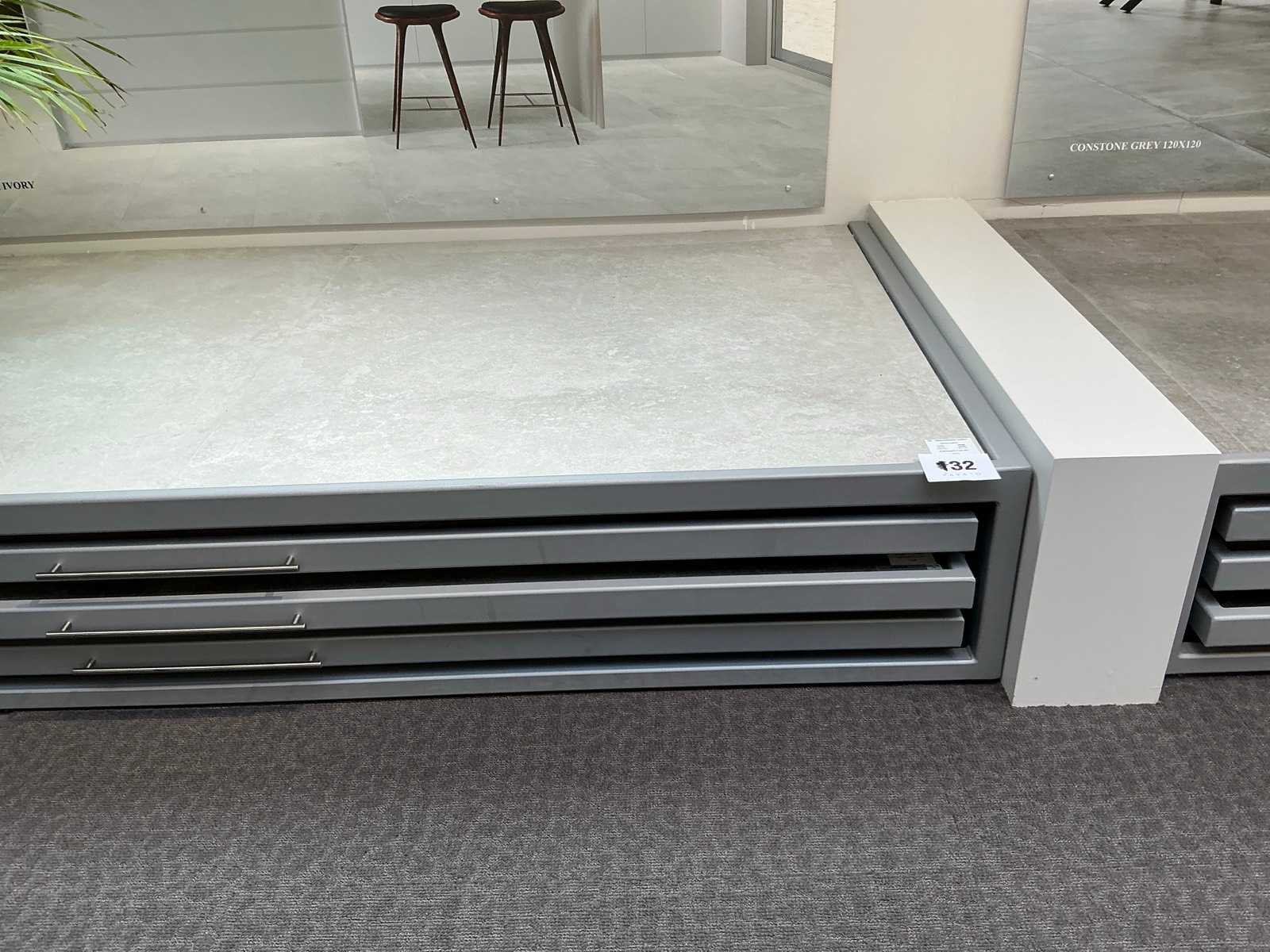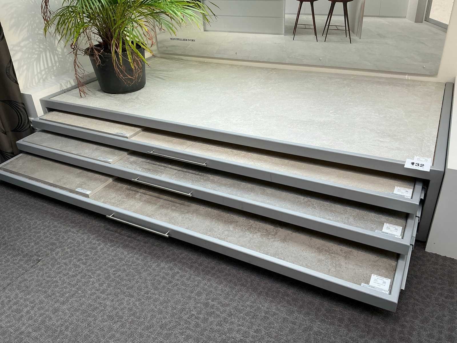 Voorzien van 3x schuif-/presentatieplateau. Te demonteren/verplaatsen van meubel door koper. Alle aangeplakte tegels en toebehoren MOETEN worden meegenomen door koper. Zich bevindend op het 1e verdiep. Nee Merk: REDEC