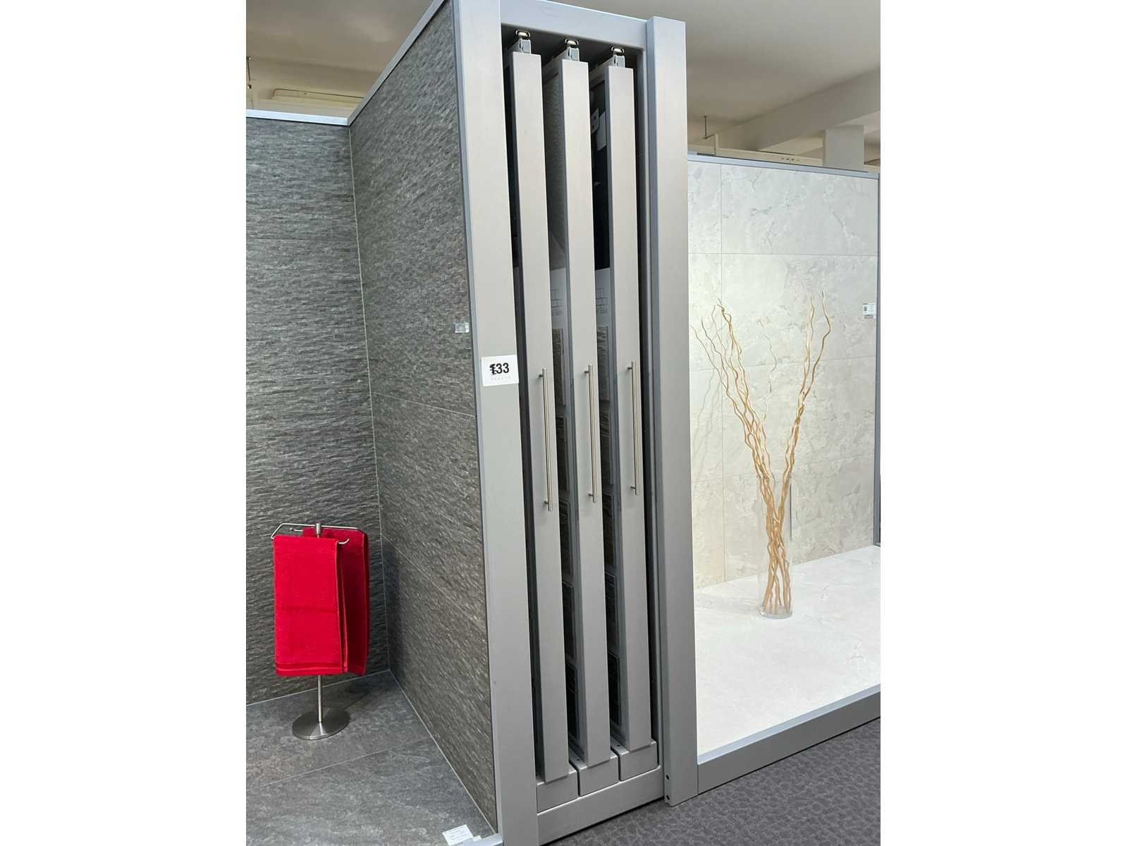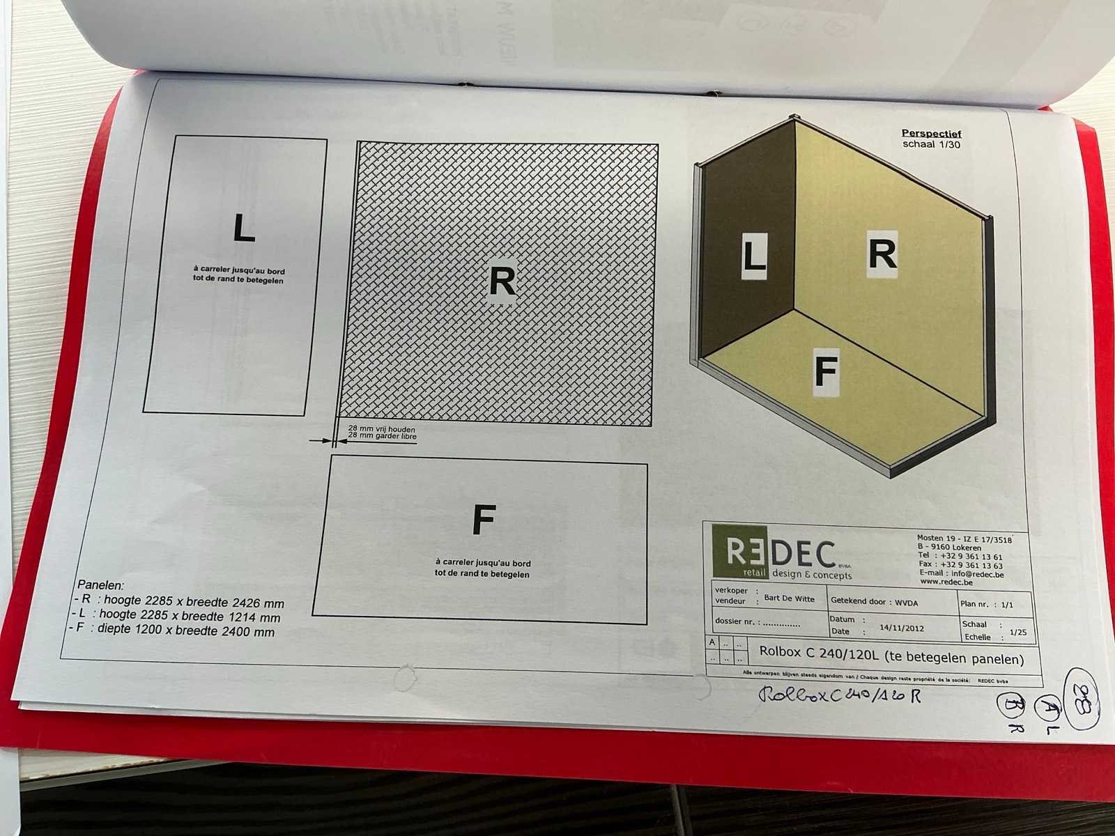 Bestaande uit REDEC Zeta 3 (1x), met afmetingen ca. 130 x 70 x 240cm + REDEC Rolbox C 240/120 (2x), elk met afmetingen ca. 243 x 120 x 240cm. Door koper te demonteren van omgeving. Alle aangekleefde tegels en toebehoren MOETEN meegenomen worden door koper. Zich bevindend op het 1e verdiep. Nee Merk: REDEC