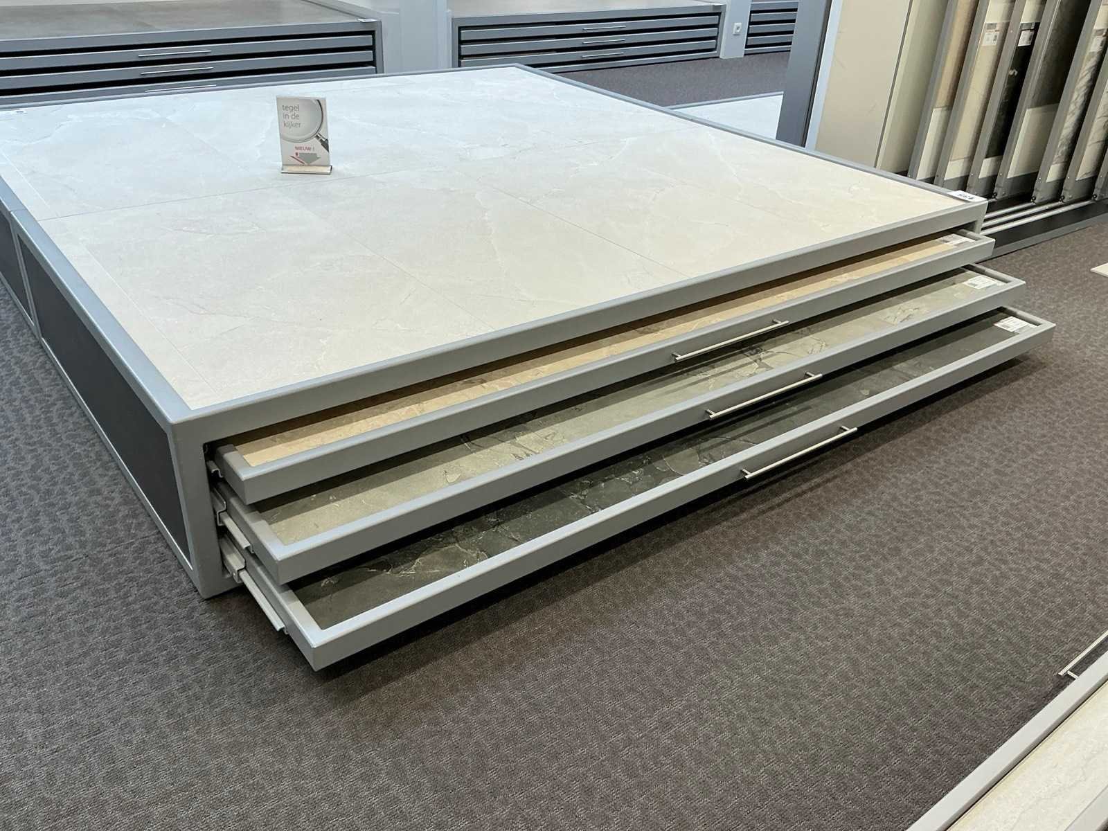 Elk voorzien van 3x schuifplateau. Door koper te demonteren of verplaatsen van omgeving. Alle aangekleefde tegels MOETEN meegenomen worden door koper. Zich bevindend op het 1e verdiep. Nee Merk: REDEC