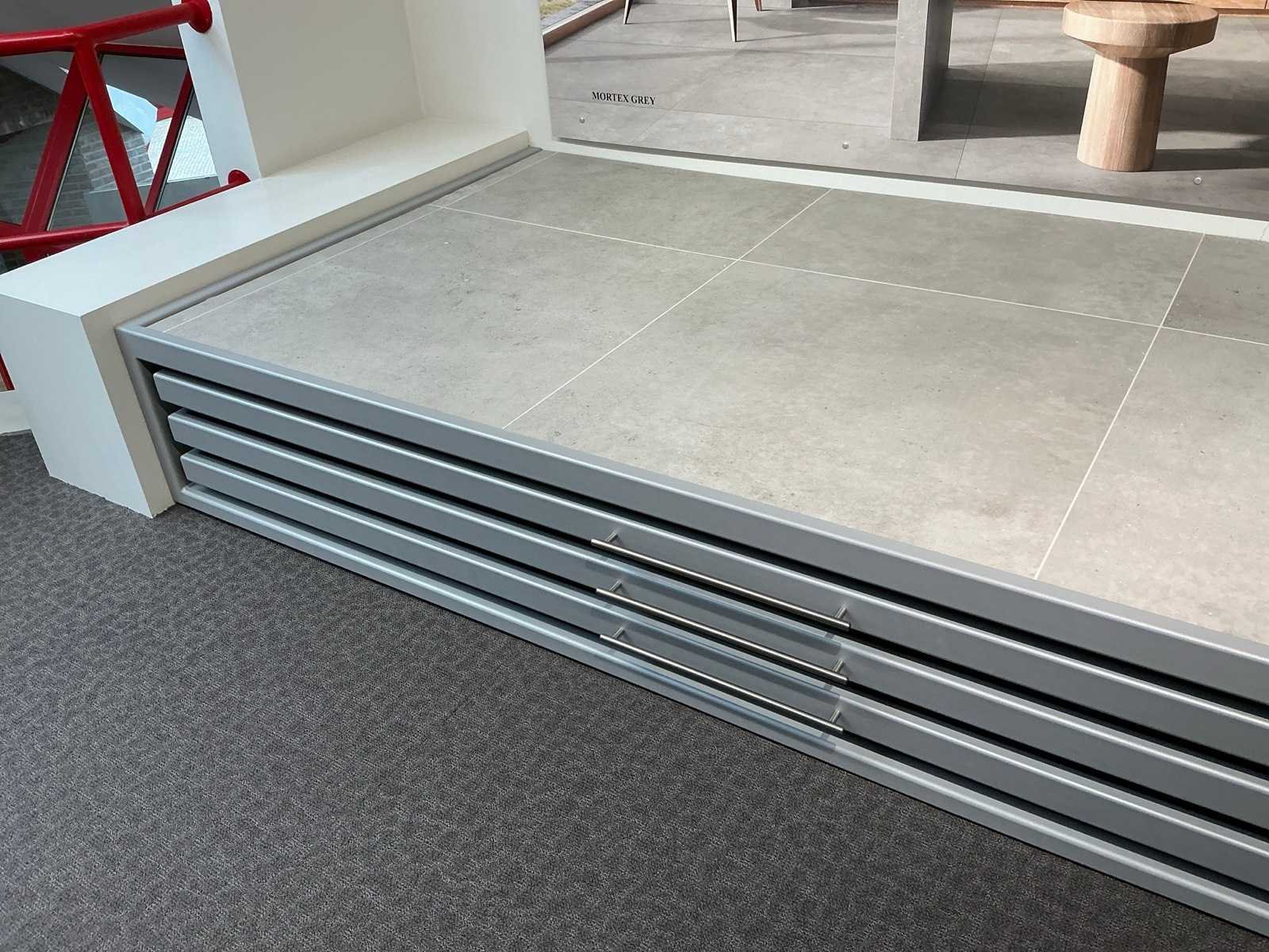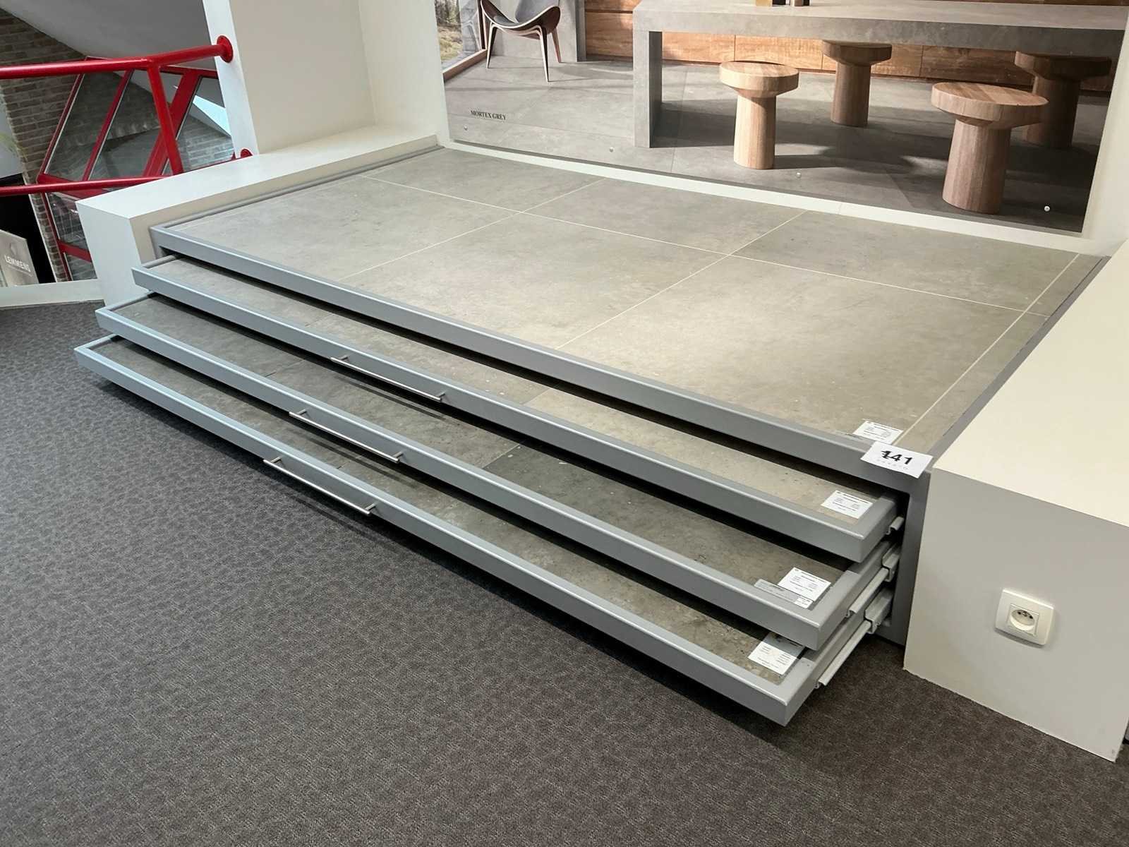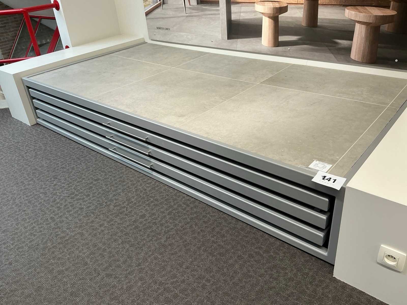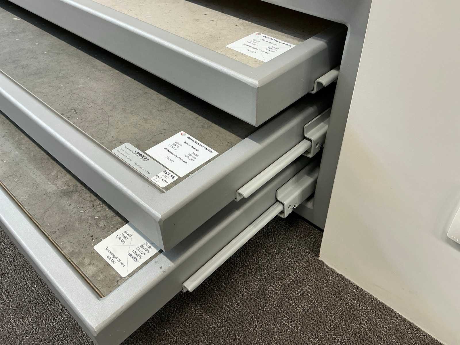 Voorzien van 3x schuif-/presentatieplateau. Te demonteren/verplaatsen van meubel door koper. Alle aangeplakte tegels en toebehoren MOETEN worden meegenomen door koper. Zich bevindend op het 1e verdiep. Nee Merk: REDEC