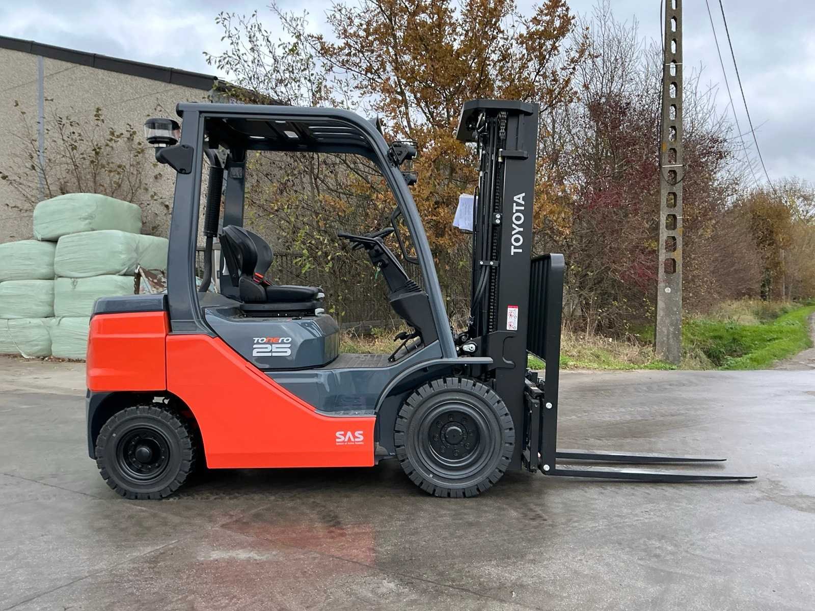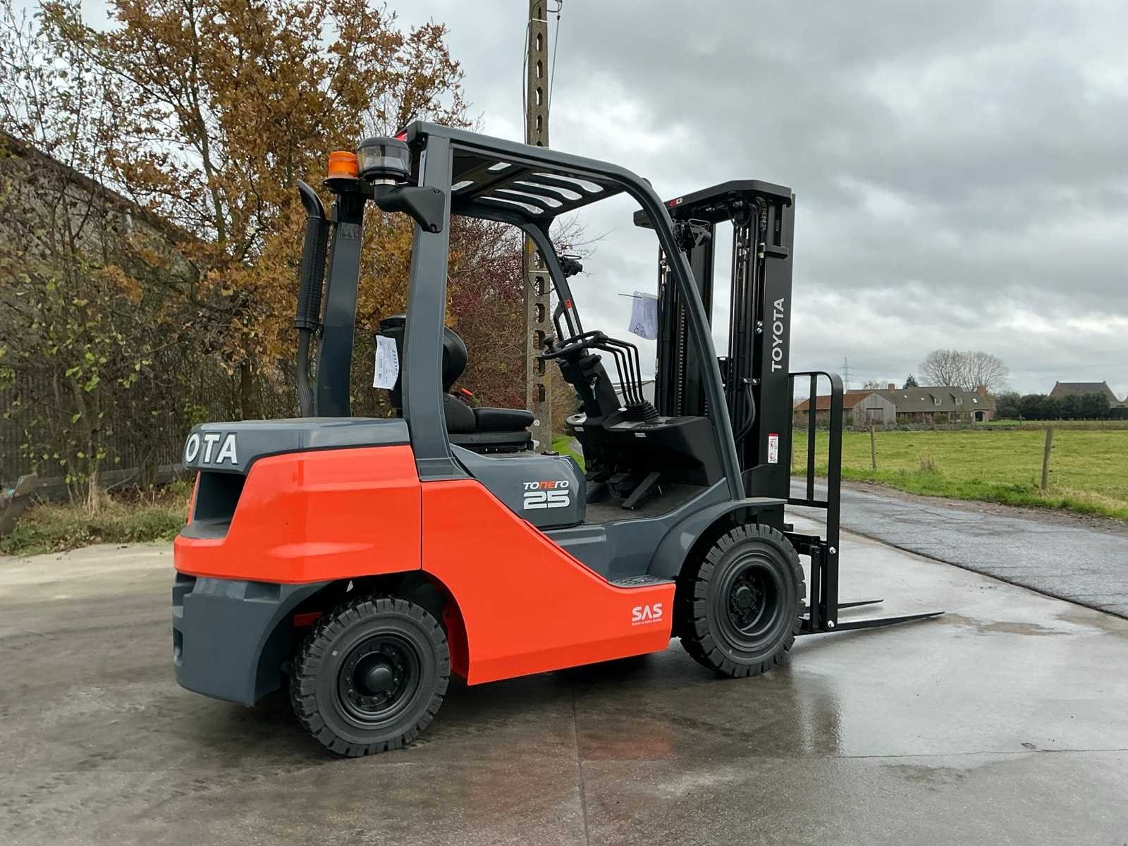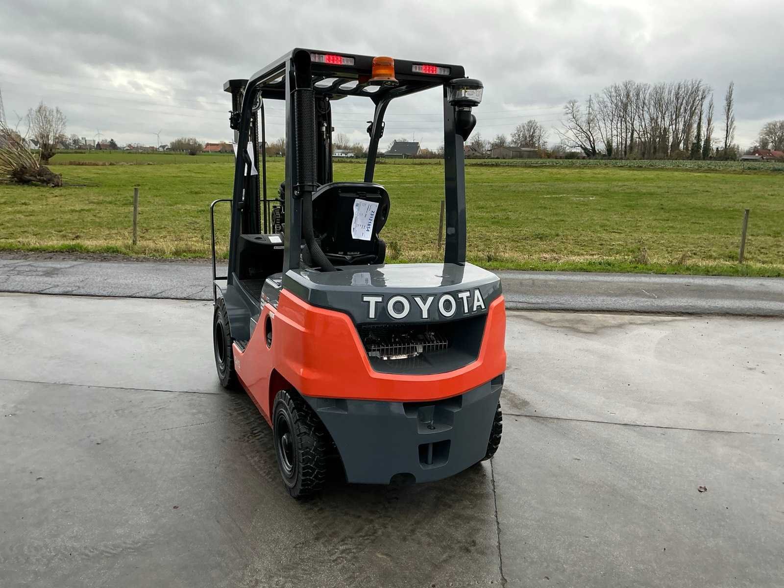 Nieuwe machine niet gebruikt , met 4 de valve No Merk: Toyota Type: 52-8FDF25 Bouwjaar: 2024 Serienummer: 508FDF 25 Brandstof: Diesel Mast: Triple Soort band: Volrubber banden Aantal wielen: 4 Afgelezen urenstand: 3 Eigen gewicht: 4060kg Hefvermogen: 2500kg Lepellengte: 1200mm Min. hefhoogte: 0mm Max. hefhoogte: 4700mm Hefhoogte: 4700mm Vol rubber banden: true Totale afmeting L: 2900mm Totale afmeting Breedte: 1150mm Totale afmeting Hoogte: 2100mm Diesel: true