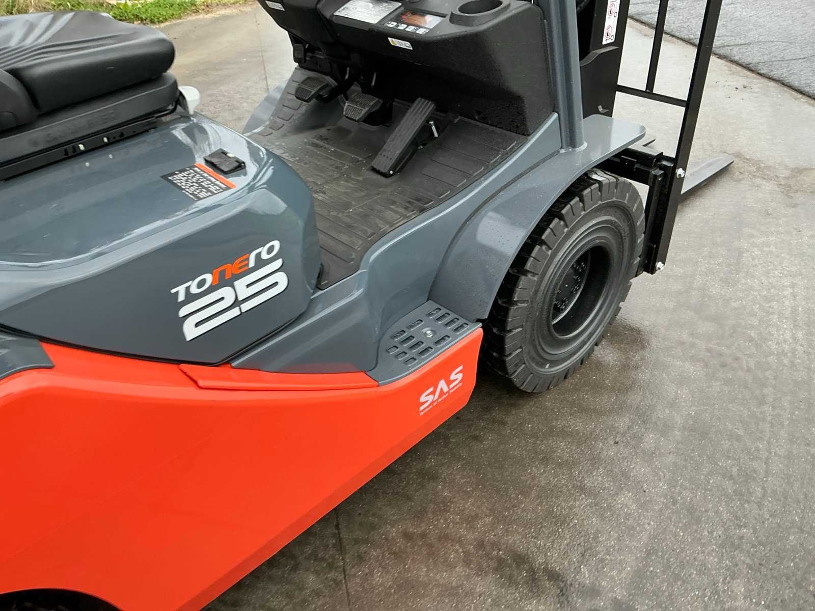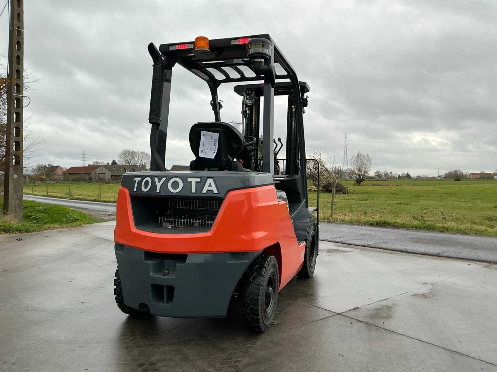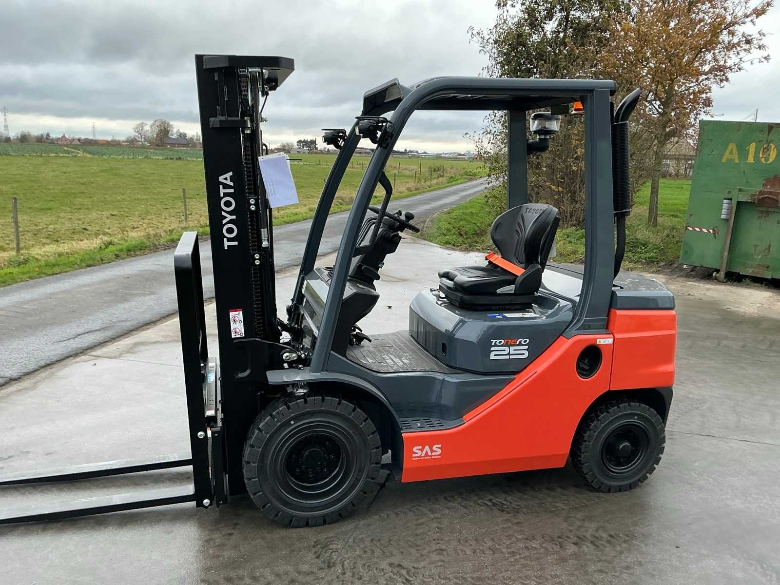 Nieuwe machine niet gebruikt , met 4 de valve No Merk: Toyota Type: 52-8FDF25 Bouwjaar: 2024 Serienummer: 508FDF 25 Brandstof: Diesel Mast: Triple Soort band: Volrubber banden Aantal wielen: 4 Afgelezen urenstand: 3 Eigen gewicht: 4060kg Hefvermogen: 2500kg Lepellengte: 1200mm Min. hefhoogte: 0mm Max. hefhoogte: 4700mm Hefhoogte: 4700mm Vol rubber banden: true Totale afmeting L: 2900mm Totale afmeting Breedte: 1150mm Totale afmeting Hoogte: 2100mm Diesel: true