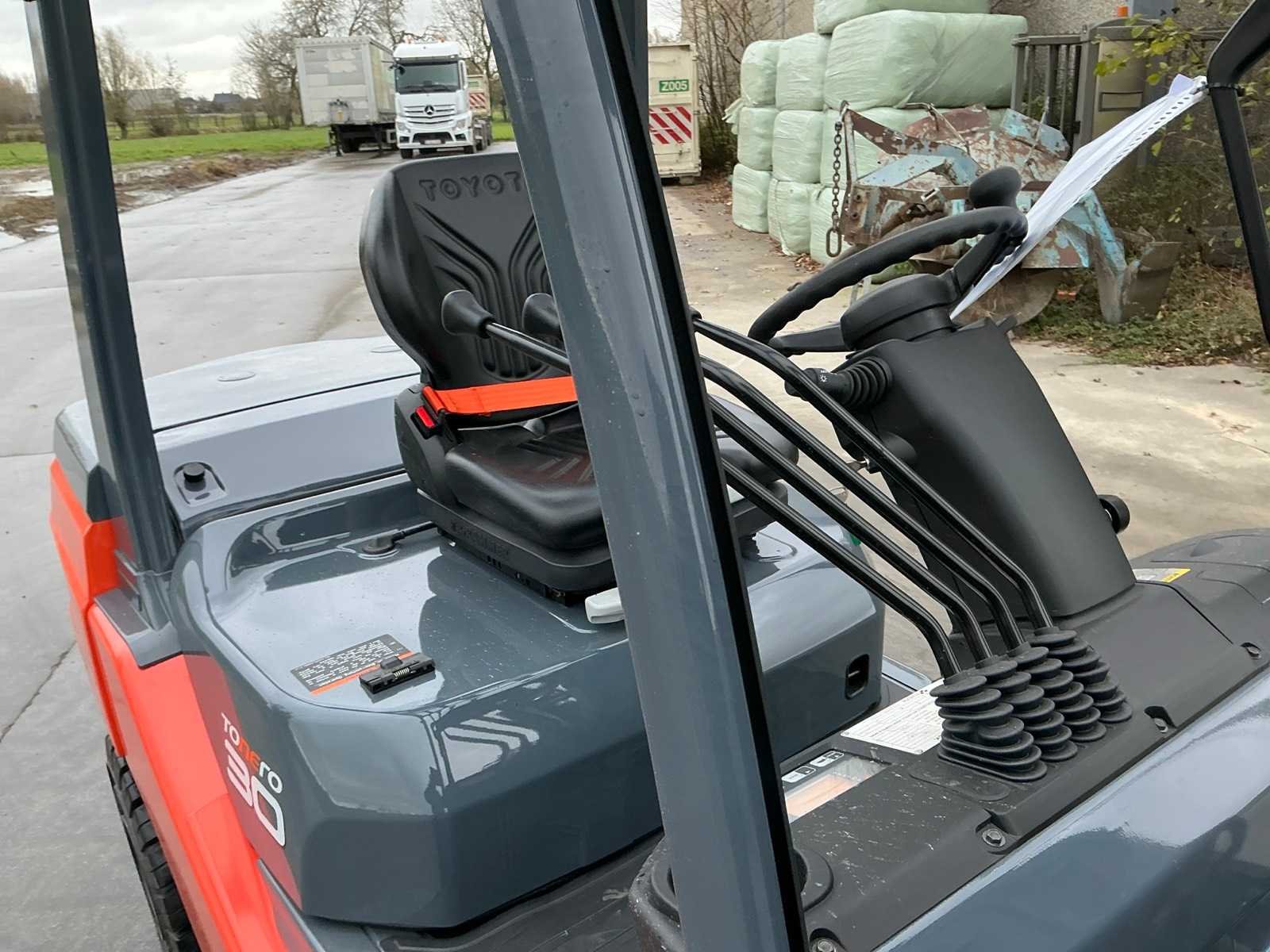 Nieuwe machine niet gebruikt met 4de valve No Merk: Toyota Type: 52-8FDF30 Bouwjaar: 2024 Serienummer: 508FDJF35 Brandstof: Diesel Mast: Triple Soort band: Volrubber banden Aantal wielen: 4 Afgelezen urenstand: 3 Side-shift: true Triple mast: true Eigen gewicht: 4670kg Hefvermogen: 3000kg Lepellengte: 1200mm Min. hefhoogte: 0mm Max. hefhoogte: 4300mm Vol rubber banden: true Totale afmeting L: 3000mm Totale afmeting Breedte: 1250mm Totale afmeting Hoogte: 2150mm Diesel: true