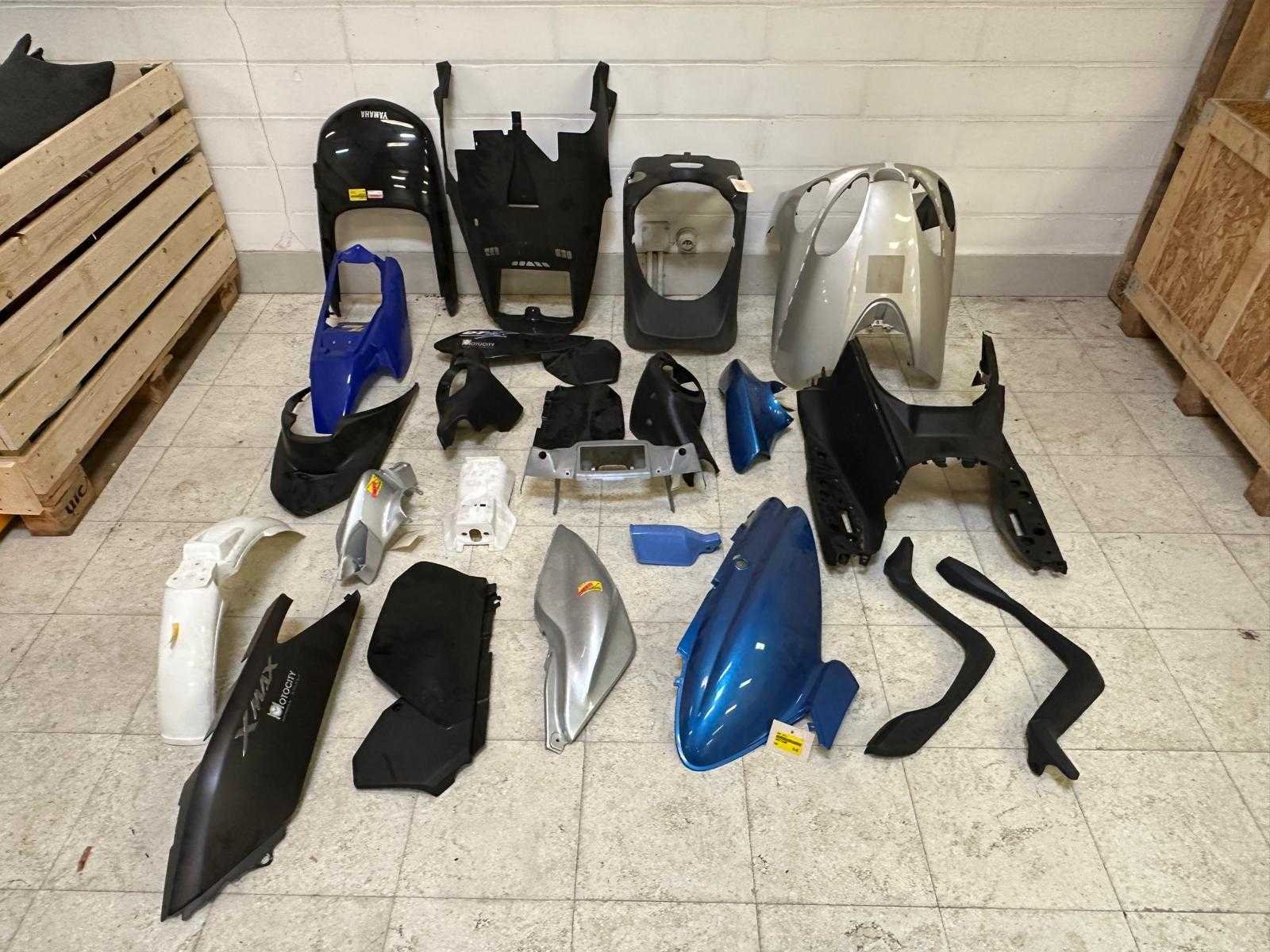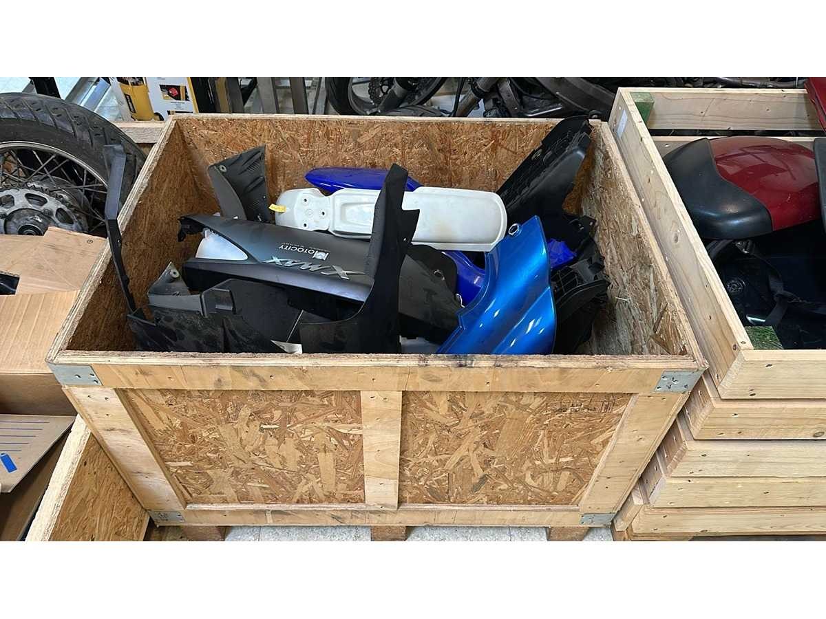Partij met diverse originele Yamaha-kuipdelen en kappen. Bevat o.a.: - Zijpanelen - Frontkuipen - Binnenkuipdelen - Spatborden - Afdekkappen - X-MAX zijpaneel MotoCity - Diverse blauwe, zwarte, zilveren en witte onderdelen - Stukken in gebruikte staat, sommige met lichte gebruikssporen, krasjes of stof - Ideaal voor herstelling, project, stock of handel Onderdelen niet getest op passing of compleetheid. Enkel wat zichtbaar is op de foto’s wordt geleverd. Opgelet: onderdelen zitten in een palletbak, dit wordt klaargezet maar dient op eigen kracht verplaatst te worden. Wij beschikken niet over de mogelijkheden deze in te laden. Nee Merk: Diverse merken Model: Diverse modellen Product type: Kuipdelen / bodypanelen / kappen Kleur: Zwart, blauw, zilver, wit (mix)