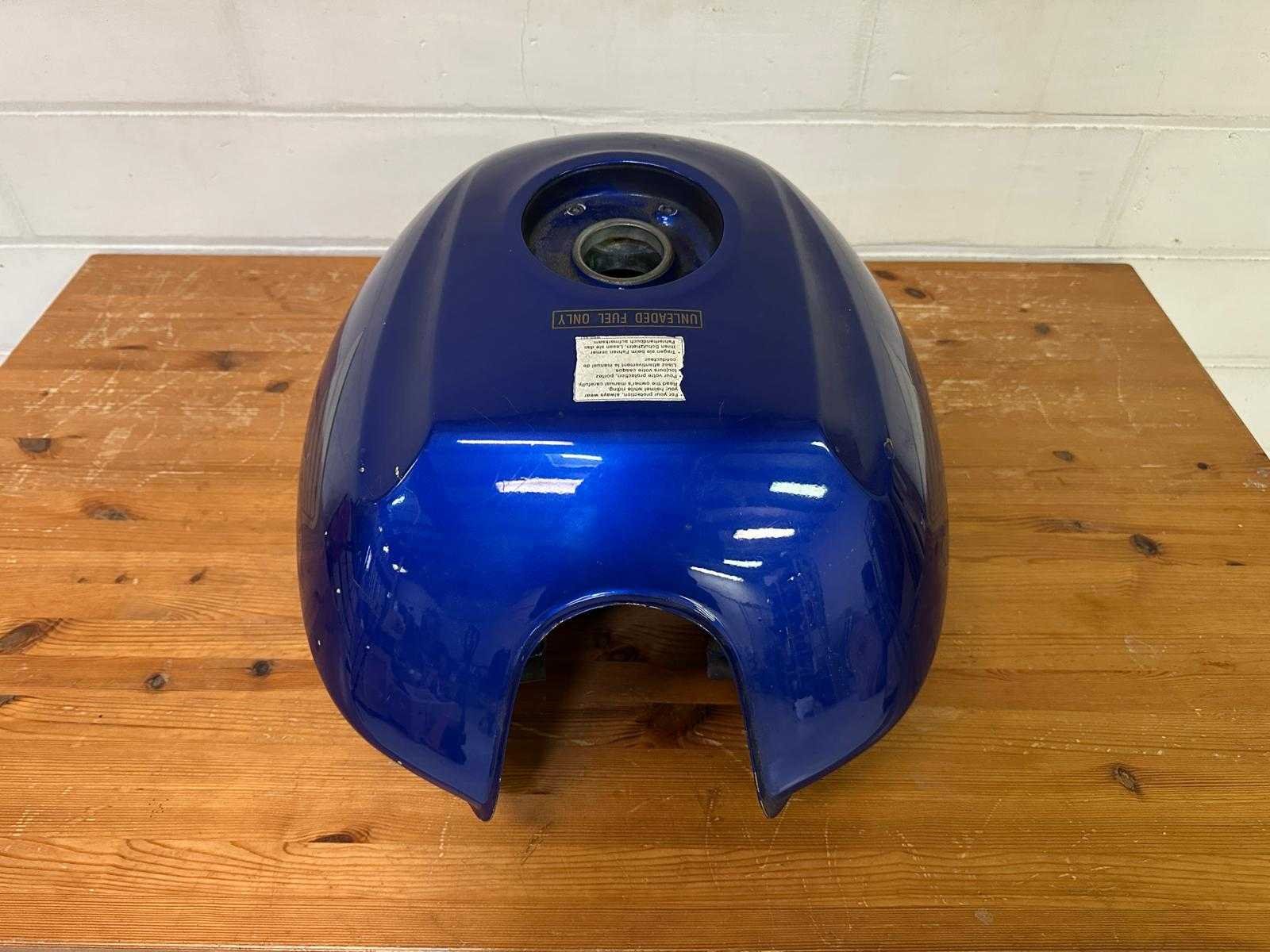 Originele Honda brandstoftank voor CBF 500. Kleur metallic blauw met Honda-logo. Tank is gebruikt en heeft duidelijke beschadigingen: krassen, lakschade en deuken aan achterzijde, onderzijde vuil/roestsporen. Tankdop ontbreekt. Onderzijde voorzien van aansluitingen en originele leidingen. Ideaal als vervangstuk of projectonderdeel. Nee Merk: Honda Model: CBF 500 Product type: Brandstoftank / Benzinetank Kleur: Blauw (metallic)