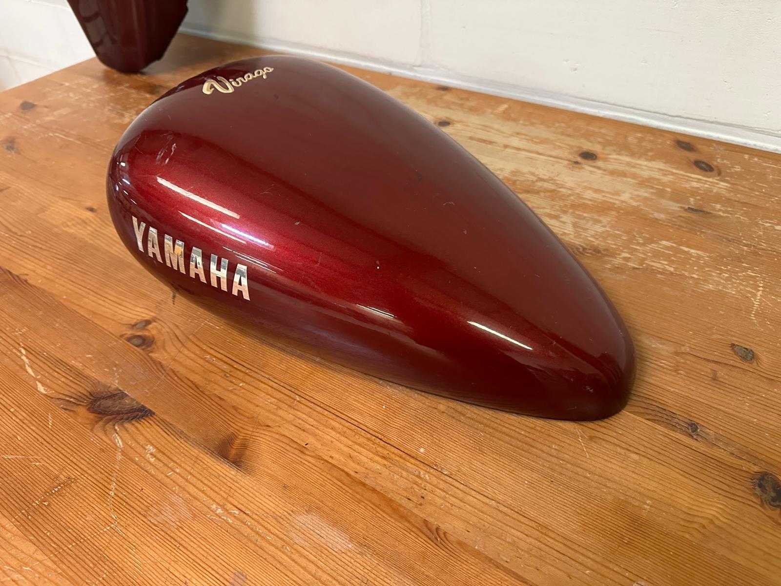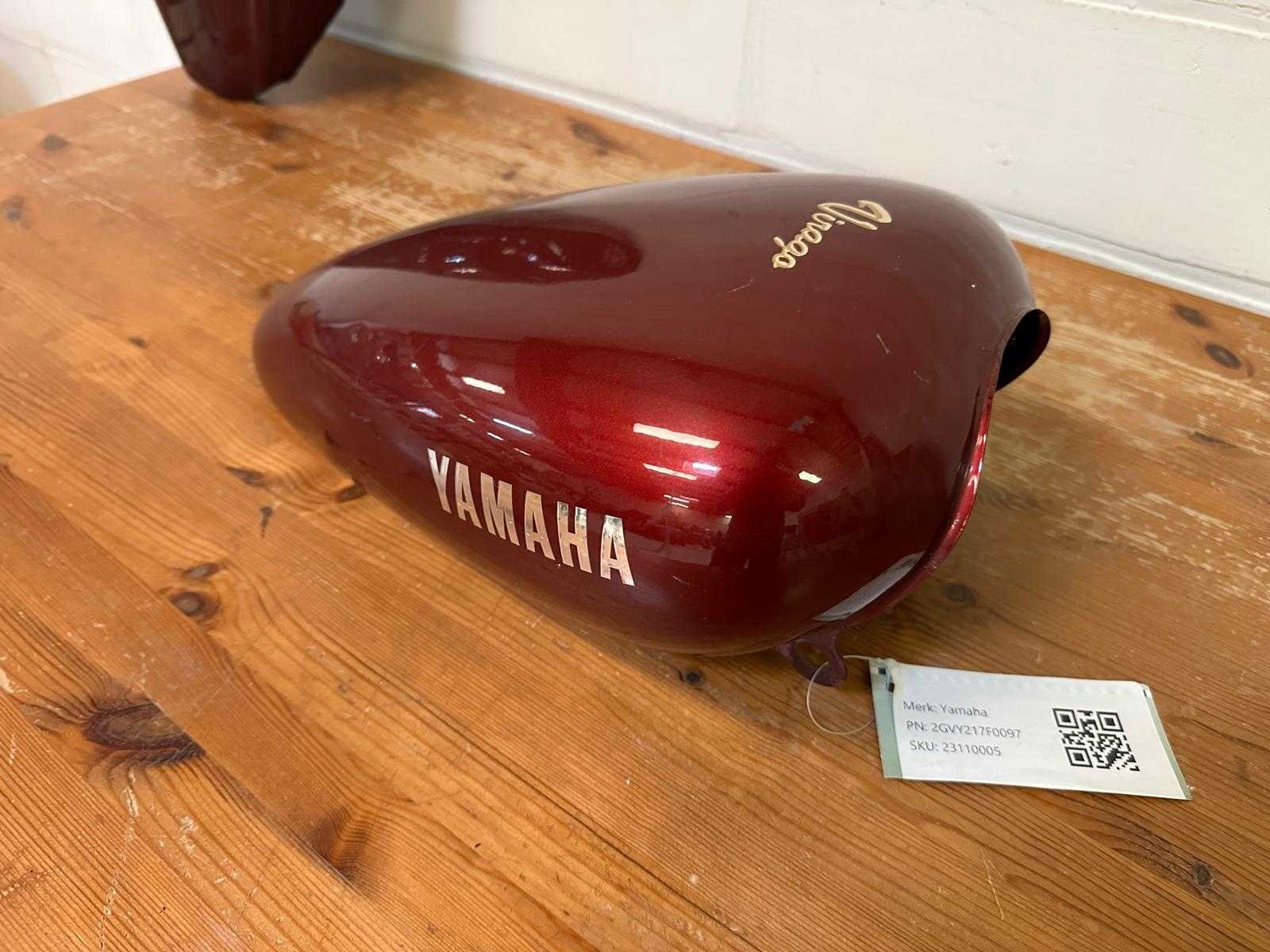 Rode metallic benzinetank cover afkomstig van een Yamaha Virago. De cover vertoont gebruikssporen en een duidelijke beschadiging/doorboring aan de rechterzijde (zie foto). Geen zichtbare scheuren in de structuur. Binnenzijde in gebruikte staat. Onderdeelnummer volgens label: 2GVY21F0097. Geschikt voor restauratie, projectmotor of onderdelen. Nee Merk: Yamaha Model: Virago Product type: Benzinetank cover Kleur: Rood metallic
