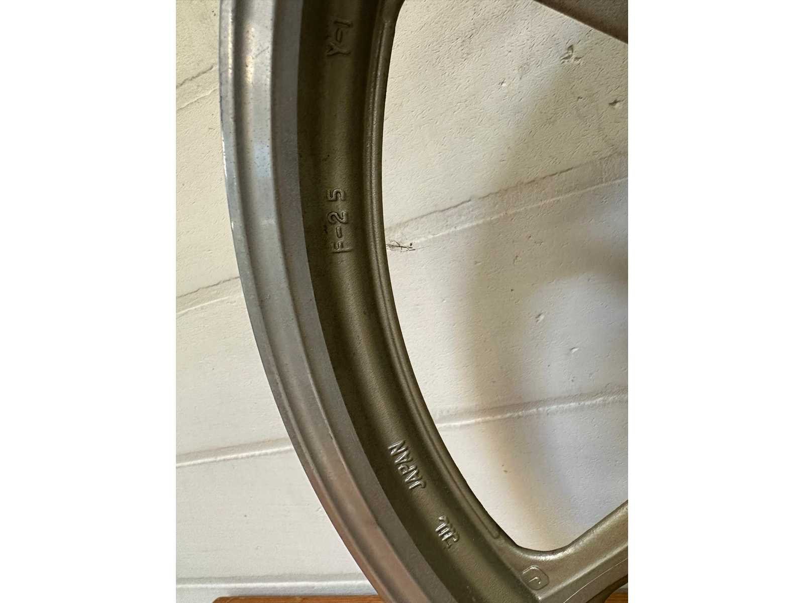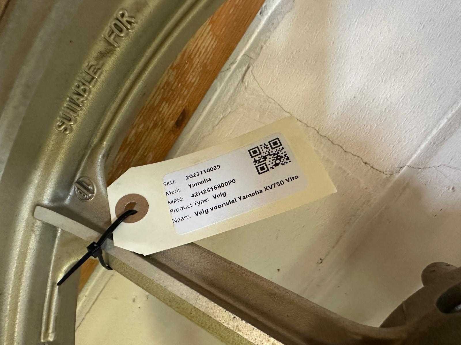 Originele Yamaha voorvelg voor model XV750. MPN: 4X7-251680-00 (zichtbaar op label). Velg heeft lichte gebruikssporen maar geen structurele schade zichtbaar. Japanse productie. Type-aanduidingen in de velg o.a. ‘F-2.5’, ‘Japan’, ‘5Y1’. Nee Merk: Yamaha Model: XV750 Product type: Velg voorwiel