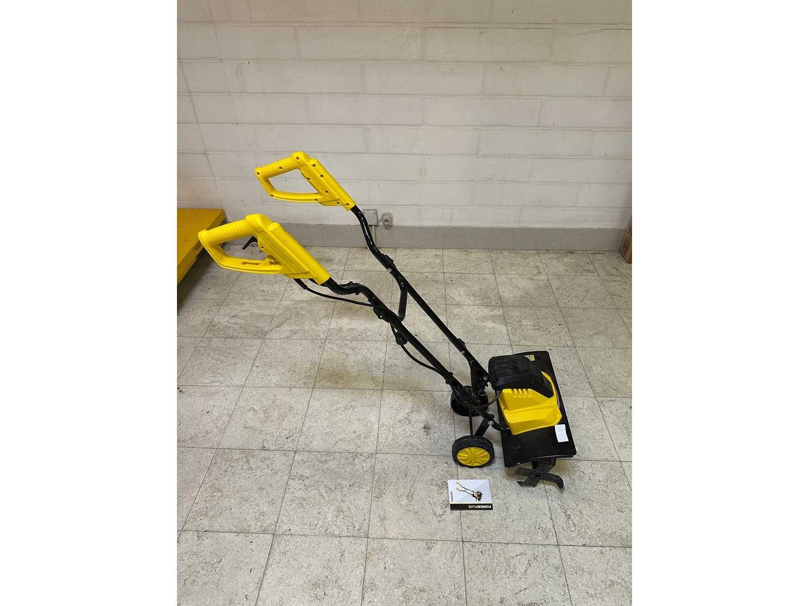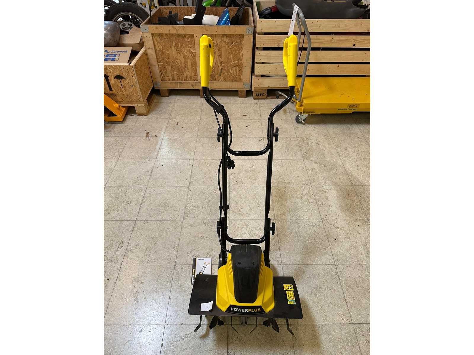 Elektrische grondfrees / cultivator van PowerPlus. Ideaal voor het omwoelen en beluchten van tuingrond. In gebruikte staat met zichtbare gebruikssporen. Werkend opgesteld op de foto. Machine heeft zichtbare slijtage aan de beschermkap en lichte krasjes op het frame. Compleet met handvatten en wielen zoals afgebeeld. Nee Merk: PowerPlus Kleur: Zwart / Geel Materiaal: Metaal + kunststof