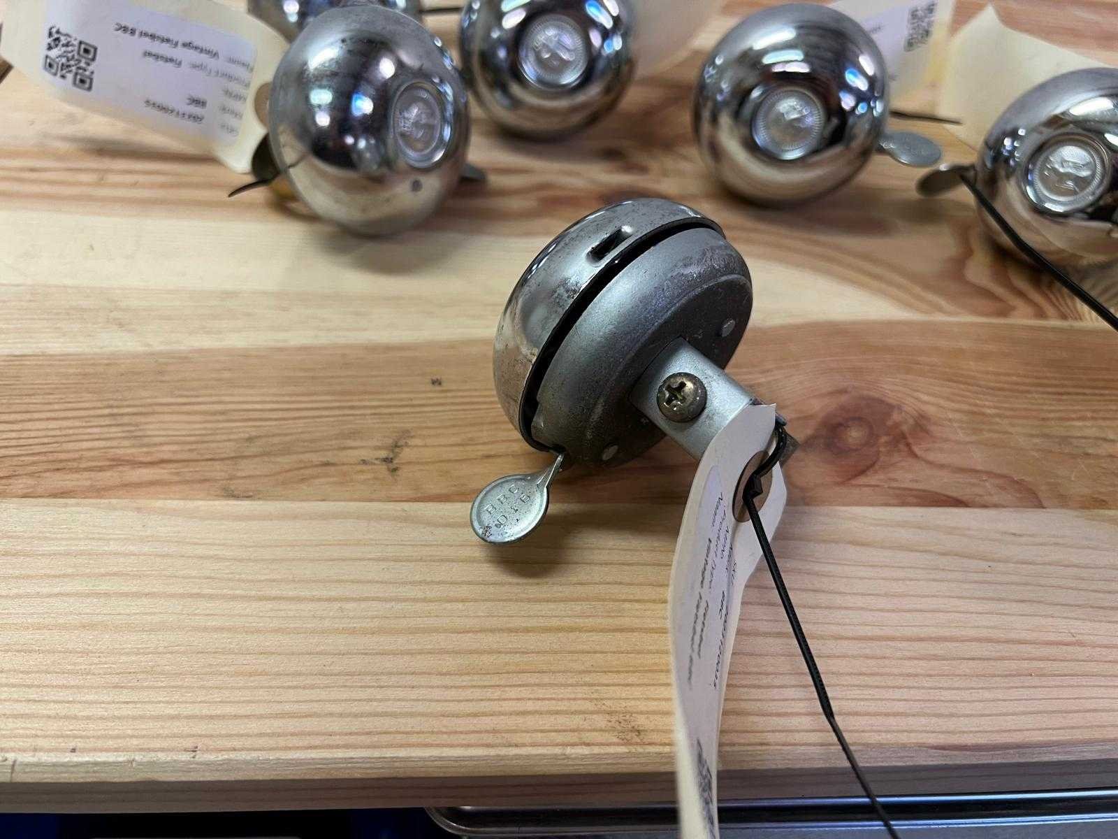 Set van 8 retro metalen fietsbellen in chroom/zilverkleurige uitvoering. Alle bellen zijn voorzien van een klassiek slaatje aan de zijkant. Staat: gebruikt maar netjes; lichte gebruikssporen zichtbaar. Nee Merk: Onbekend Product type: Fietsbel Kleur: Chroom / Zilver