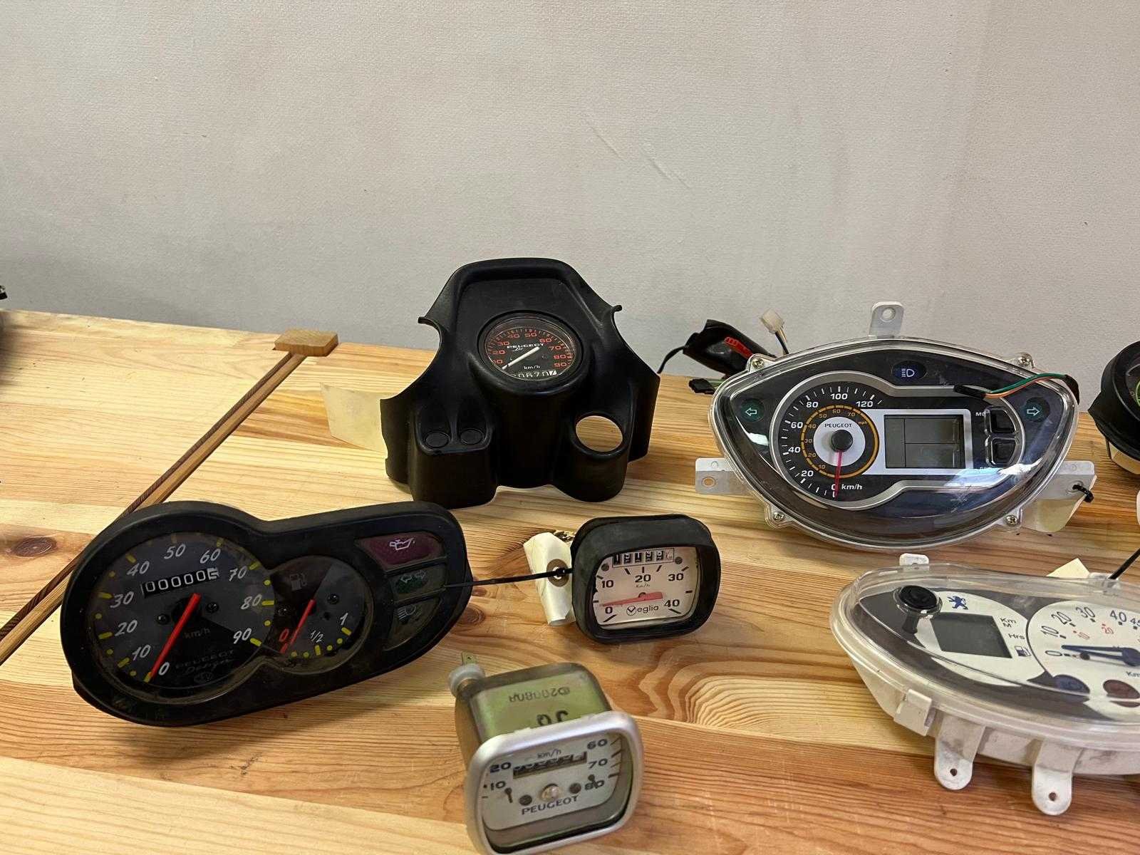 Partij met diverse gebruikte tellerunits / kilometertellers afkomstig van scooters en bromfietsen. Zowel analoge als digitale modellen. Meerdere typen van Peugeot. Staat varieert van goed tot gebruikt; sommige units hebben kabels of stekkers, andere niet. Niet getest. Verkoop als partij, zoals gezien op de foto’s. Nee Merk: Peugeot Model: Diverse modellen Product type: Tellerunit / kilometerteller / snelheidsmeter Kleur: Zwart / wit / transparant (mix)
