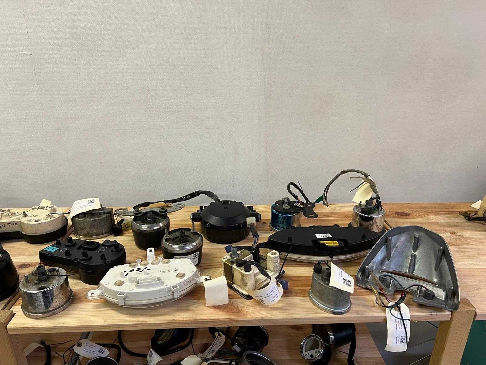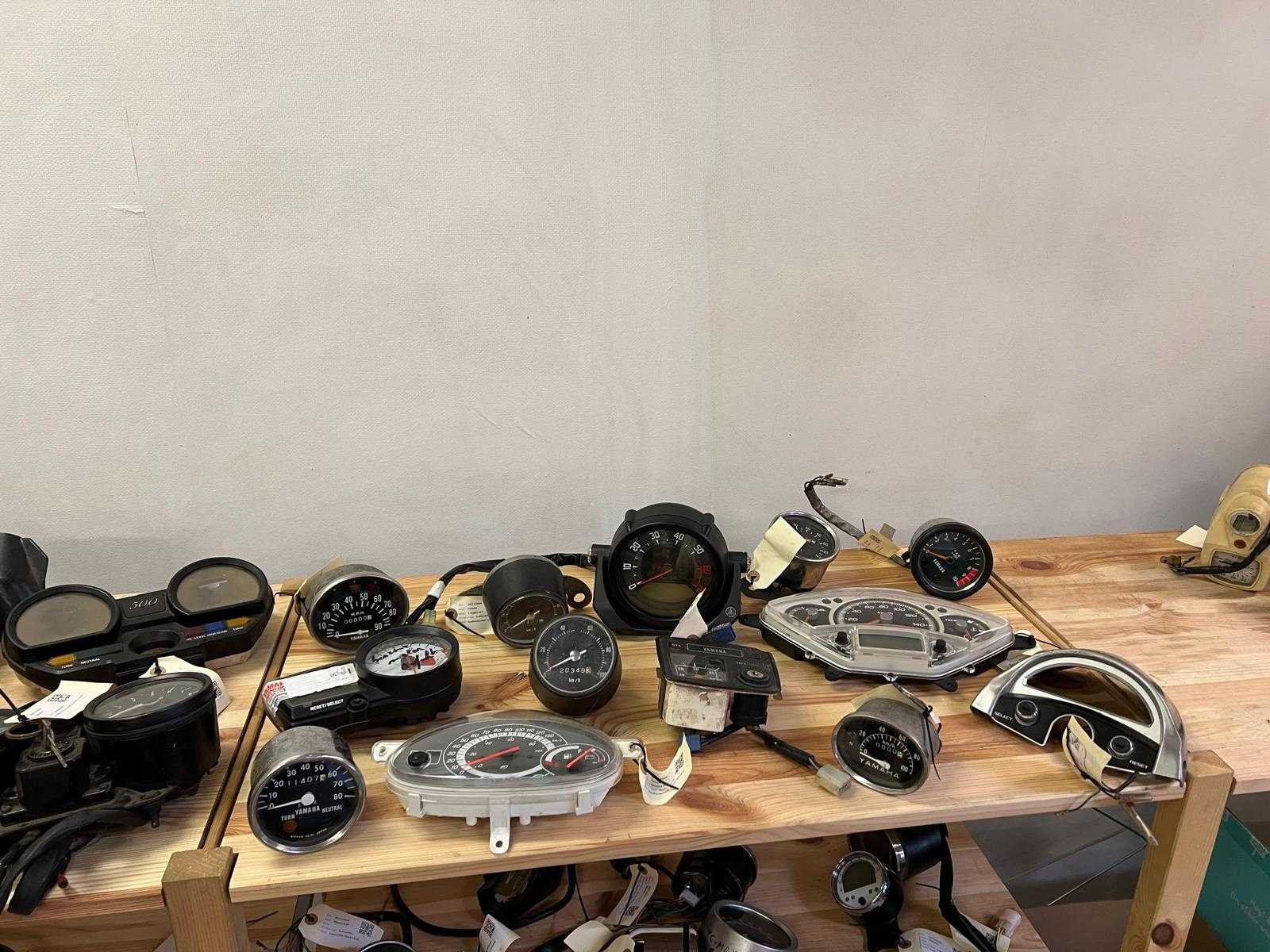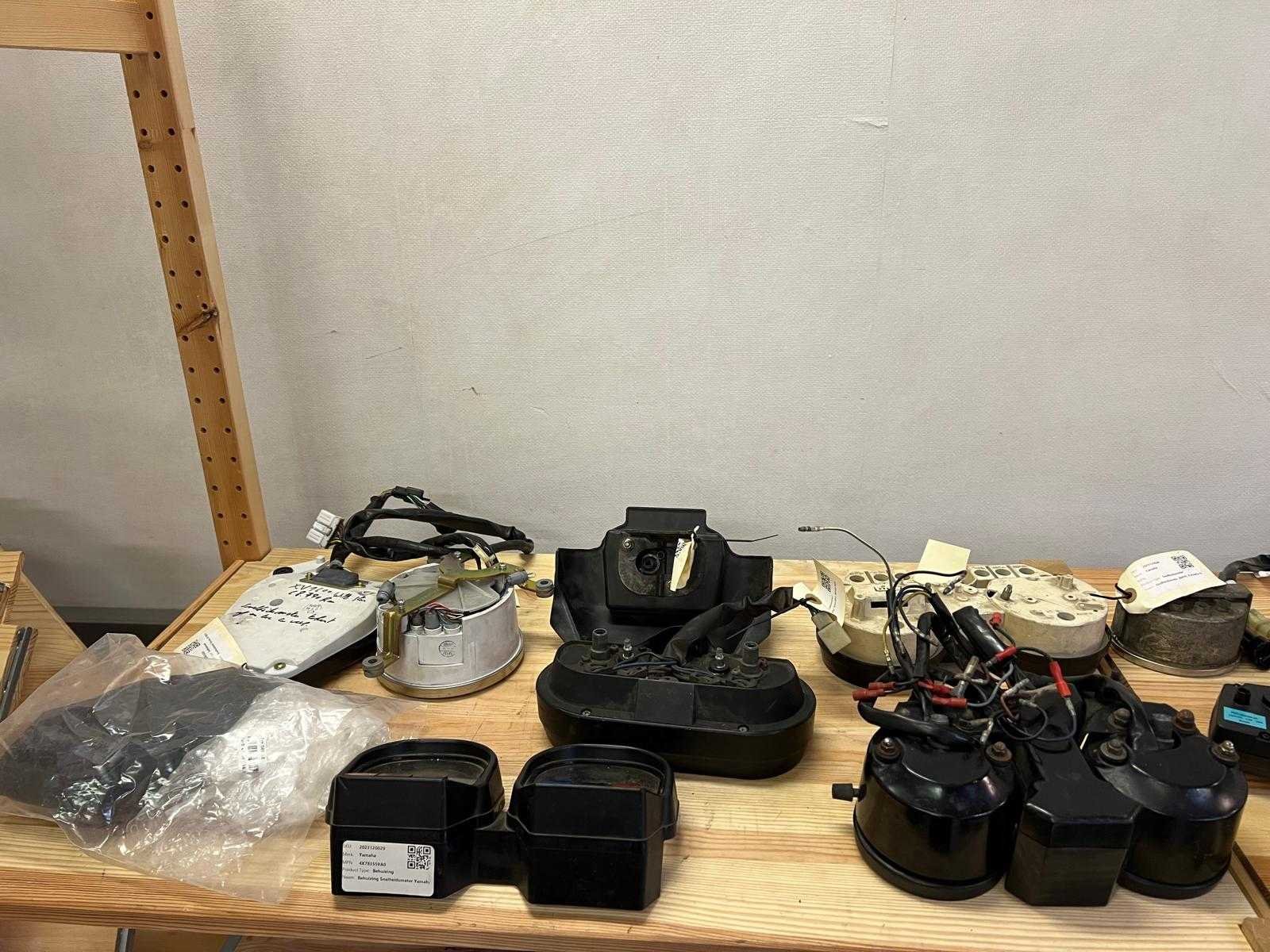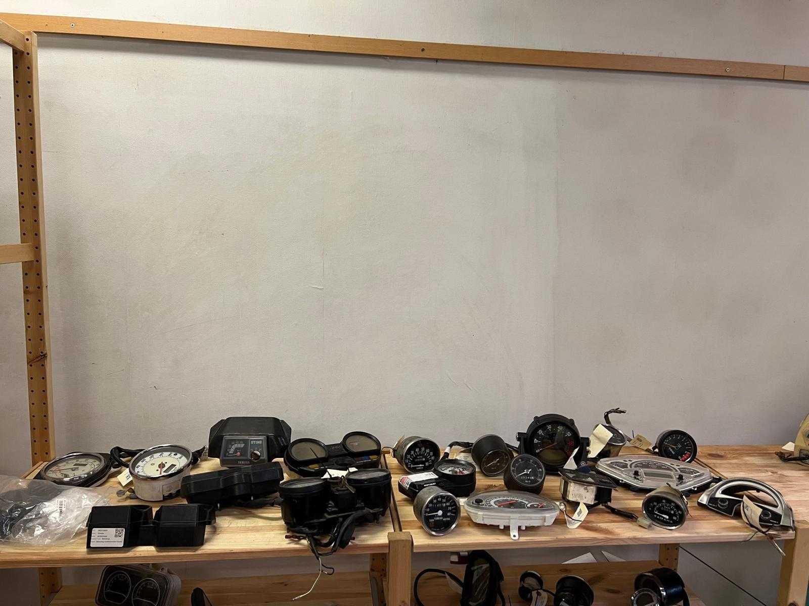 Partij van verschillende snelheidsmeters en dashboardunits afkomstig van diverse scooters en motorfietsen. Varianten omvatten zowel analoge als analoog-digitale meters. Staat varieert per stuk van gebruikt tot redelijk. Meerdere units bevatten bedrading, sensoren of kunststof behuizing. Ideaal voor onderdelen, reparatie of restauratieprojecten. Nee Merk: Yamaha Model: Diverse modellen Product type: Snelheidsmeters / dashboard units Kleur: Zwart / wit / zilver (mix)