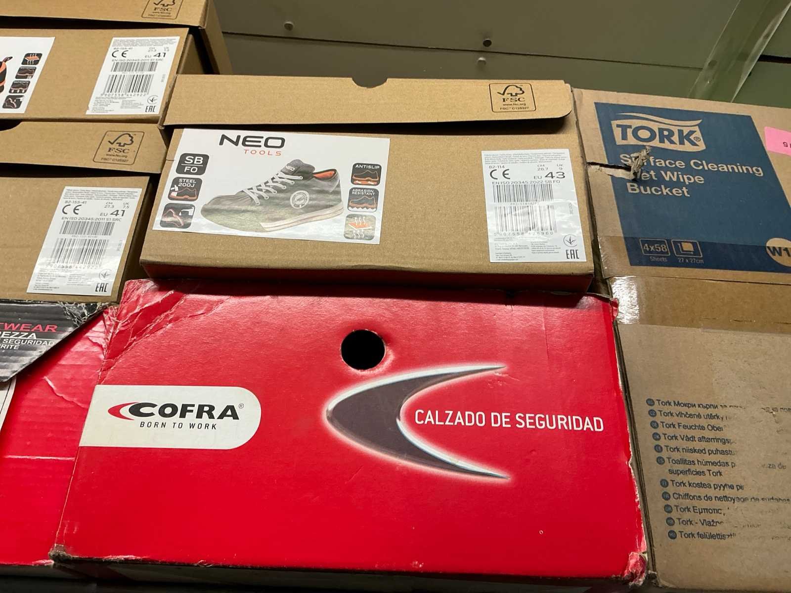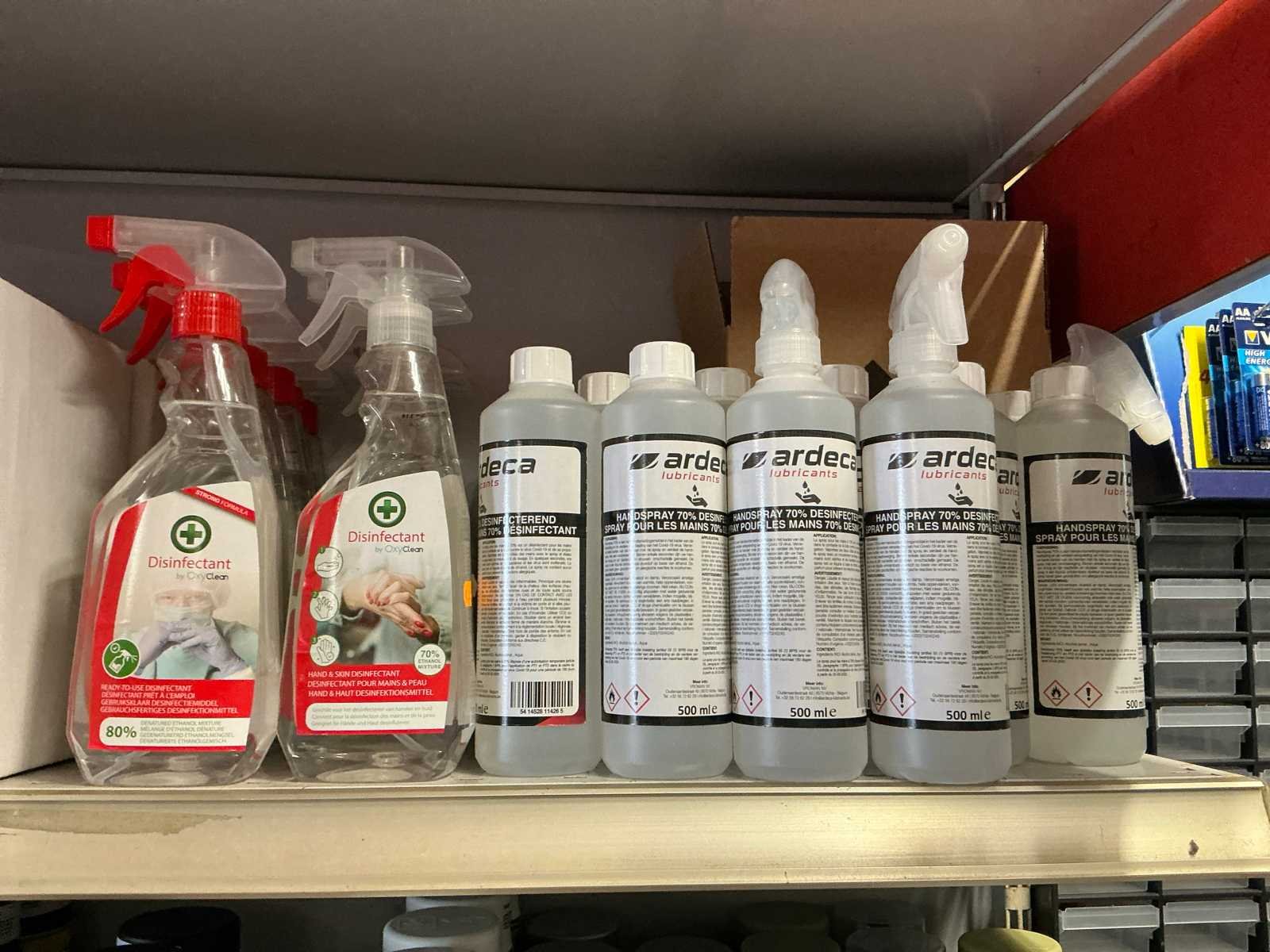 Bestaande uit 5 paar veiligheidsschoenen, handschoenen en desinfecterende spray (x60), handcrème. Nee