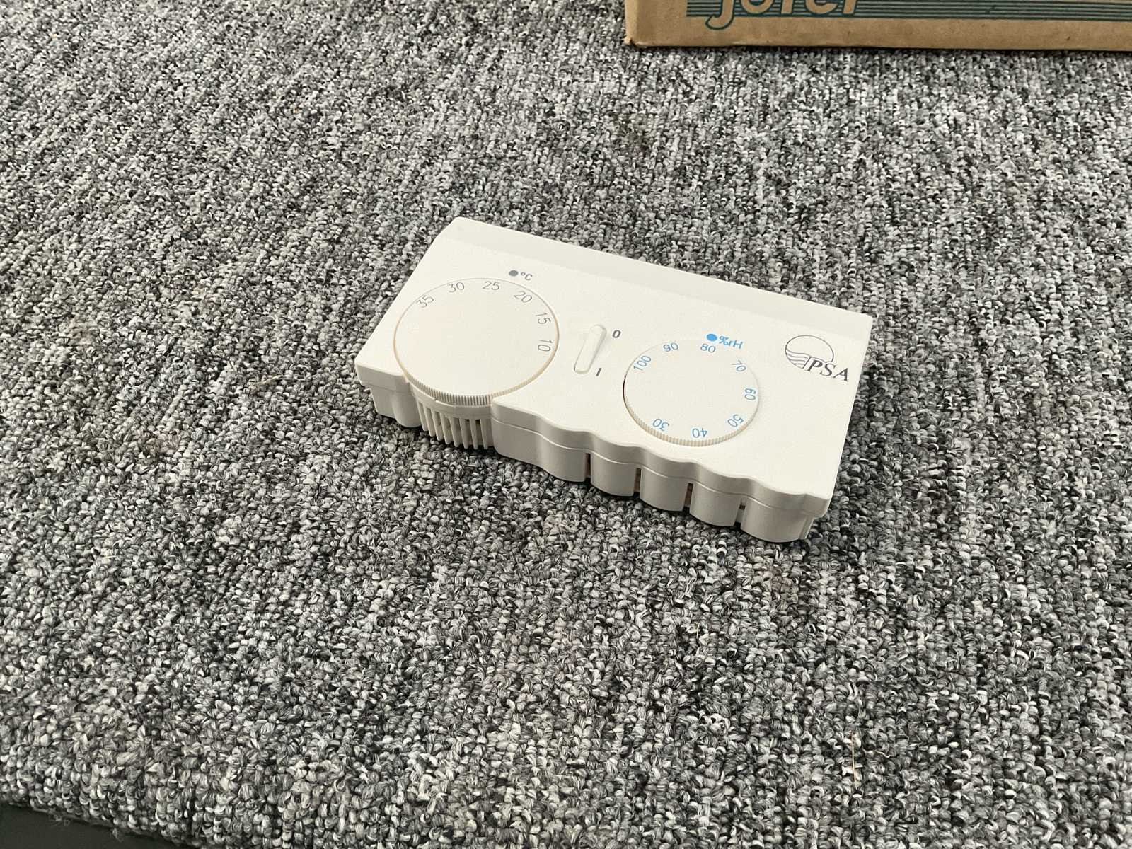 PSA DUO-S HYGRO-THERMOSTAT, ontworpen voor gelijktijdige controle van omgevingstemperatuur en luchtvochtigheid. Vochtigheidsmeetbereik: 30% tot 100% RH Temperatuurmeetbereik: 10 °C tot 35 °C Voeding: 24 V wisselstroom Referentie: 4242372F0D033110 / Ident A41552A040 – Datum: 12 06 2006 – Gemaakt in Europa Conditie: gefotografeerd materiaal, originele doos beschikbaar (zie foto's) Toepassing: Ideaal voor elektrische kasten, ventilatiekanalen, HVAC, opslagtunnels, enzovoort. No Merk: PSA Type: Hygro-Thermostat DUO-S Bouwjaar: 2006 Serienummer: 4242372F0D033110 / A41552A040