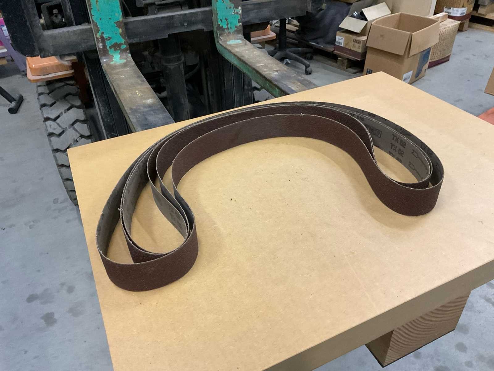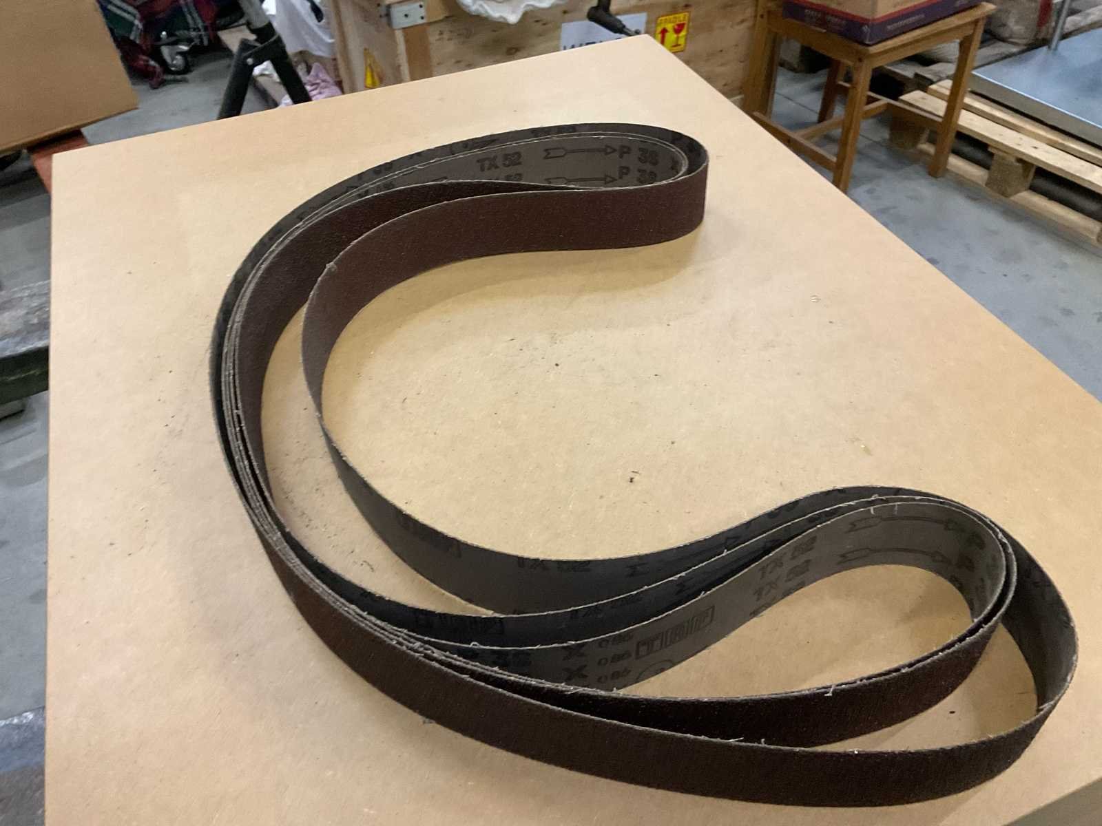 Set van 3 professionele schuurriemen VSM TX 52 P 36, in uitstekende staat (nieuw, nooit gebruikt). Zeer resistente "X" polyester stoffen ondersteuning, ideaal voor het schuren van metalen, staal, roestvrij staal, hardhout of composieten. Schurkorrel: aluminiumoxide. Industrieel product, bekend om zijn levensduur en prestaties. Merk: VSM Model: TX 52 P 36 Aantal: 3 Staat: Nieuw (werkplaatsvoorraad) Gebruik: stationaire of draagbare bandschuurmachines No Merk: VSM Model: TX 52 Type: P 36