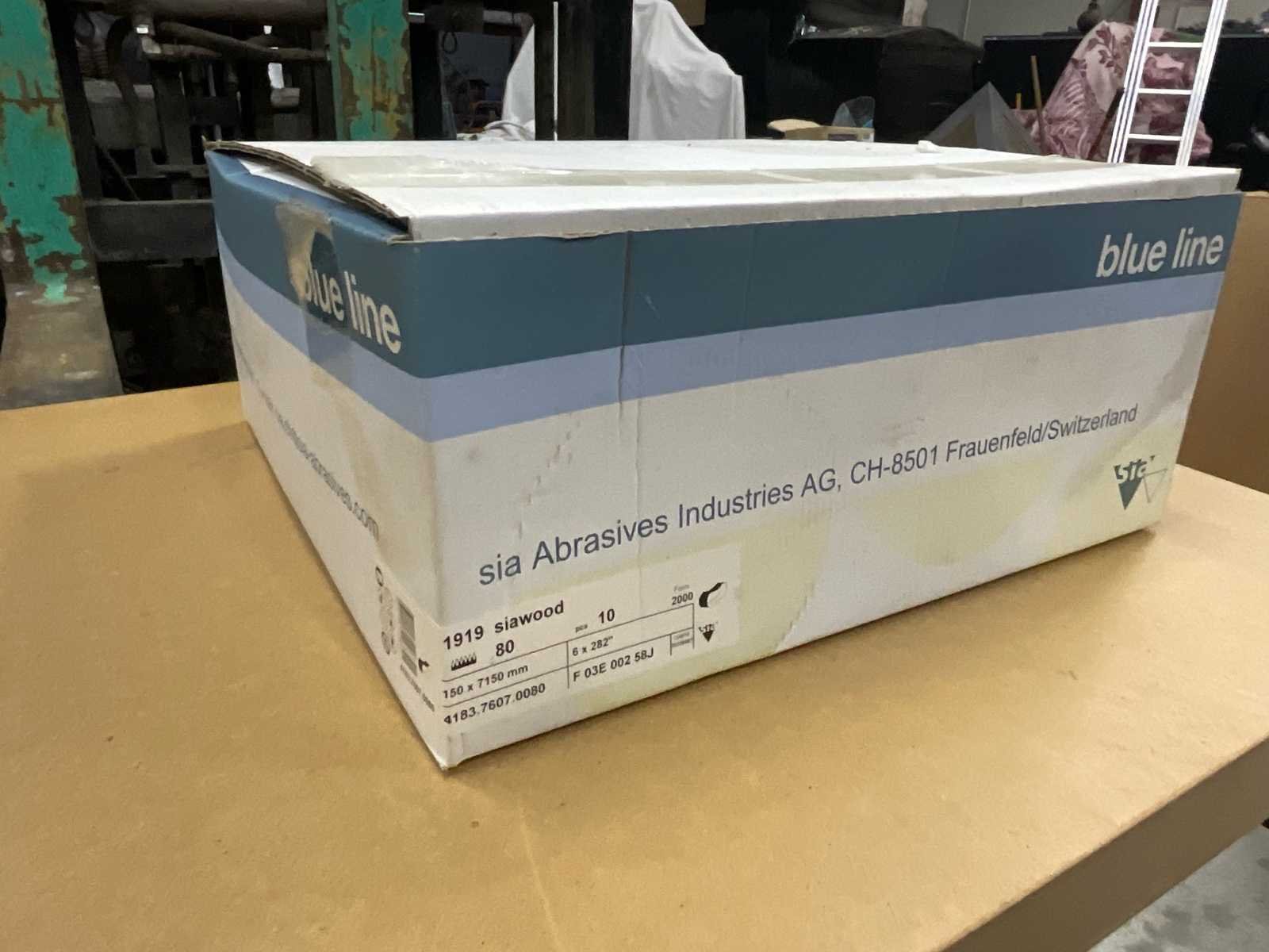 Set bestaande uit 7 professionele schuurriemen van SIA Abrasives, model 1919 siawood, blue line reeks. Nieuwe apparatuur, nooit gebruikt, uit een overbodige werkplaats. Kenmerken: Merk: SIA Abrasives Industries AG (Zwitserland) Model: 1919 siawood Grit: P80 Afmetingen: 150 mm × 7150 mm Robuuste papieren achterkant geschikt voor breedbandmachines Ideaal voor het schuren van hout, MDF, massieve of afgeleide panelen Industriële kwaliteit, hoge prestaties en lange levensduur Staat: Gloednieuwe hardware, opgeslagen in de originele doos. No Merk: Siawood Model: Blue line 1919 Siawood Type: P80