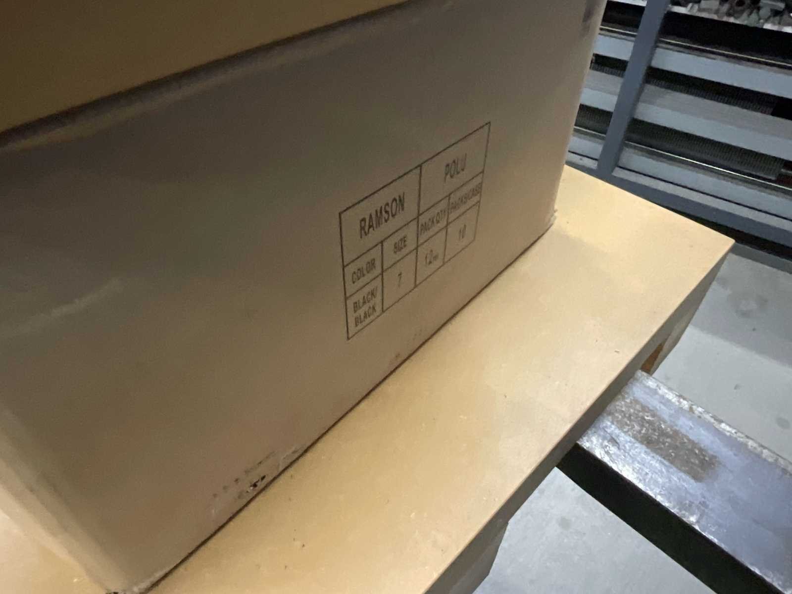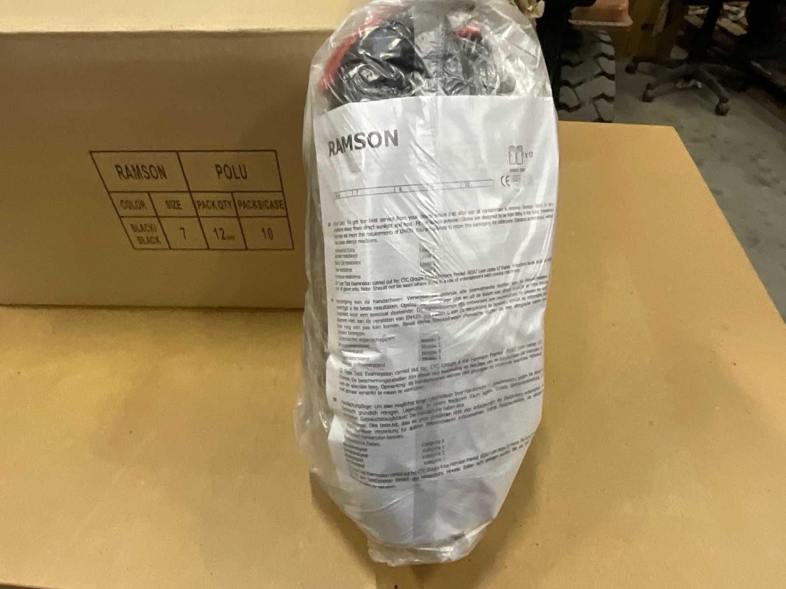 Set van 60 paar RAMSON beschermhandschoenen, POLU-model, zwart van kleur, maat 7. De handschoenen zijn gloednieuw, verpakt in 12 paar per tas. Verkrijgbaar in hun originele doos (nominale capaciteit: 120 paren). Kenmerken: Merk: RAMSON Type: Werk-/Hanteerhandschoenen Materiaal: Polyurethaan (PU) Kleur: Zwart Grootte: 7 Verpakking: 5 pakjes van 12 paar Conditie: Nieuw, nooit gebruikt, in plastic verpakking No Merk: Ramson Model: POLU Product type: Beschermhandschoenen Maat: S (7°