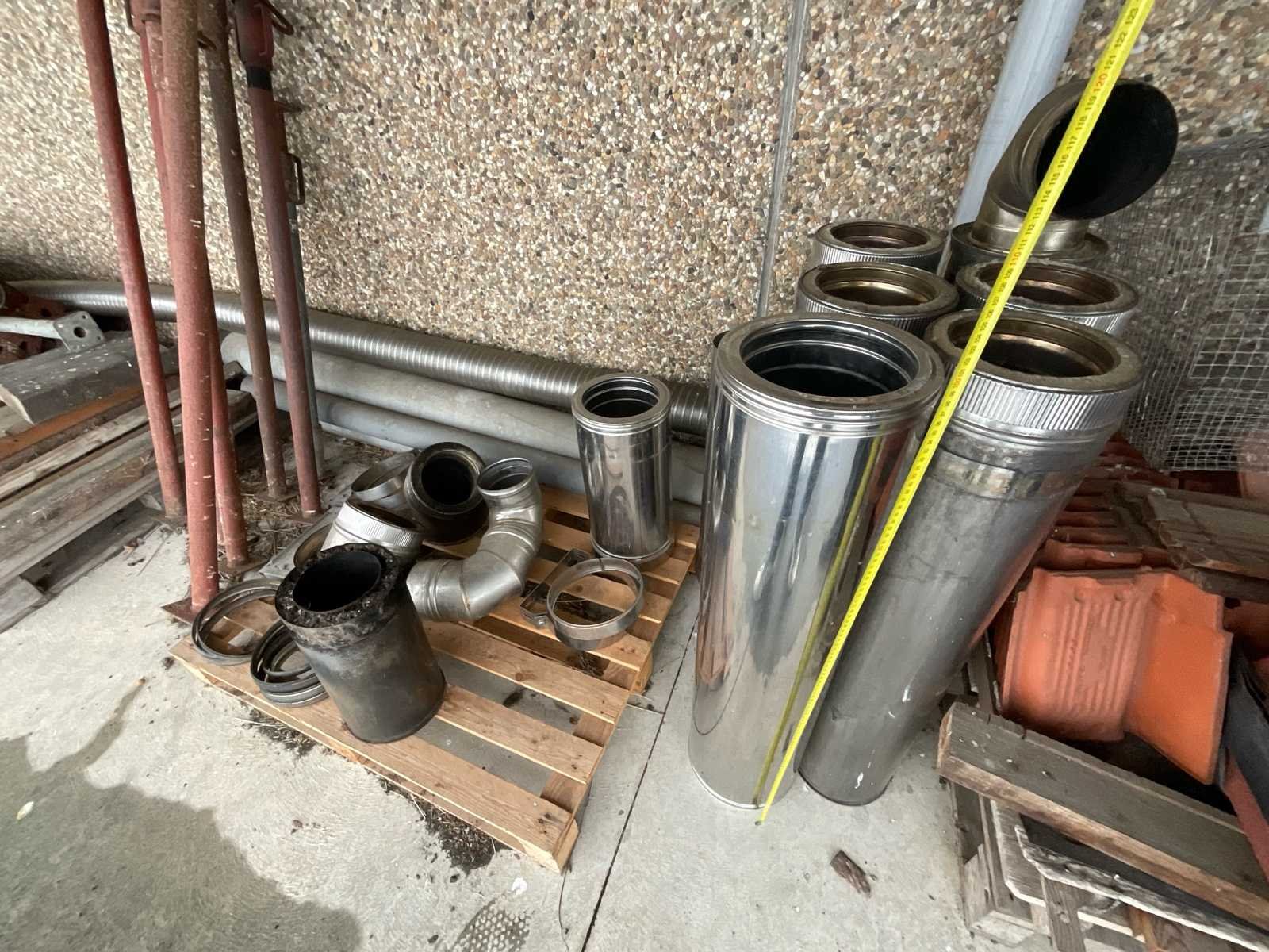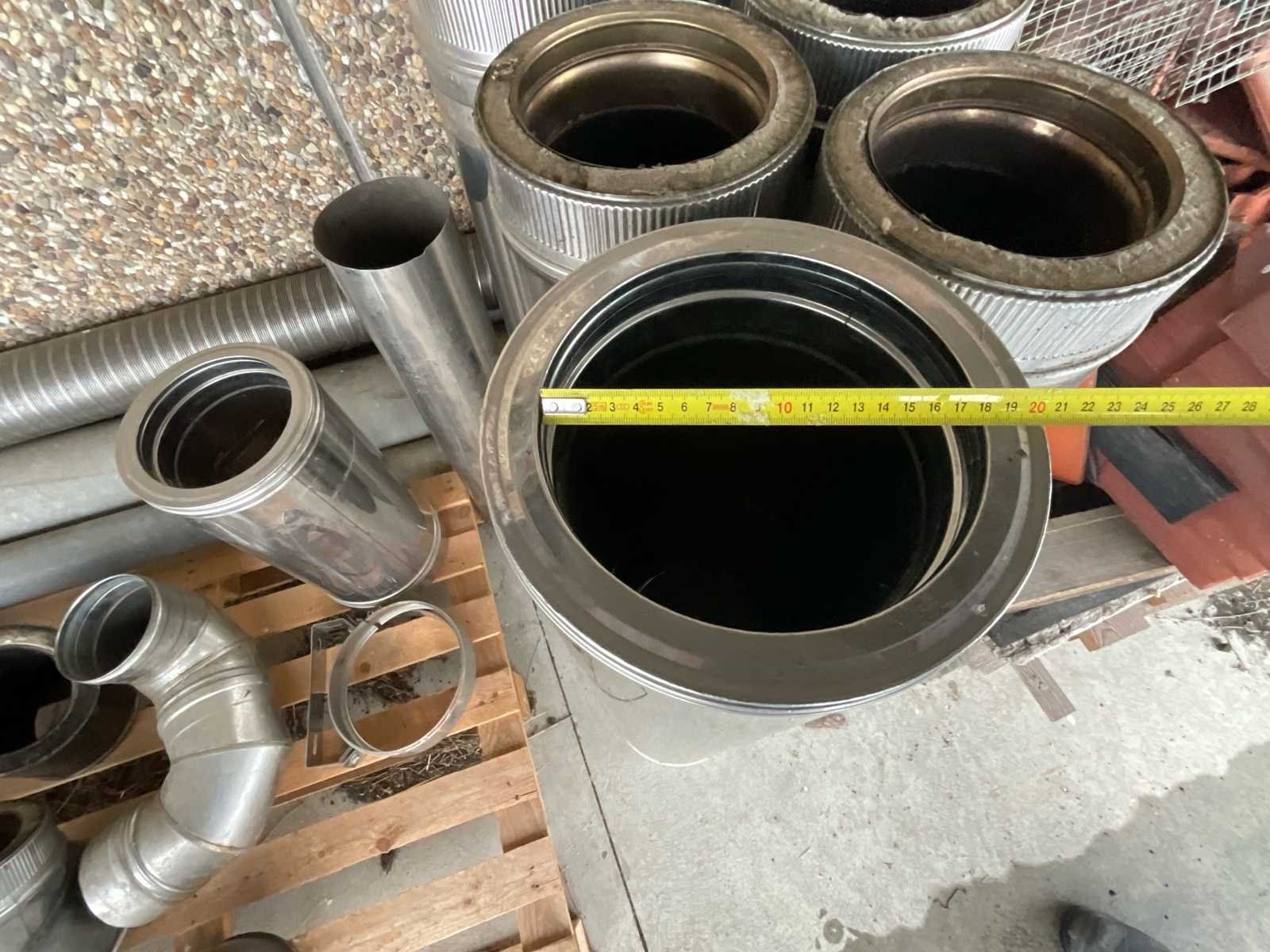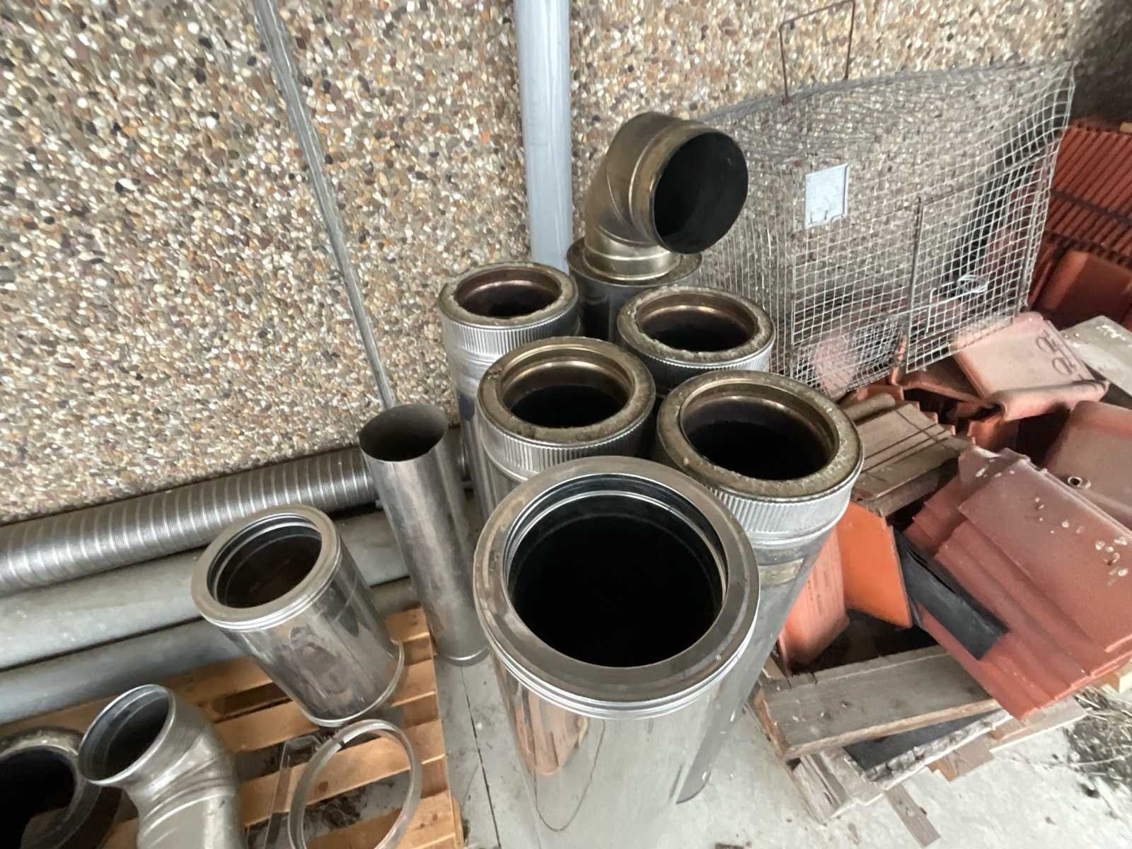 Complete set geïsoleerde dubbelwandige roestvrijstalen schoorsteenkanalen, geschikt voor het afvoeren van rook uit kachels, hout-, pellet- of olieketels. Ongeveer samenstelling van het perceel: 4 rechte elementen van ongeveer 1 meter 2 rechte elementen van ongeveer 50 cm 2 x 90° bochten Meervoudige klemmen en verbindingsringen Binnendiameter: 200 mm (gemeten met tape) Materiaal: dubbelwandig geïsoleerd roestvrij staal met minerale wol Conditie: goede algemene conditie, sporen van gebruik op sommige delen, een buis licht zwartgeblakerd door roet (gebruikt) No Merk: Cheminées Model: Inox Type: Double paroi