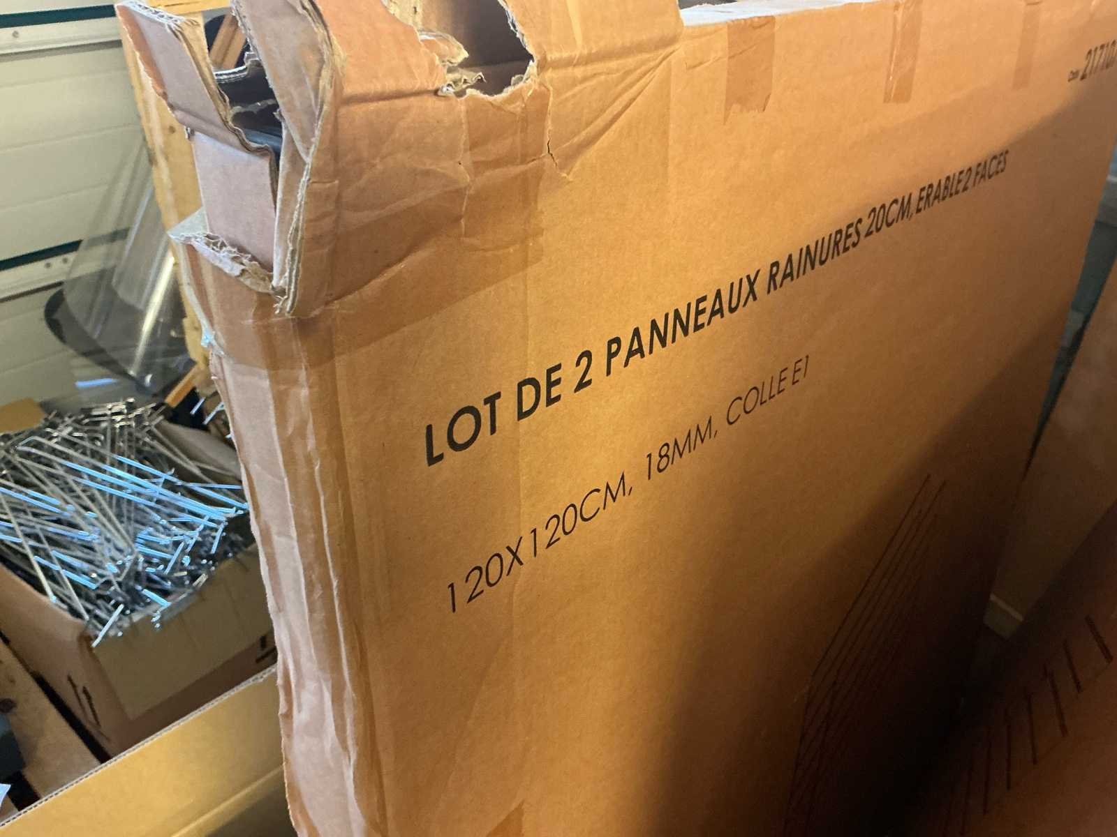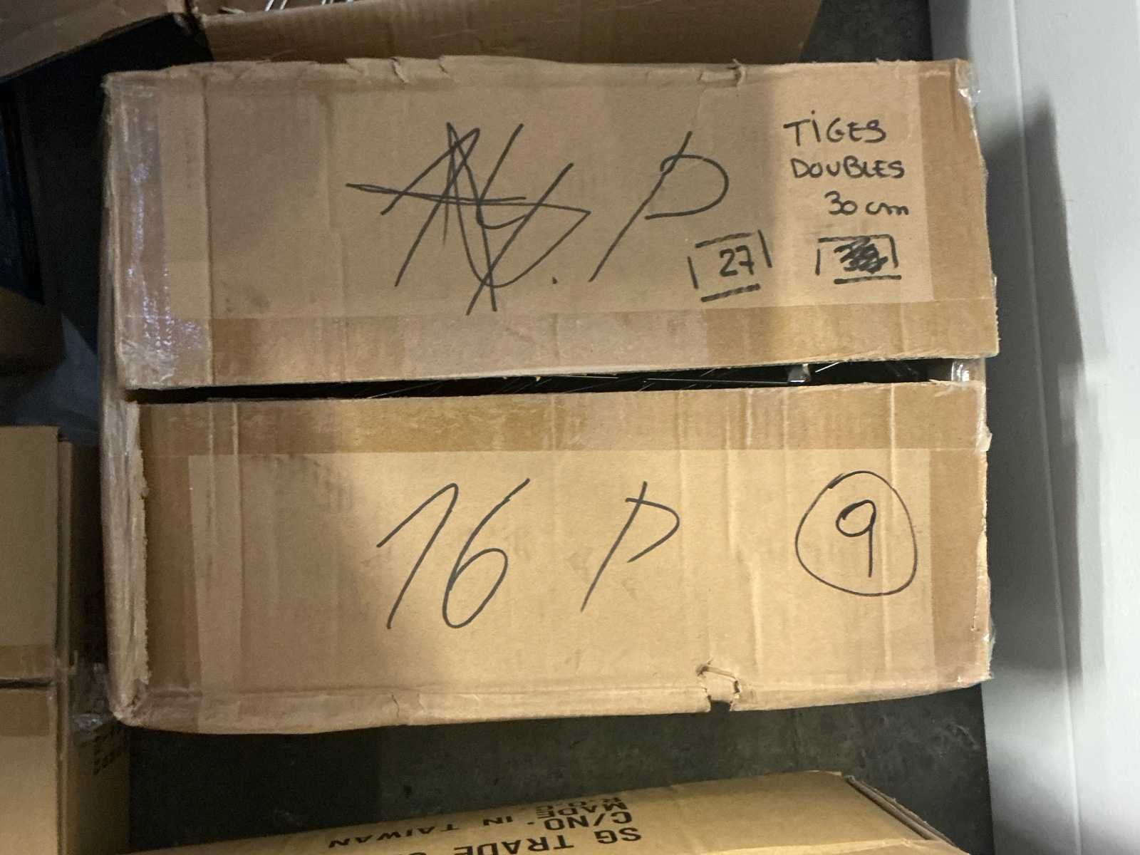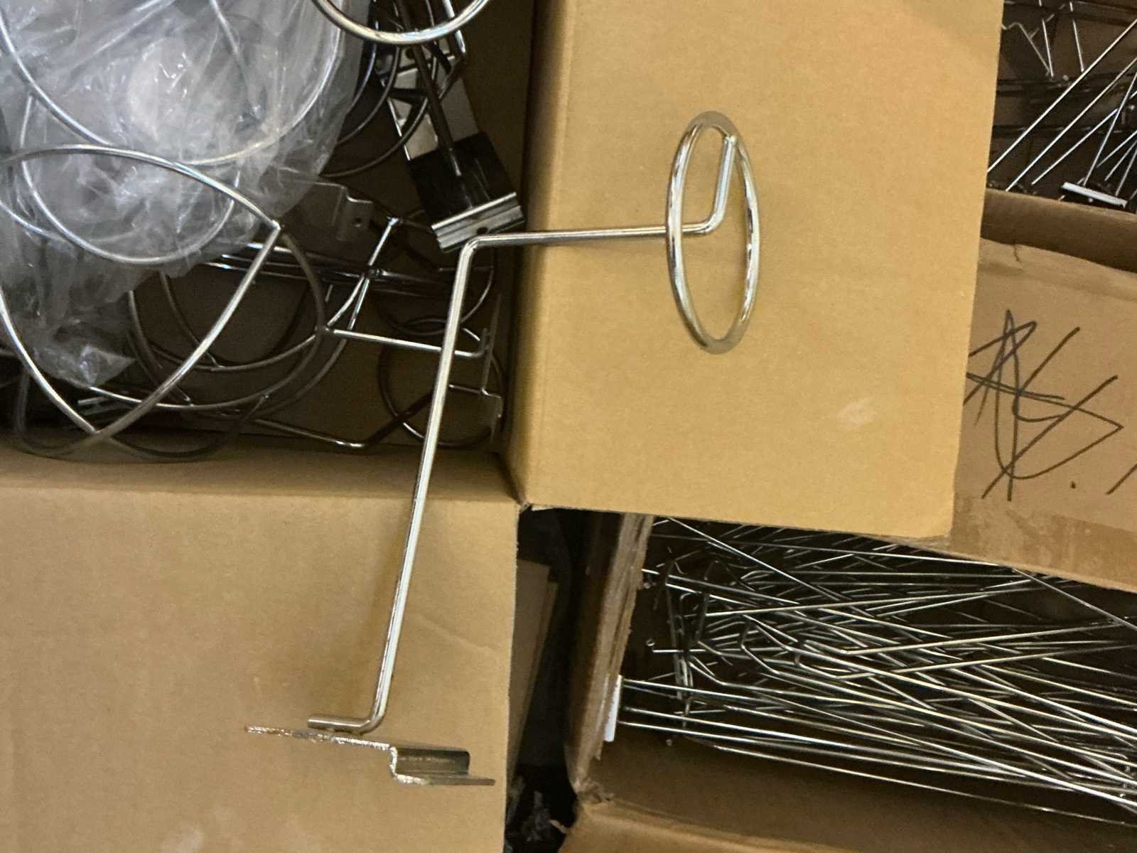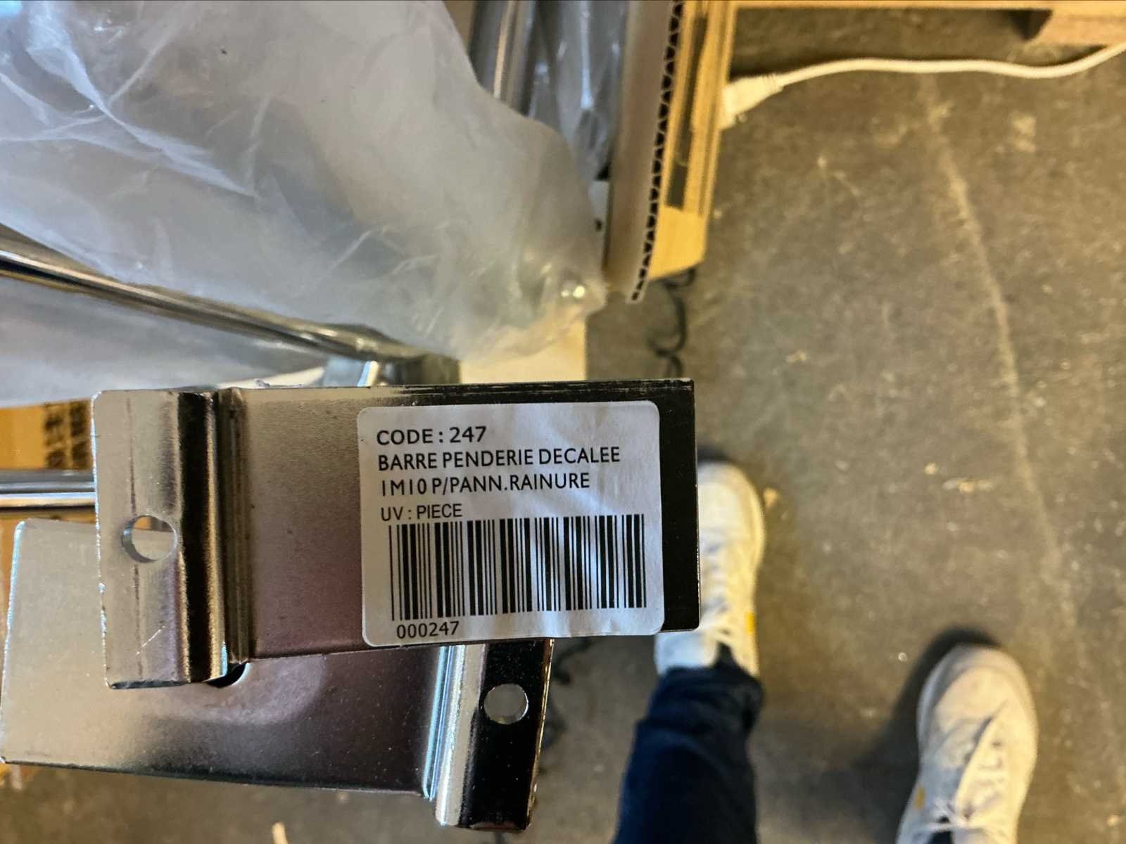 Het lot bevat verschillende winkelinrichting artikelen: -4x Houten sleufwand in esdoorn kleur. L120 X H120 Dikte 18 MM -31x Versterkte aluminium inzet voor sleufwand. -16x Pet/cap steunen voor sleufwand. -20x Ronde schuine arm voor sleufwand L30 cm -7x Kledingsstang 110 x 30 cm. -10x Helm/hoedenhouder voor sleufwand. -39x Enkele draadhaak + T voor sleufwand L30 cm -27x Dubbele draadhaak voor sleufwand L30 cm. -18x Dubbele draadhaak voor sleufwand L20 cm. -12x Enkele draadhaak + T L20 cm. -16x Enkele draadhaak + T L10 cm. -164x Enkele draadhaak + T L10 cm. -4x Metalen schuine plank voor sleufwand. -1x Elektrische Kassalade. No Hout: true