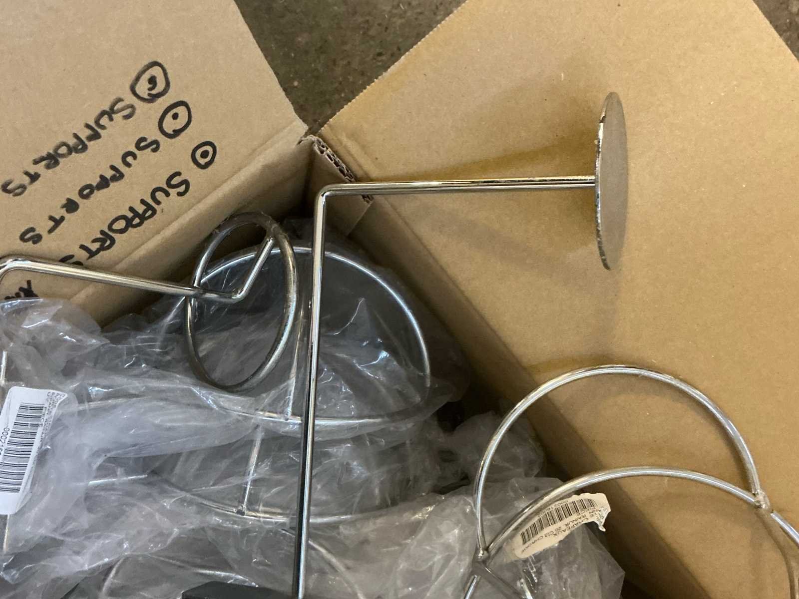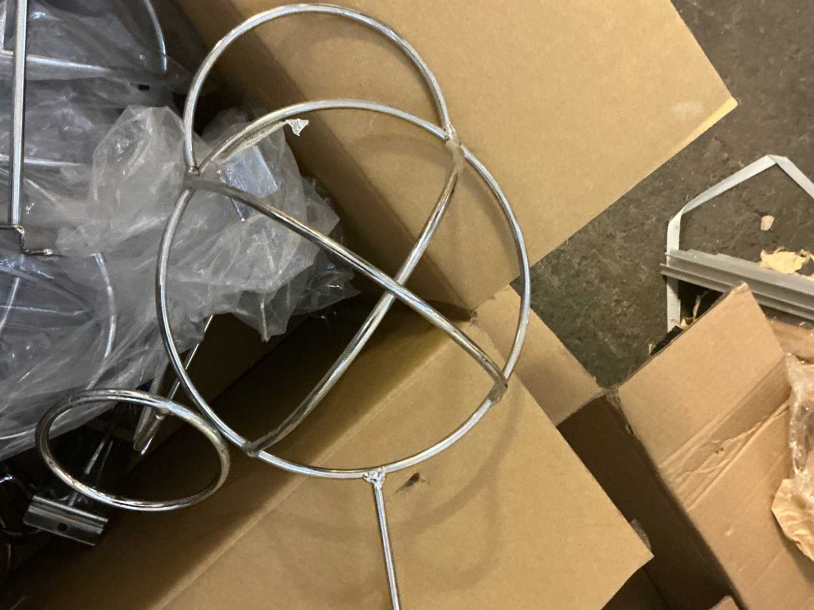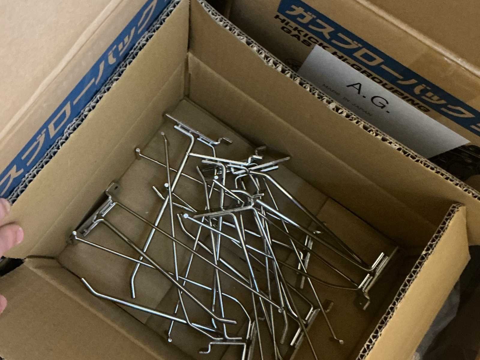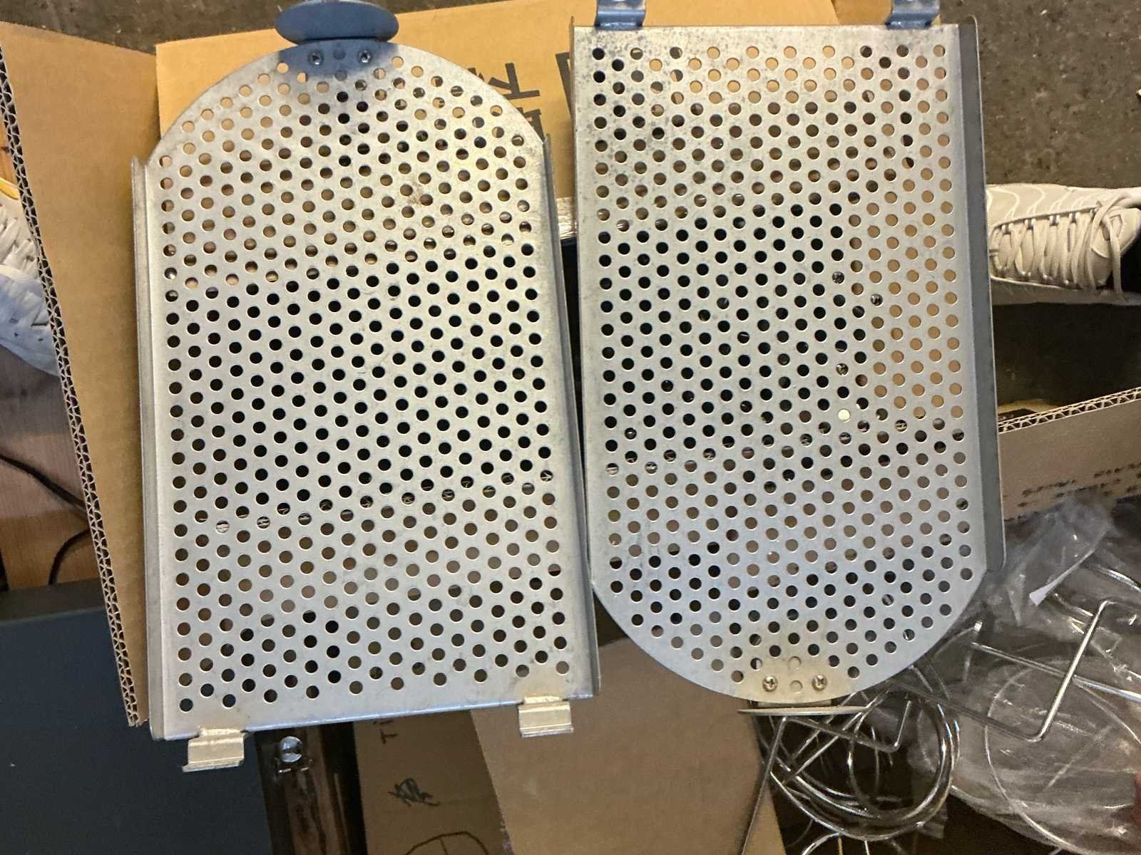 Het lot bevat verschillende winkelinrichting artikelen: -4x Houten sleufwand in esdoorn kleur. L120 X H120 Dikte 18 MM -31x Versterkte aluminium inzet voor sleufwand. -16x Pet/cap steunen voor sleufwand. -20x Ronde schuine arm voor sleufwand L30 cm -7x Kledingsstang 110 x 30 cm. -10x Helm/hoedenhouder voor sleufwand. -39x Enkele draadhaak + T voor sleufwand L30 cm -27x Dubbele draadhaak voor sleufwand L30 cm. -18x Dubbele draadhaak voor sleufwand L20 cm. -12x Enkele draadhaak + T L20 cm. -16x Enkele draadhaak + T L10 cm. -164x Enkele draadhaak + T L10 cm. -4x Metalen schuine plank voor sleufwand. -1x Elektrische Kassalade. No Hout: true