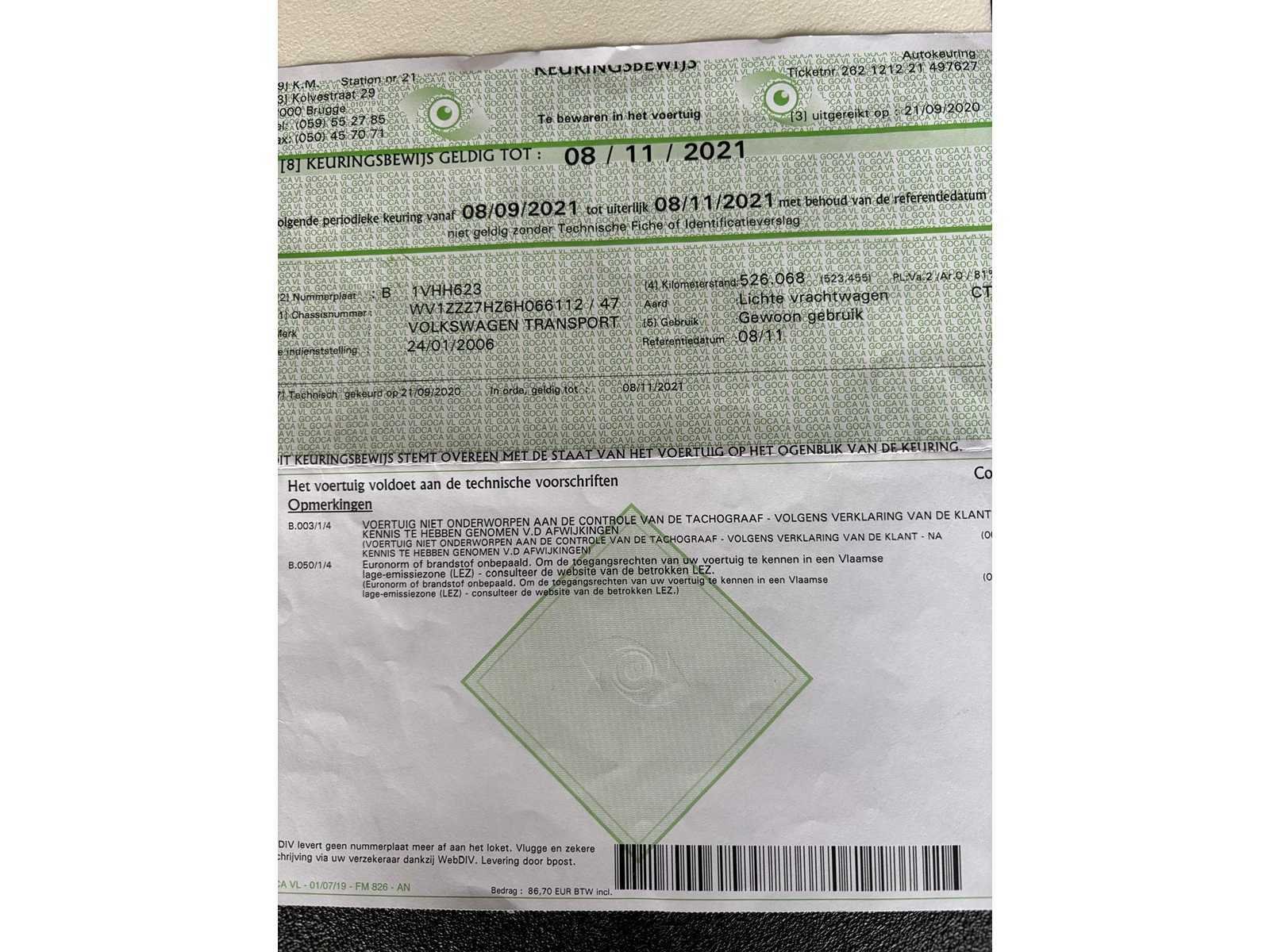 Motor kapot No Merk: Volkswagen Type: Transport Model: TDI Bouwjaar: 2005 Chassisnummer: WV1ZZZ7HZ6H066112(01) Afgelezen kilometerstand: 530000km Cilinderinhoud: 2481cc Vermogen (kW): 128kW Brandstof: diesel Datum eerste toelating: 24/01/2006 Transmissie: Automaat Aantal zitplaatsen: 2 Kleur: Zilver Carrosserie: Lichte vrachtwagen Emissieklasse: Euro 6b Kentekenpapieren compleet?: true Boorddocumenten aanwezig?: true