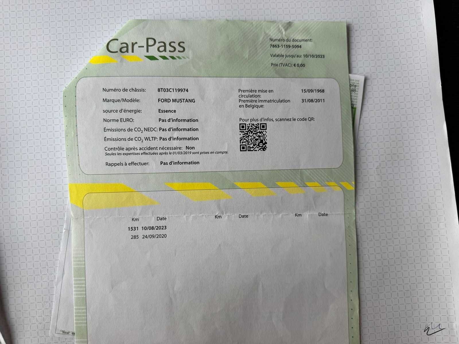 115.000 km 15/09/1968 4722 cc V8 elektrisch dak alu velgen automaat No Merk: Ford Model: Mustang Bouwjaar: 1968 Afgelezen kilometerstand: 115000km Cilinderinhoud: 4722cc Brandstof: Benzine Chassisnummer: 8T03C119974 Datum eerste toelating: 15/09/1968 Kleur: geel Transmissie: Automaat Inschrijvingsbewijs - deel 1 : aanwezig Inschrijvingsbewijs - deel 2: aanwezig