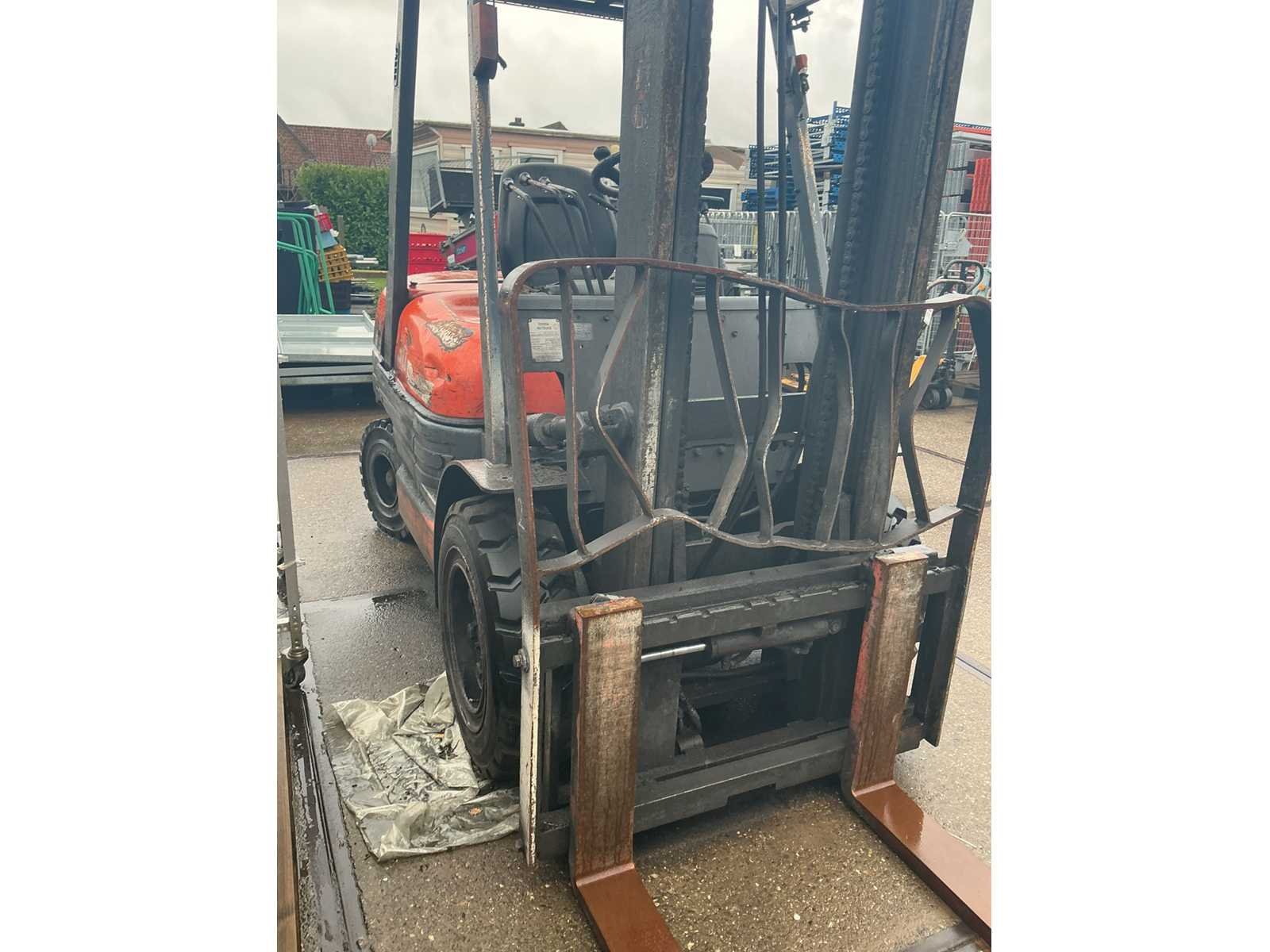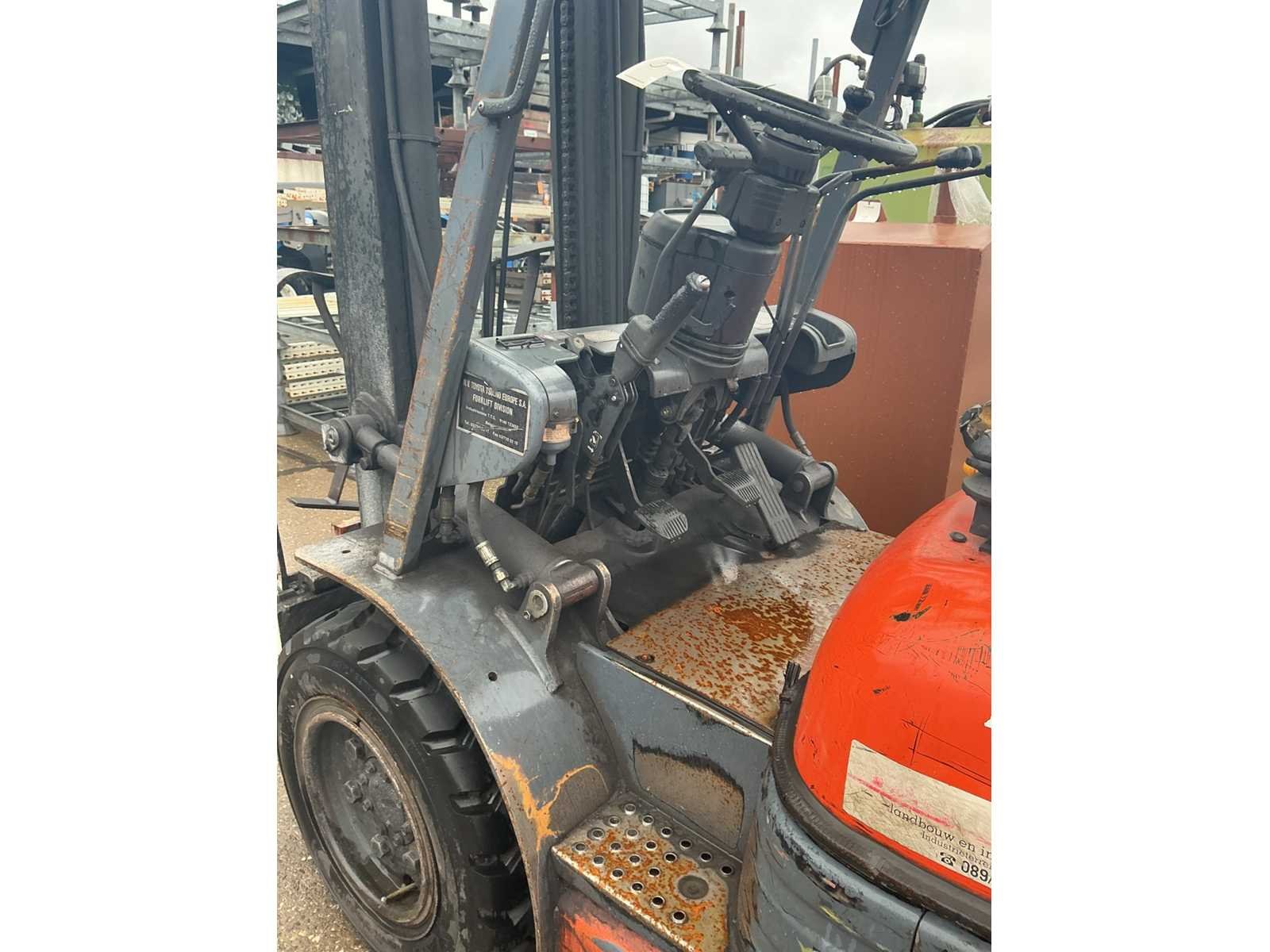 Lichte hydrauliek lekkage,gebruik sporen aanwezig. Nee Merk: Toyota. Type: 02 6FDF 30 Bouwjaar: 1995 Serienummer: 6FDF3010130 Brandstof: Diesel Aantal wielen: 4 Afgelezen urenstand: 13000 Hydraulisch verstelbare lepels: true Duplex mast: true Eigen gewicht: 4610kg Hefvermogen: 3000kg Lepellengte: 1200mm Max. hefhoogte: 4600mm Luchtbanden: true Minimale doorrijhoogte: 2850mm Diesel: true