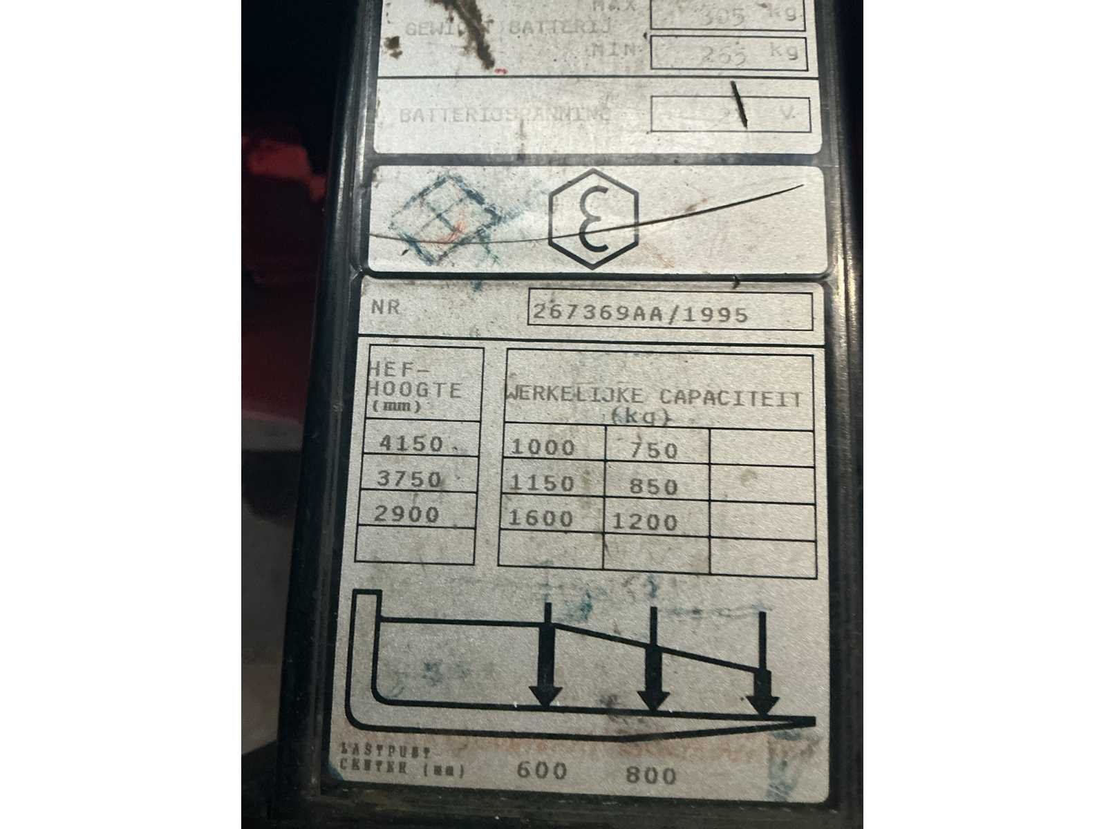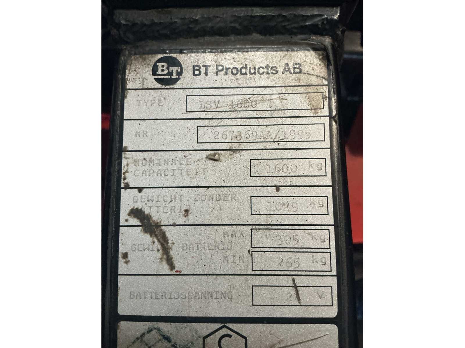 Nee Merk: BT. Type: LSV 1600 Bouwjaar: 1995 Serienummer: 267369AA/1995 Hefvermogen: 1600kg Lepellengte: 11500mm Accu lader: true