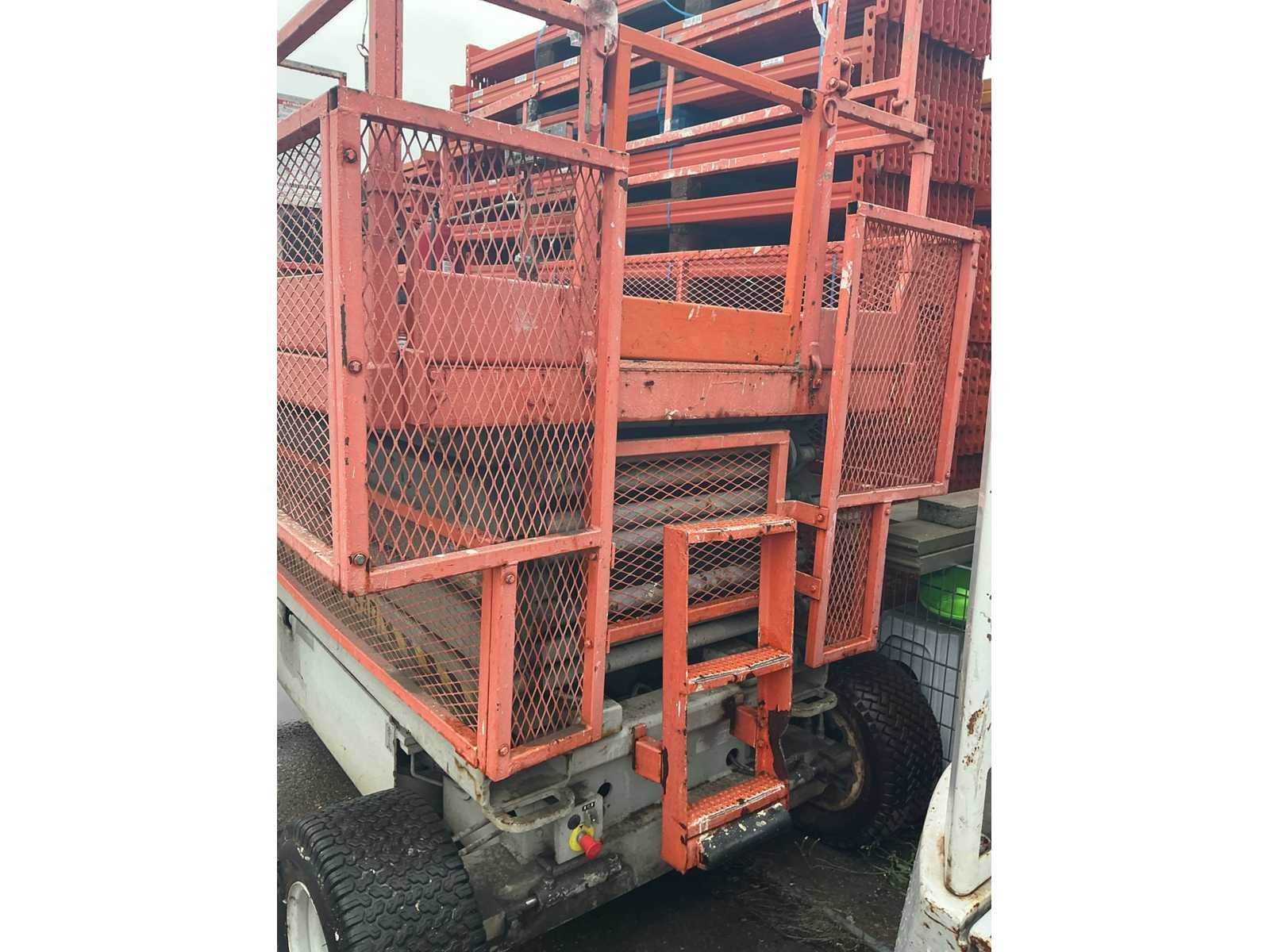 Werking onbekend,batterijen niet opgeladen. Nee Merk: SKYLACK. Type: SJlll-6832 Serienummer: 82177 Elektrisch: true Schaarhoogwerker: true Werkhoogte: 9700mm Platform capaciteit: 454kg Accu lader: true Eigen gewicht: 2486kg