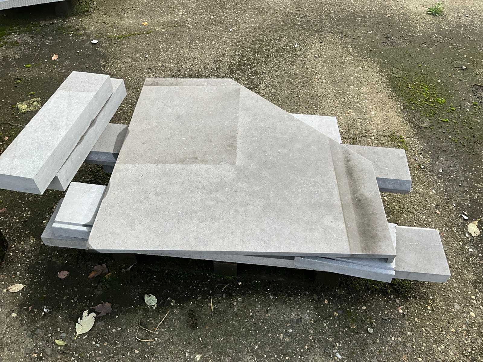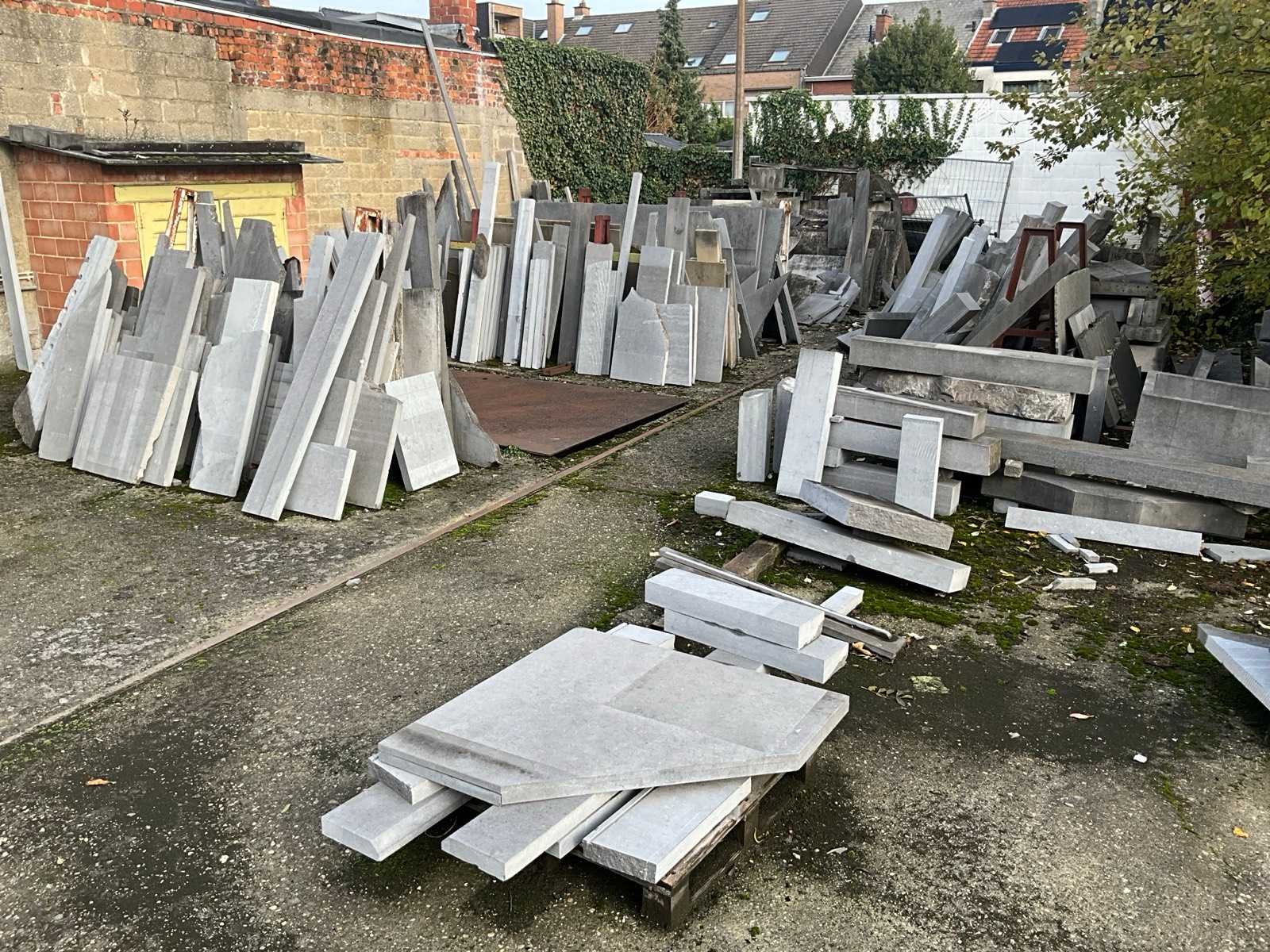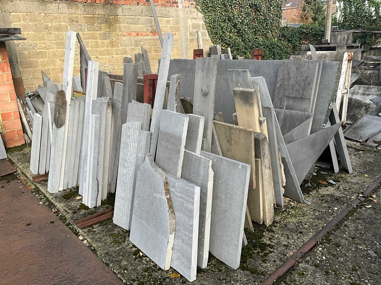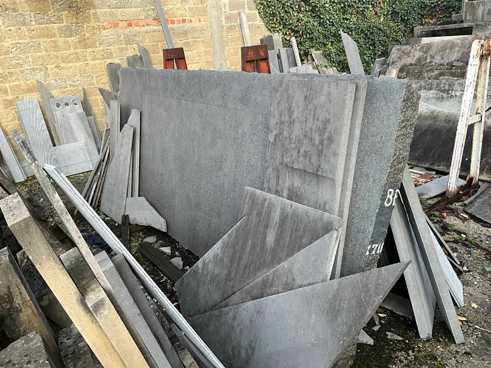 Divers natuursteen in diverse afmetingen waaronder blauwsteen, blauwsteenplaat met afmeting:310x130x10cm, compleet met 3x metalen bok, afgifte volgens aanwijzing Nee
