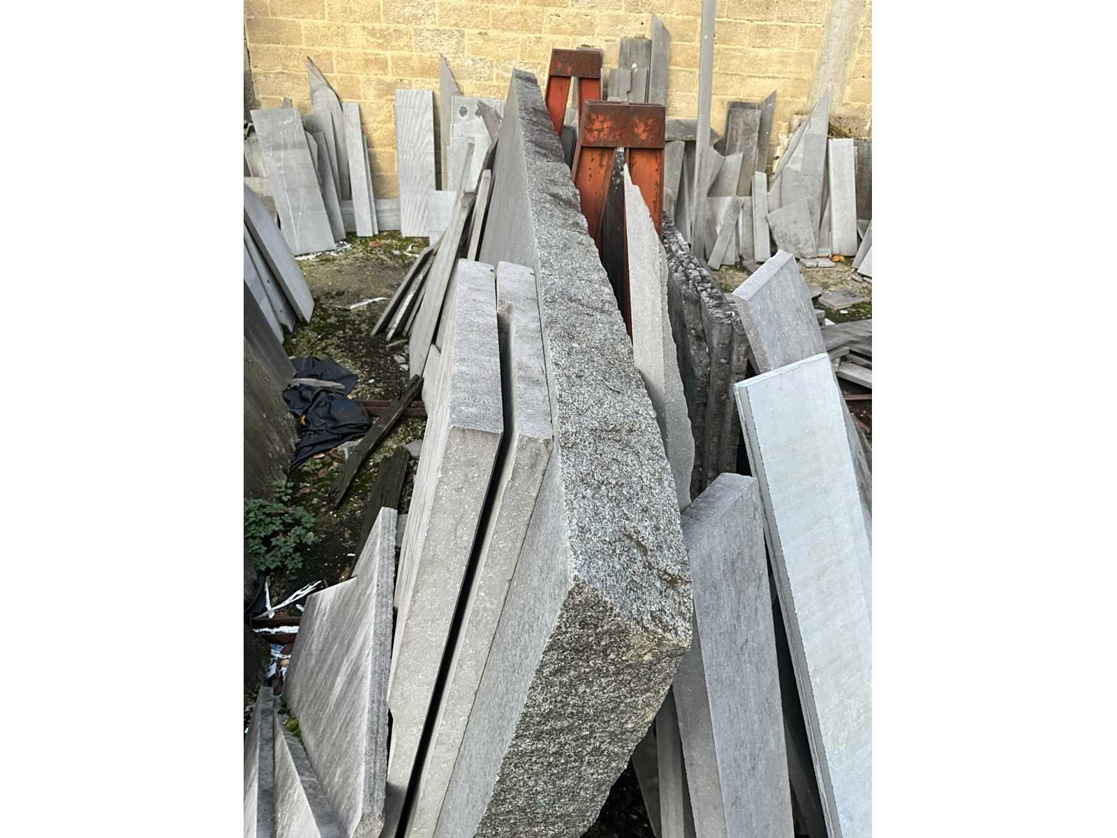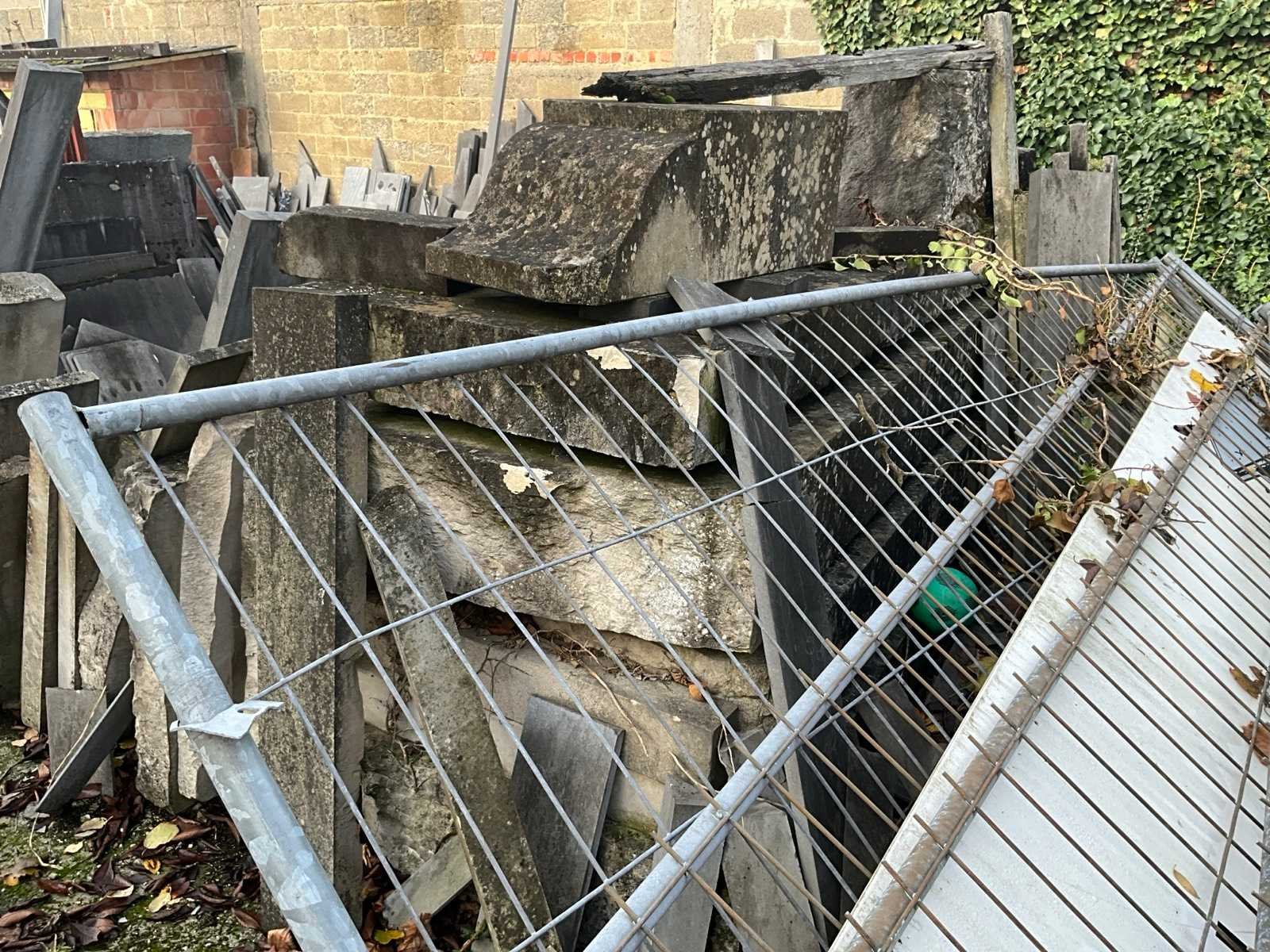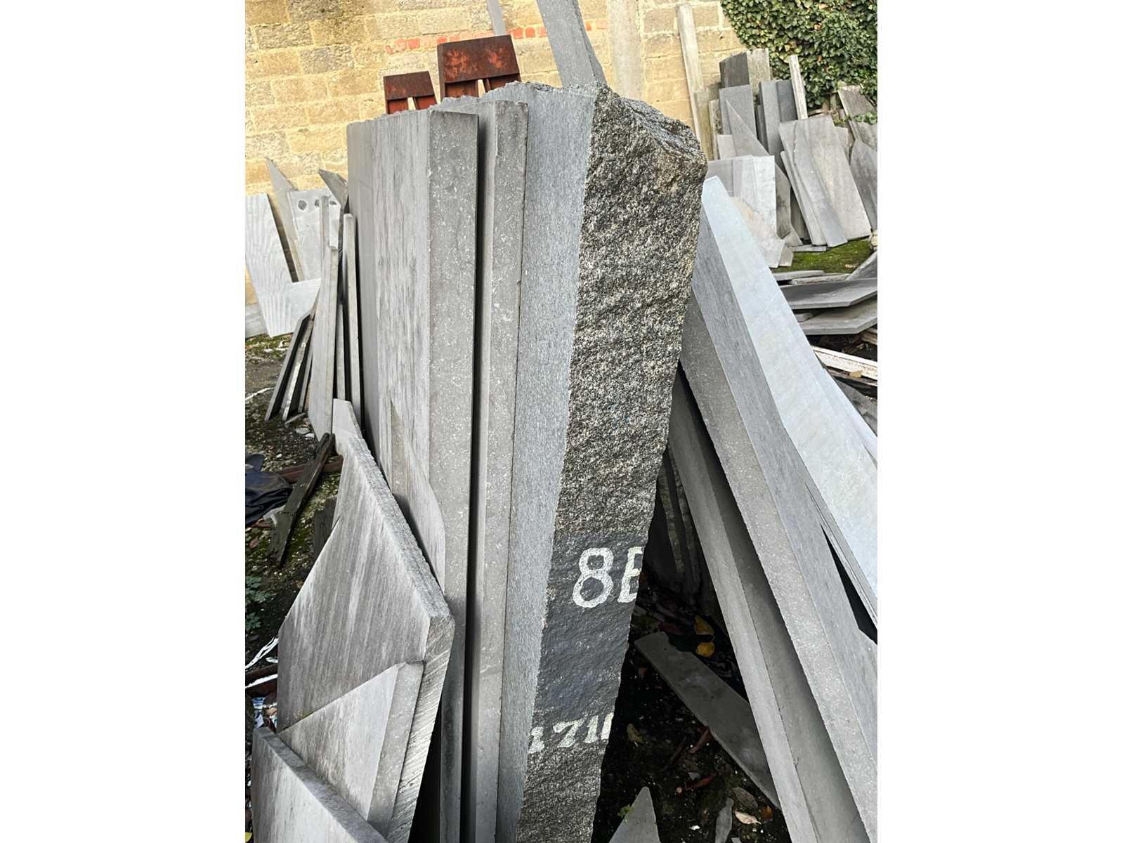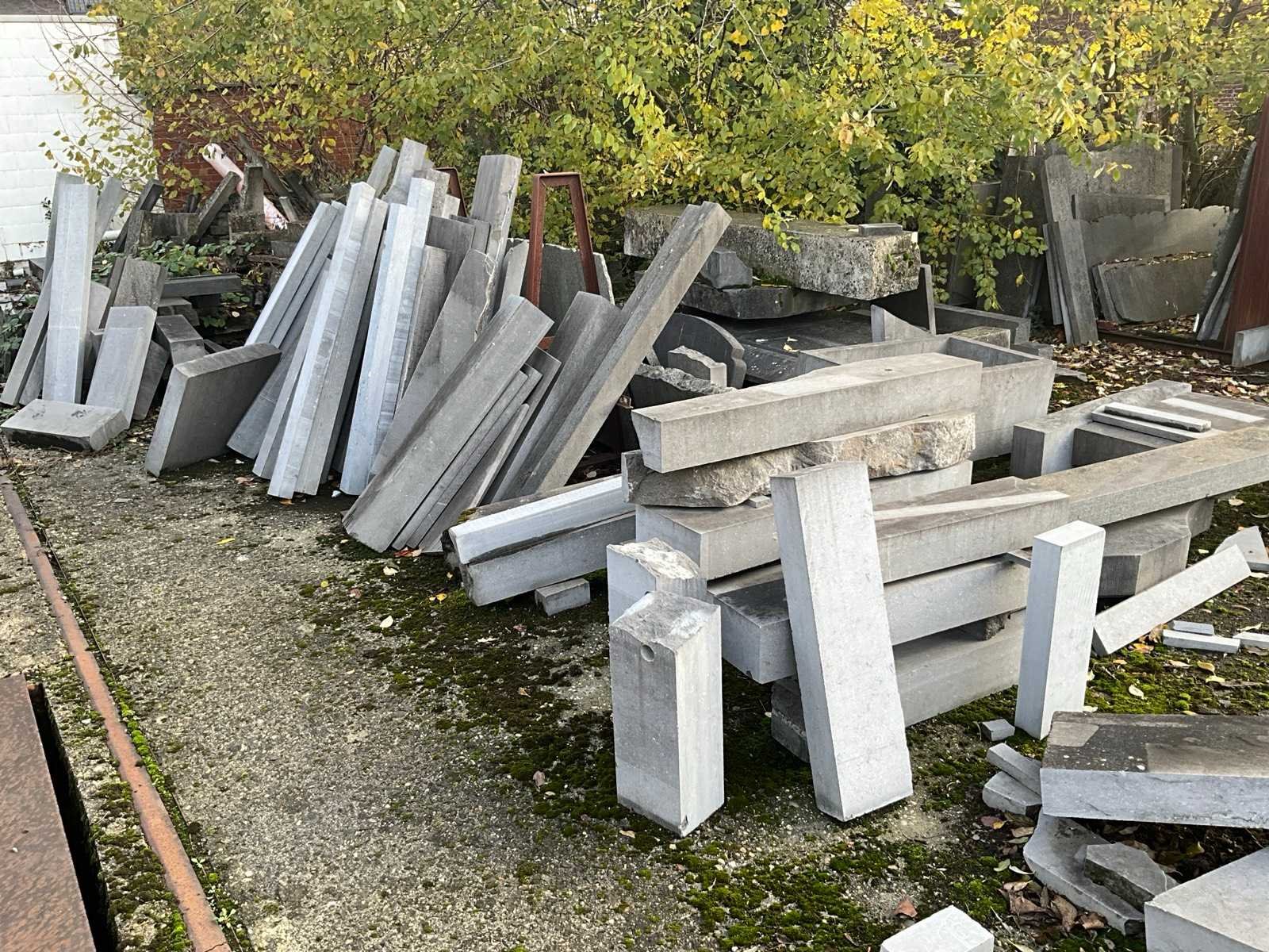 Divers natuursteen in diverse afmetingen waaronder blauwsteen, blauwsteenplaat met afmeting:310x130x10cm, compleet met 3x metalen bok, afgifte volgens aanwijzing Nee