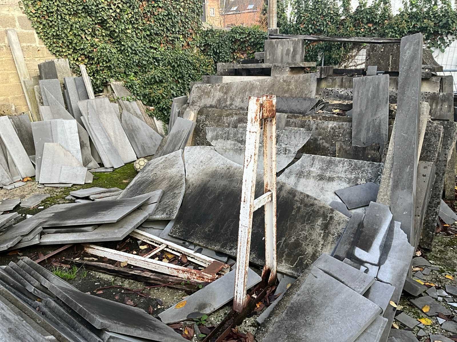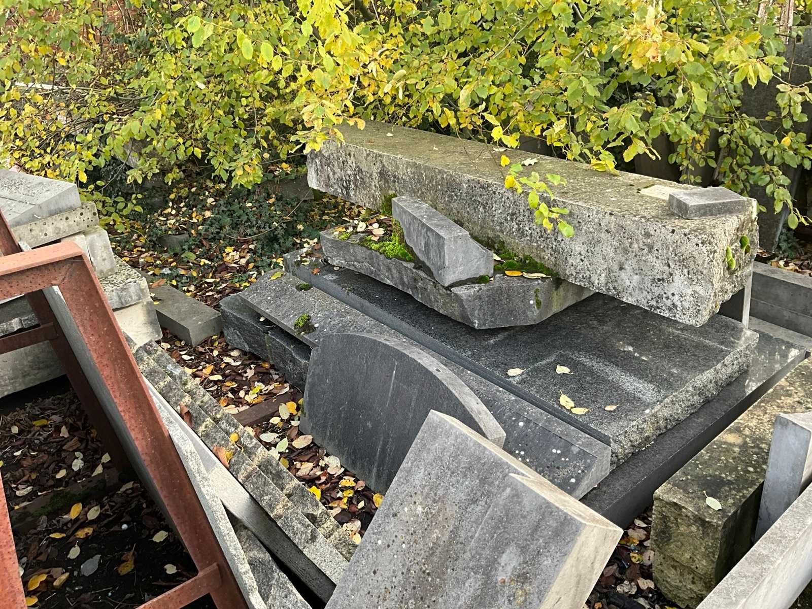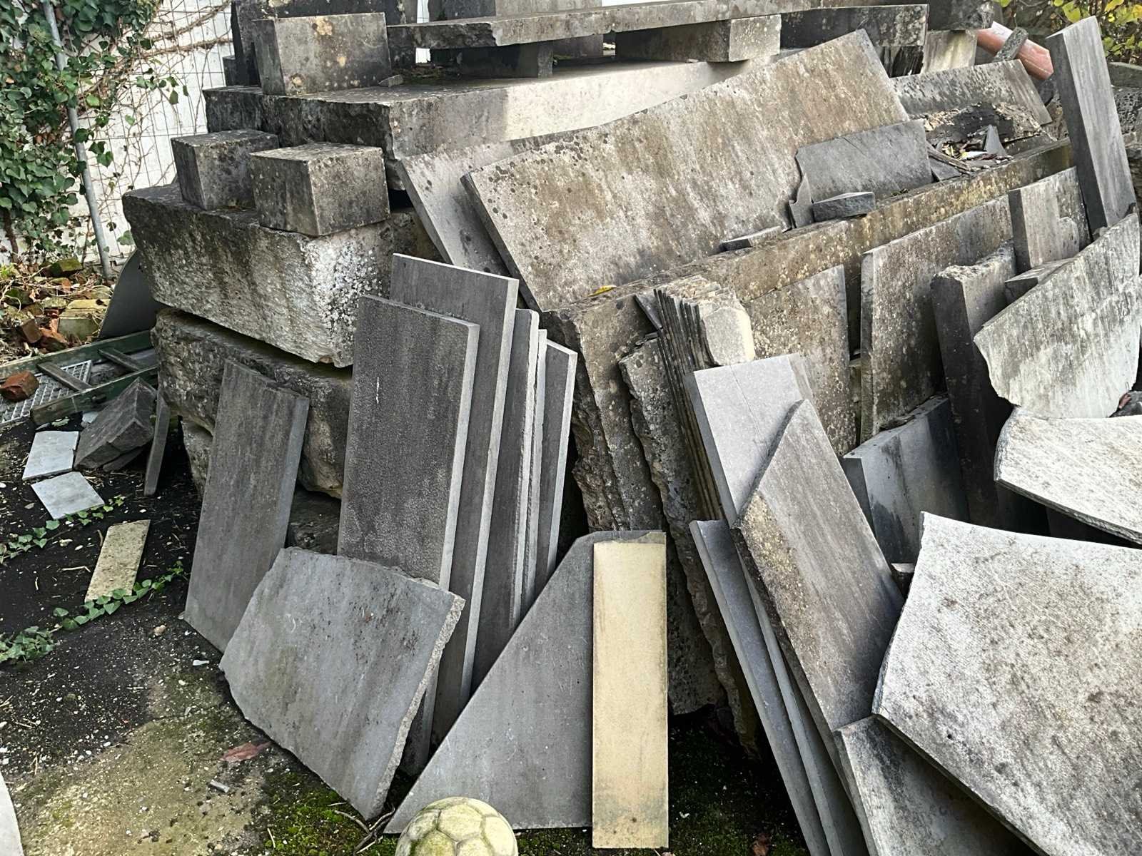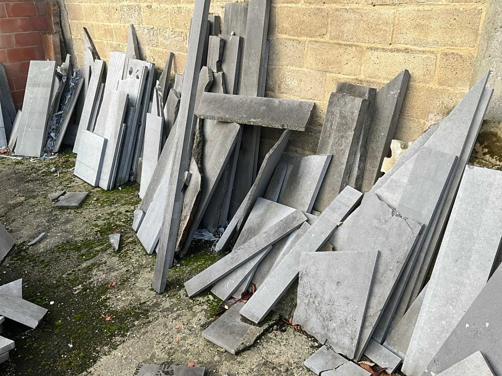 Divers natuursteen in diverse afmetingen waaronder blauwsteen, blauwsteenplaat met afmeting:310x130x10cm, compleet met 3x metalen bok, afgifte volgens aanwijzing Nee