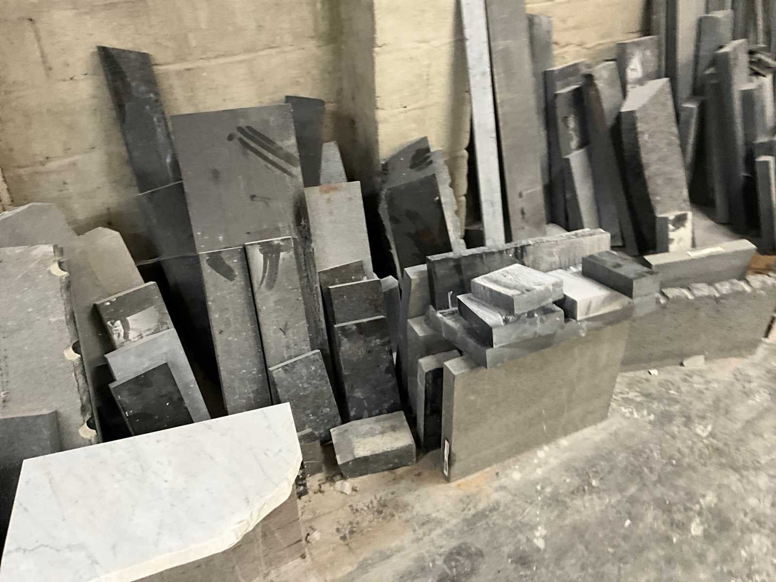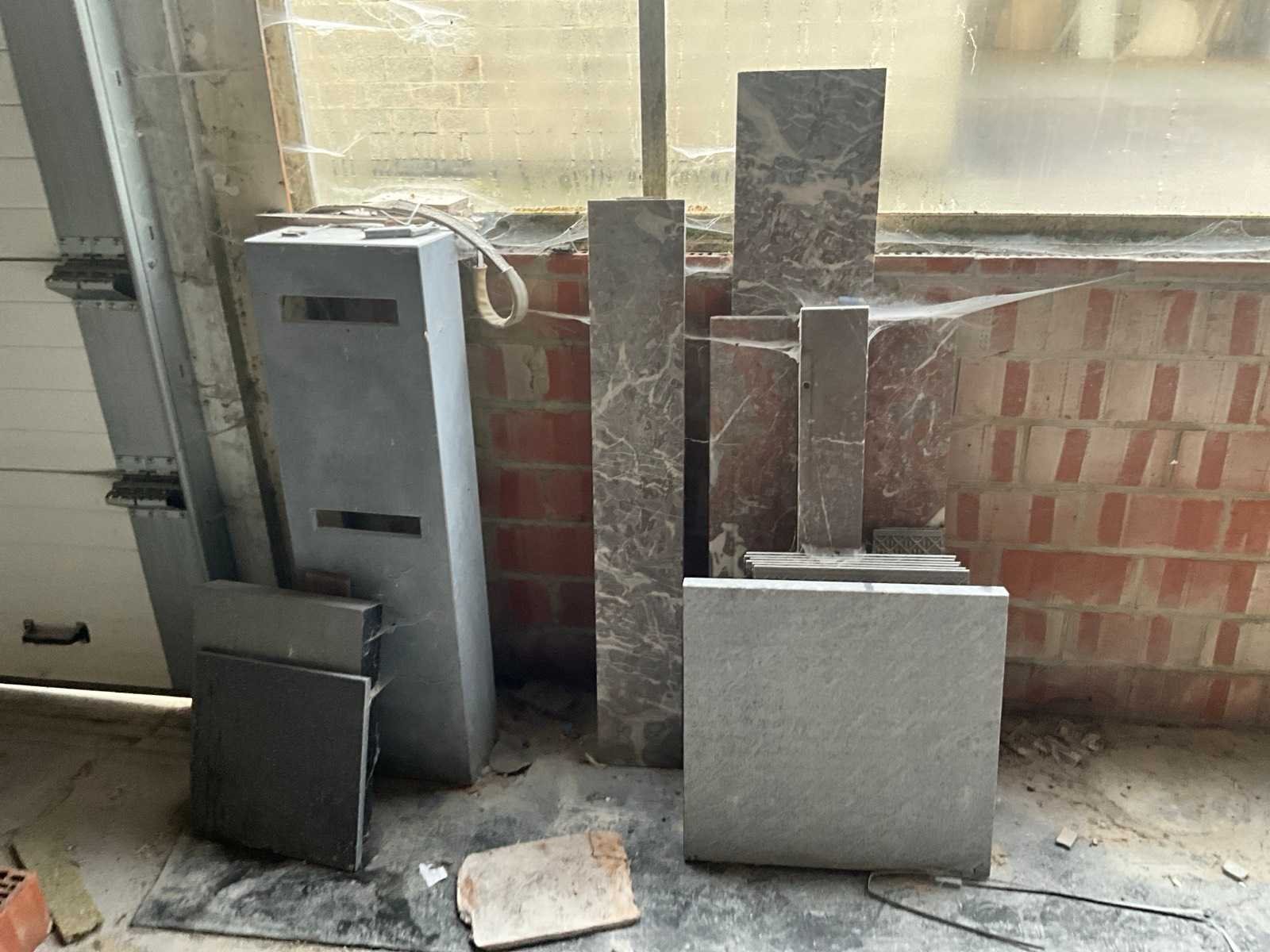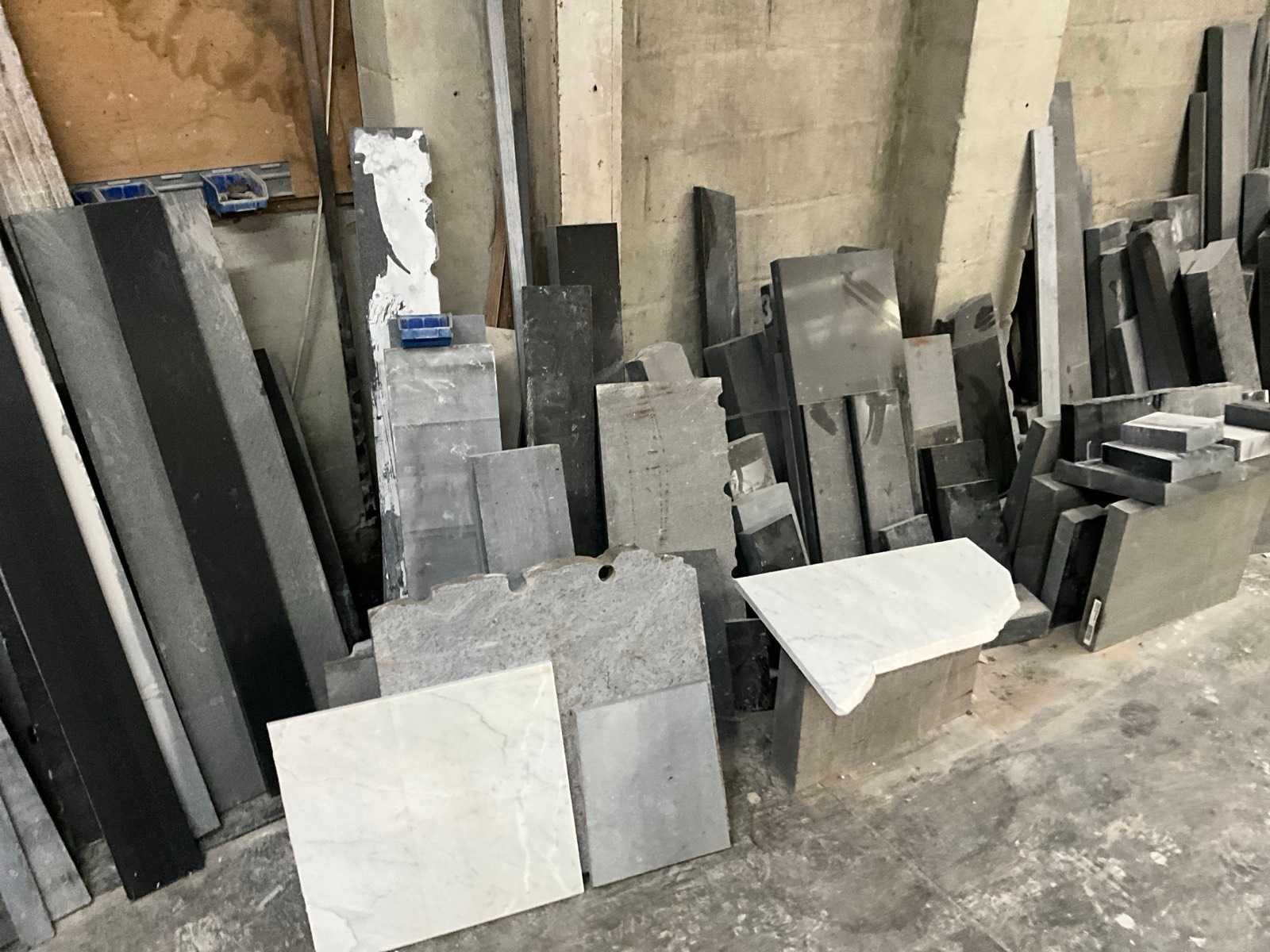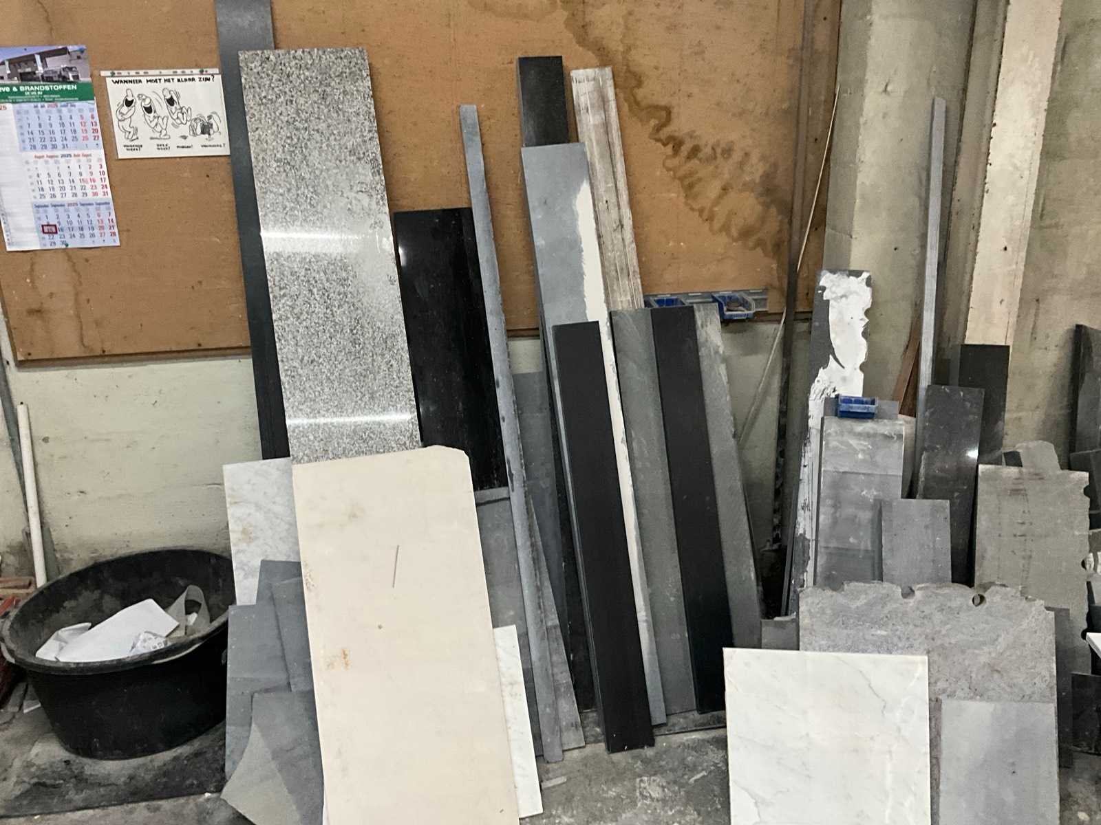 Divers natuursteen en blauwsteen in diverse afmetingen, + werkbank voorzien van 3x natuurstenen bovenbladen, afgifte volgens aanwijzing door grote poort zie laatste foto Nee