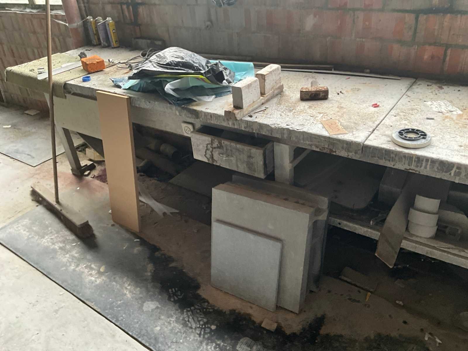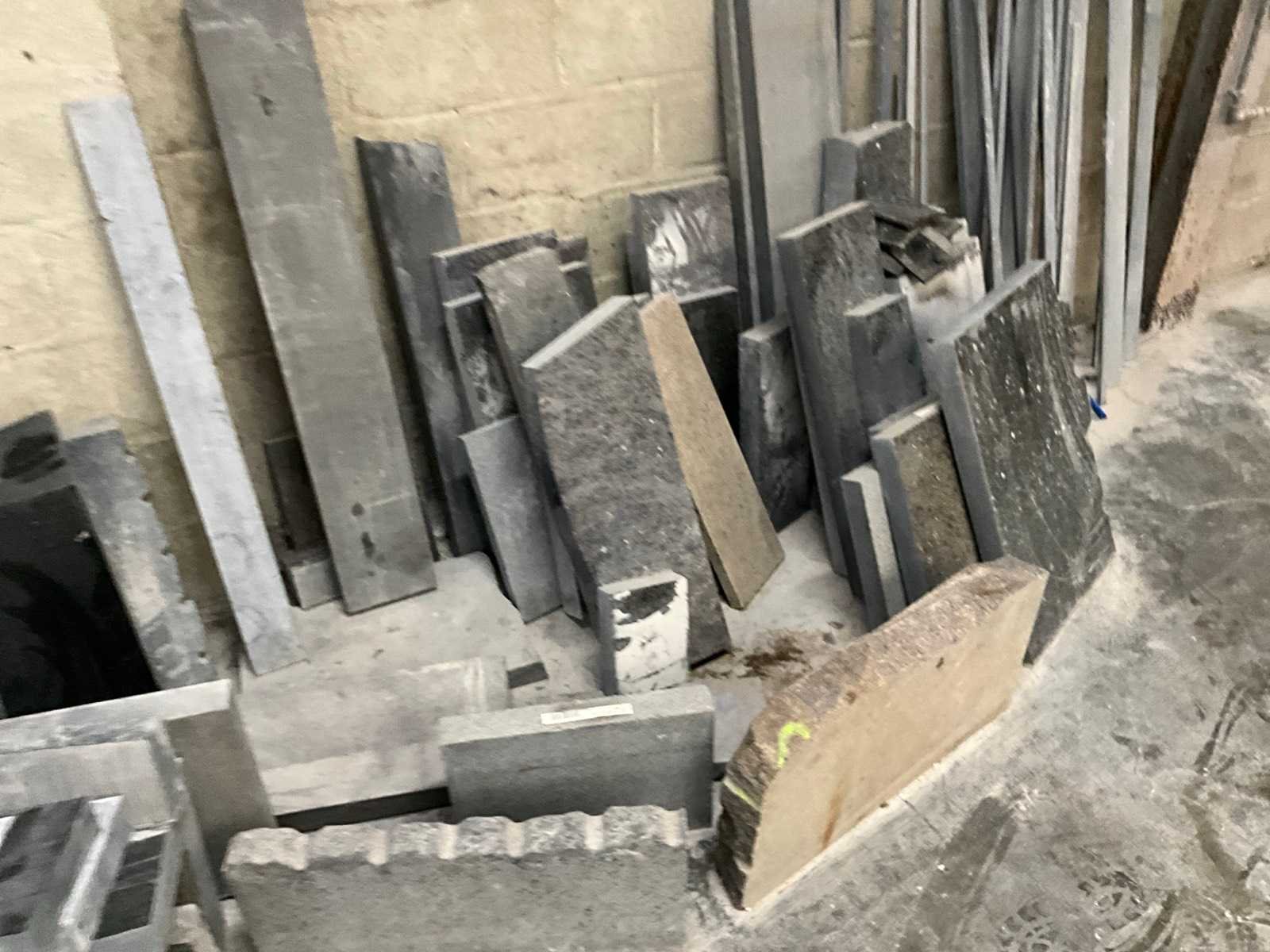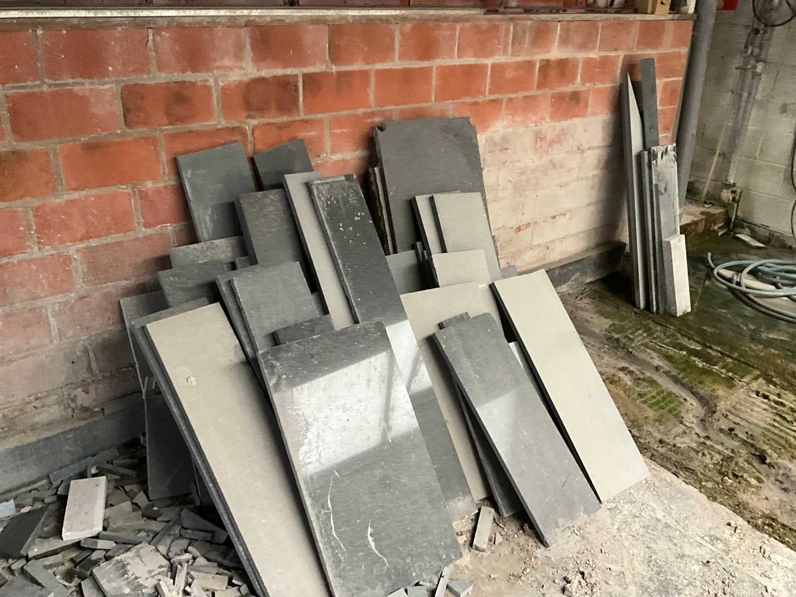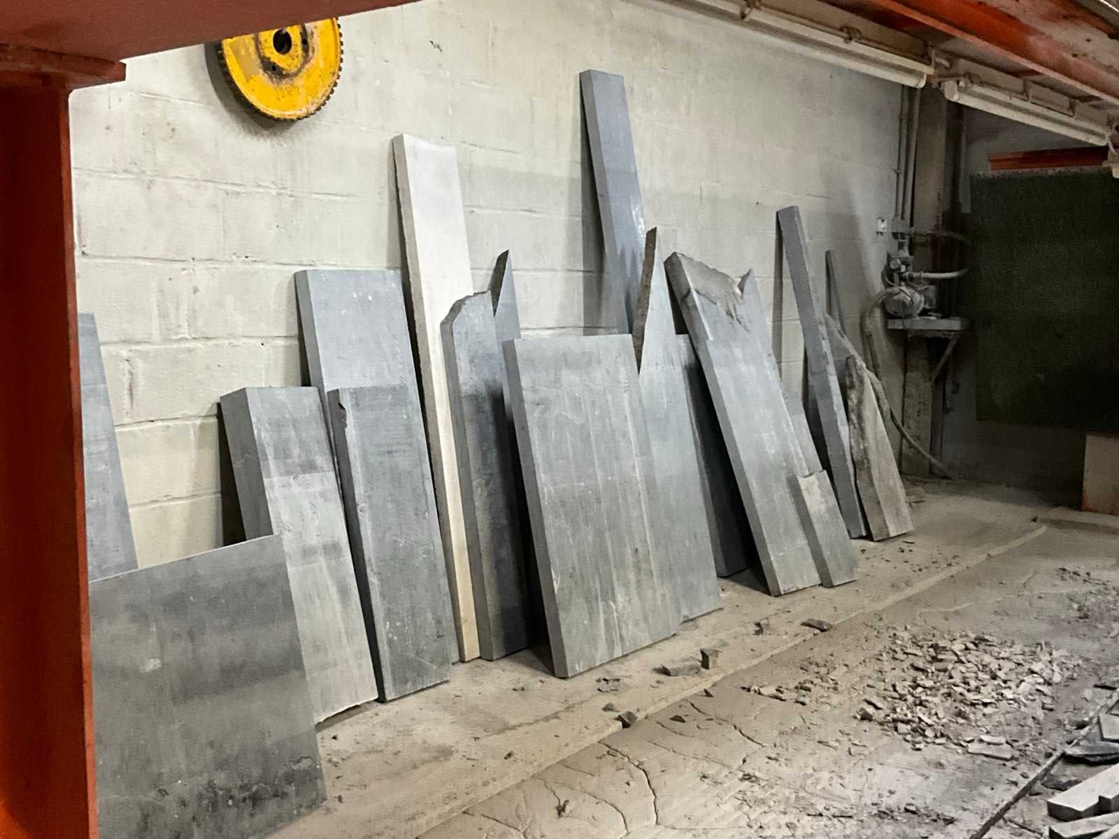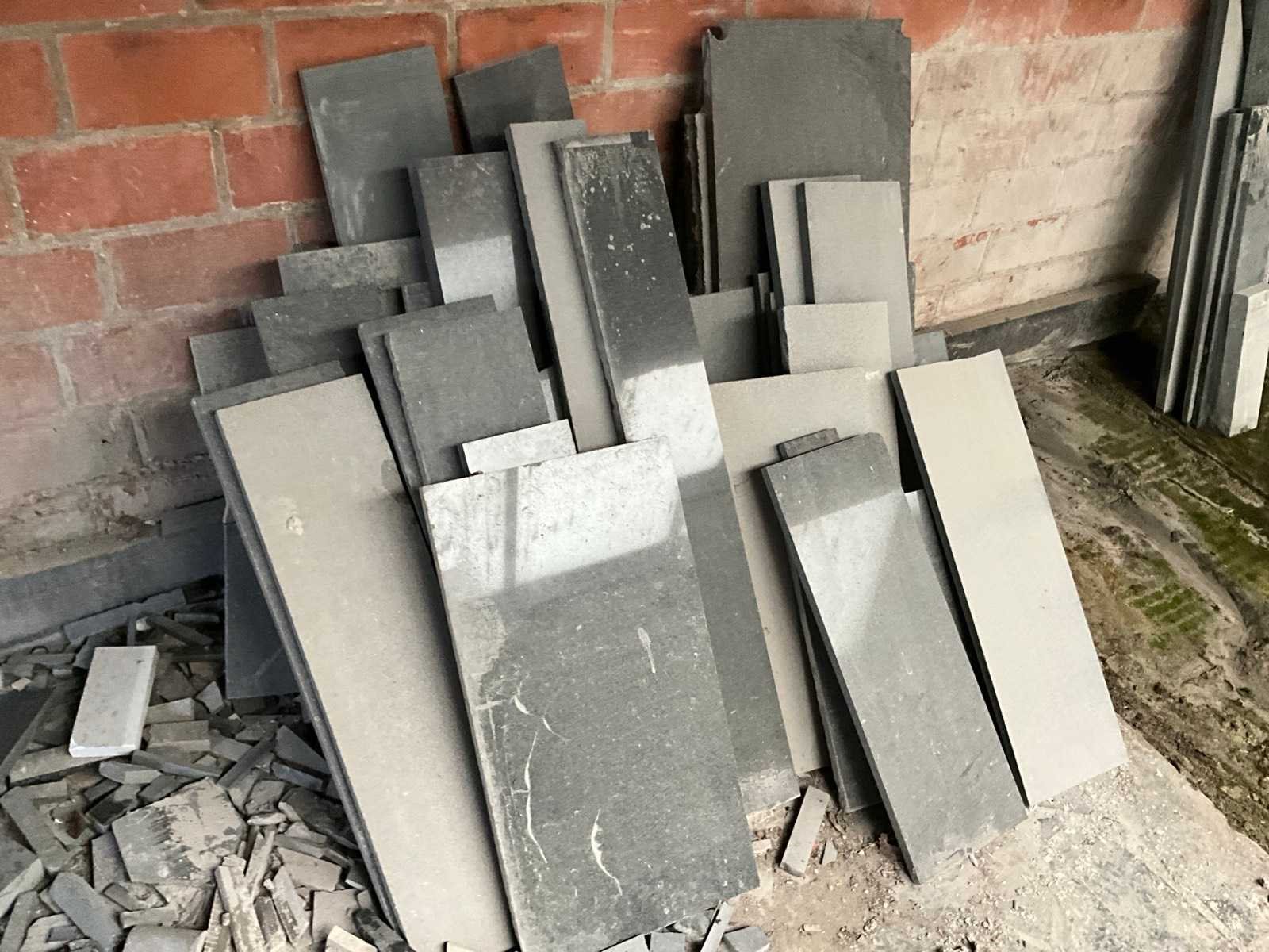 Divers natuursteen en blauwsteen in diverse afmetingen, + werkbank voorzien van 3x natuurstenen bovenbladen, afgifte volgens aanwijzing door grote poort zie laatste foto Nee