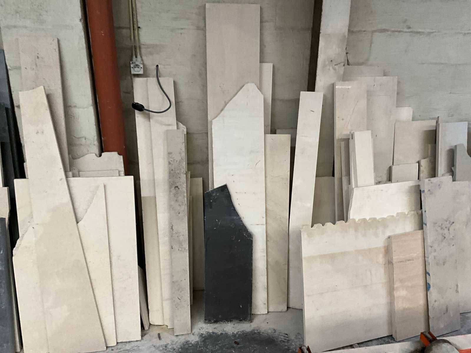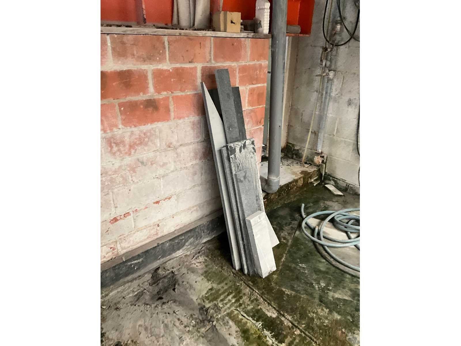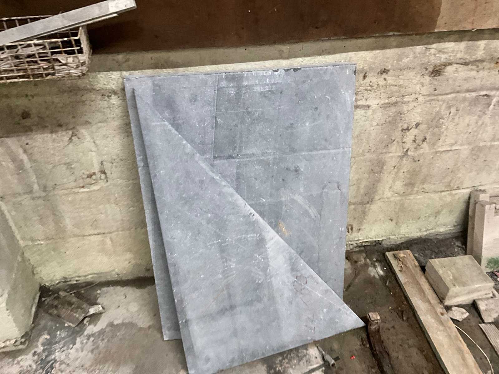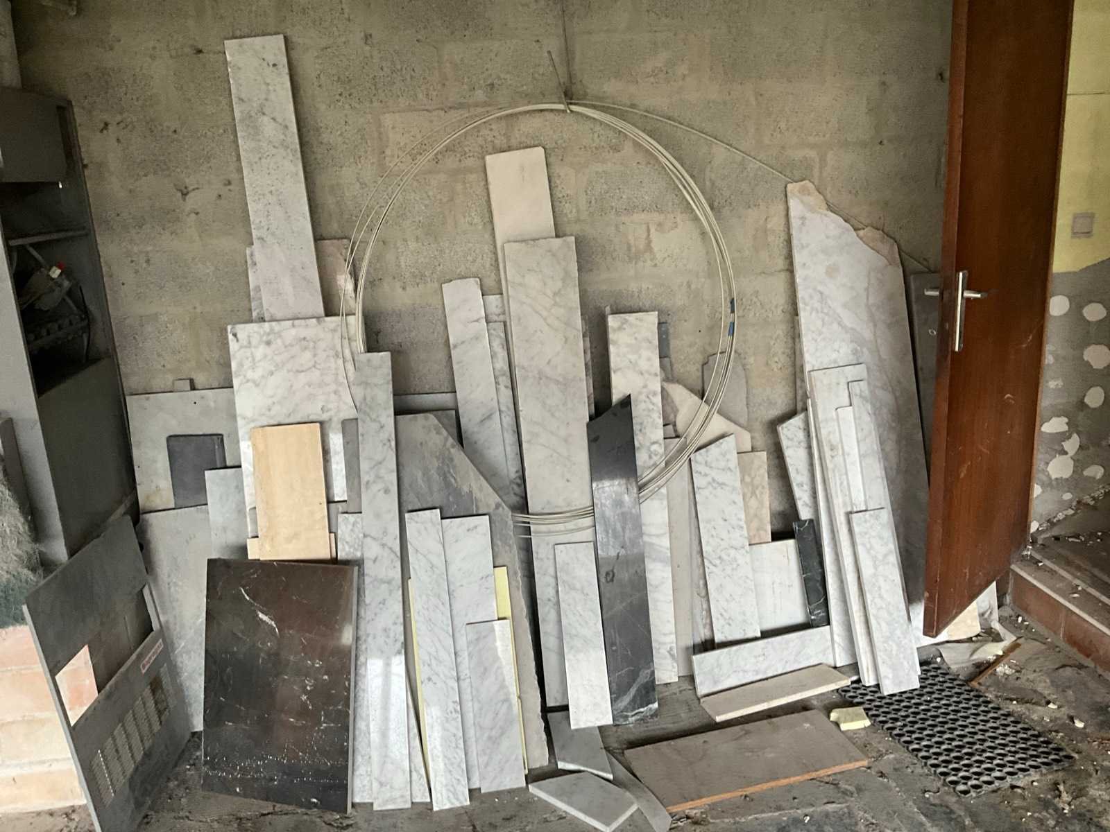 Divers natuursteen en blauwsteen in diverse afmetingen, + werkbank voorzien van 3x natuurstenen bovenbladen, afgifte volgens aanwijzing door grote poort zie laatste foto Nee