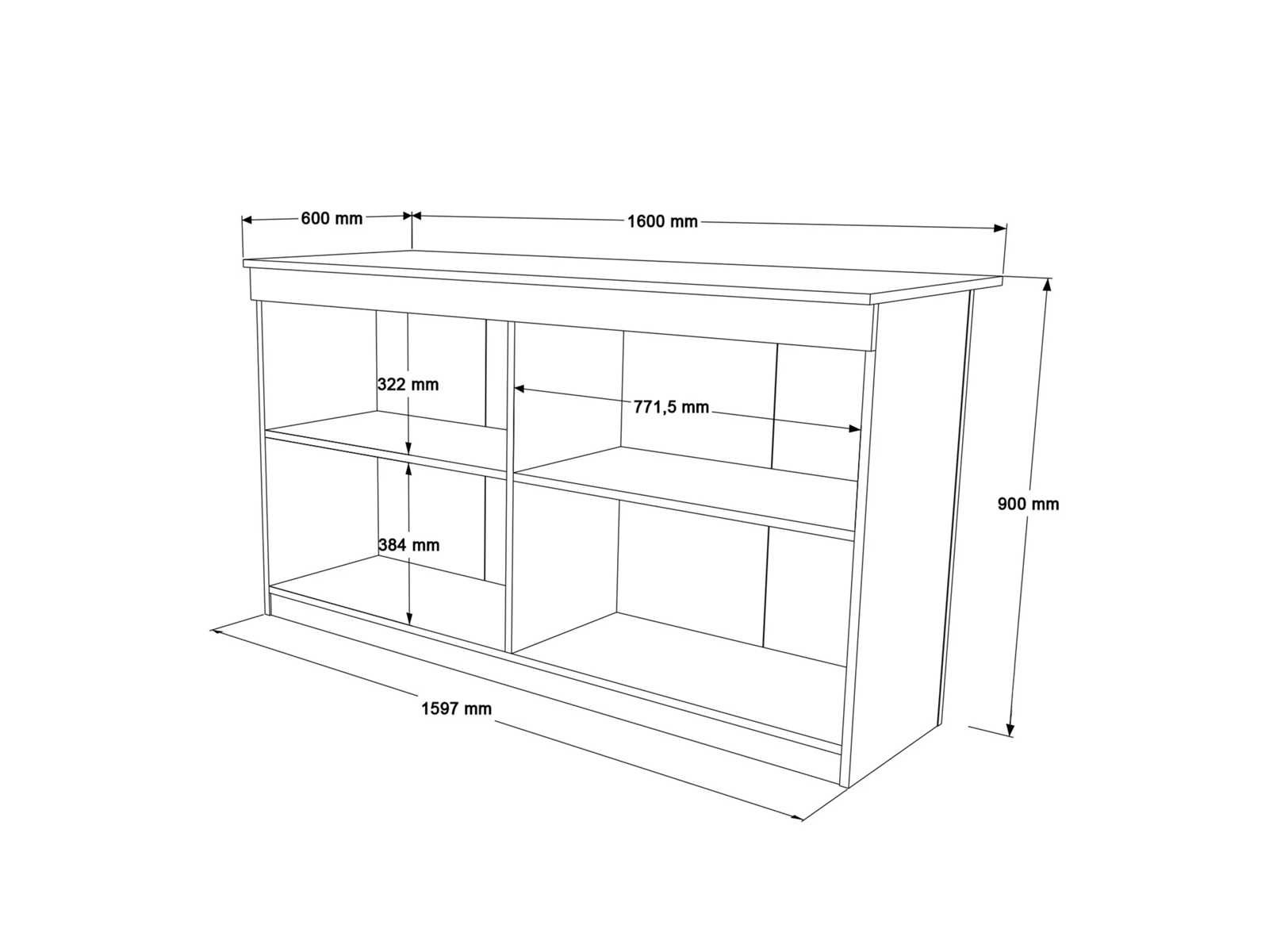 Technische details: Materiaal: 100% melamine spaanplaat Dikte: 18 mm Breedte: 160 cm Hoogte: 90 cm Diepte: 60 cm Kleur: Wit Non