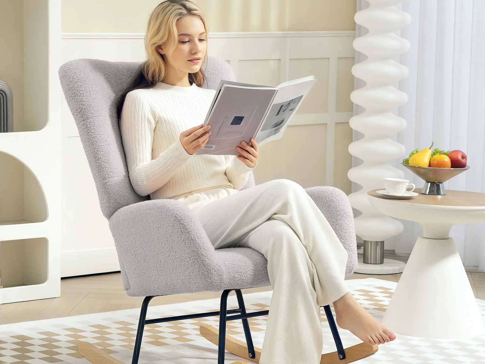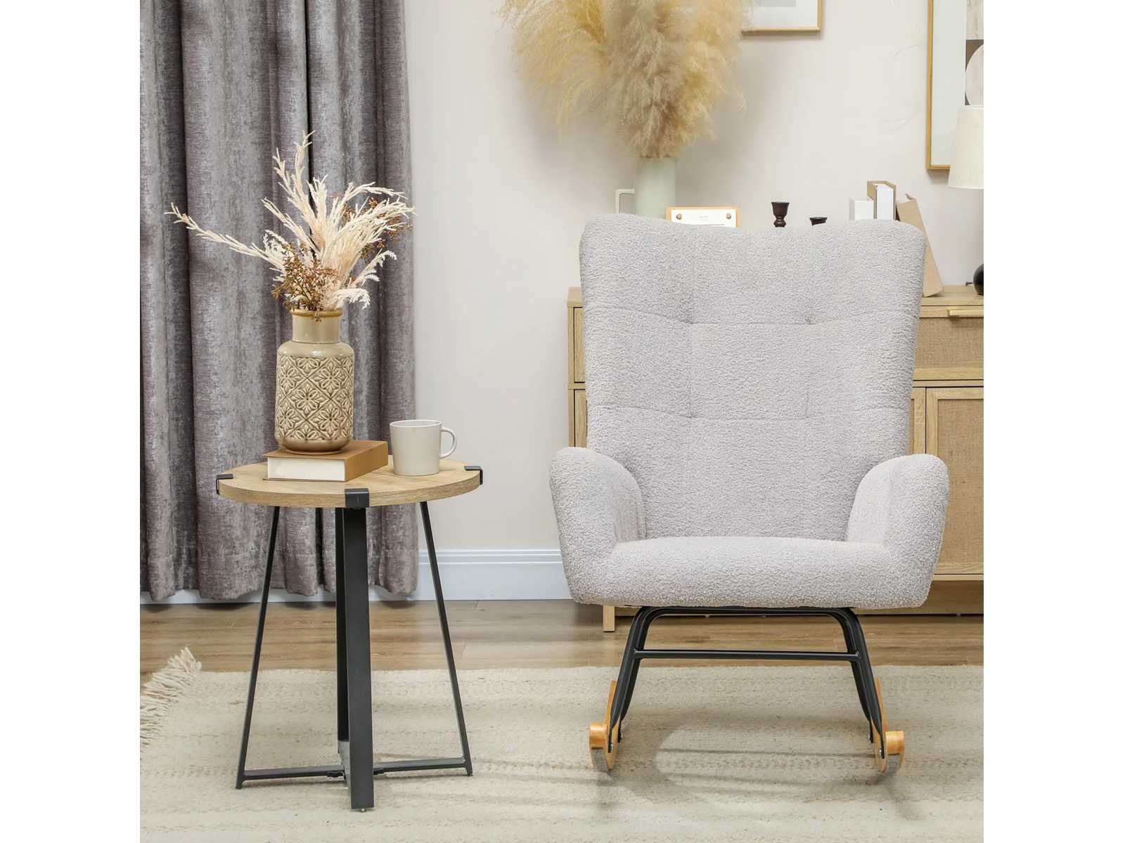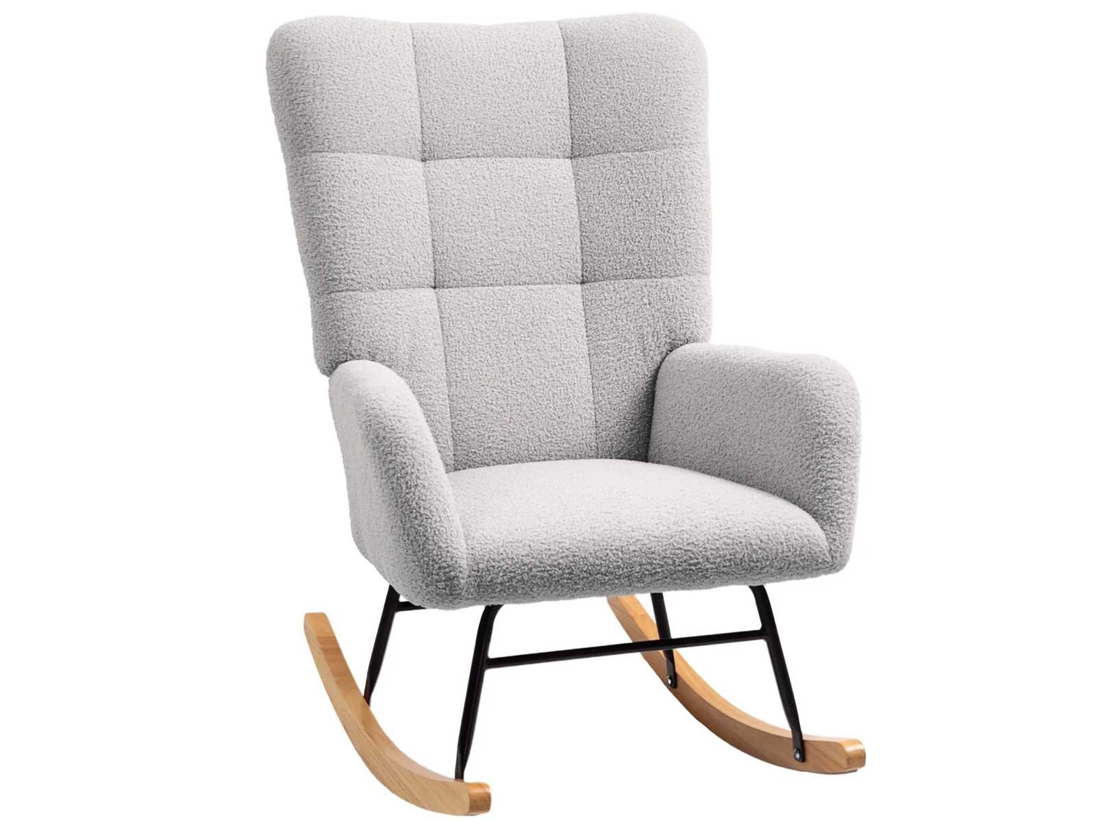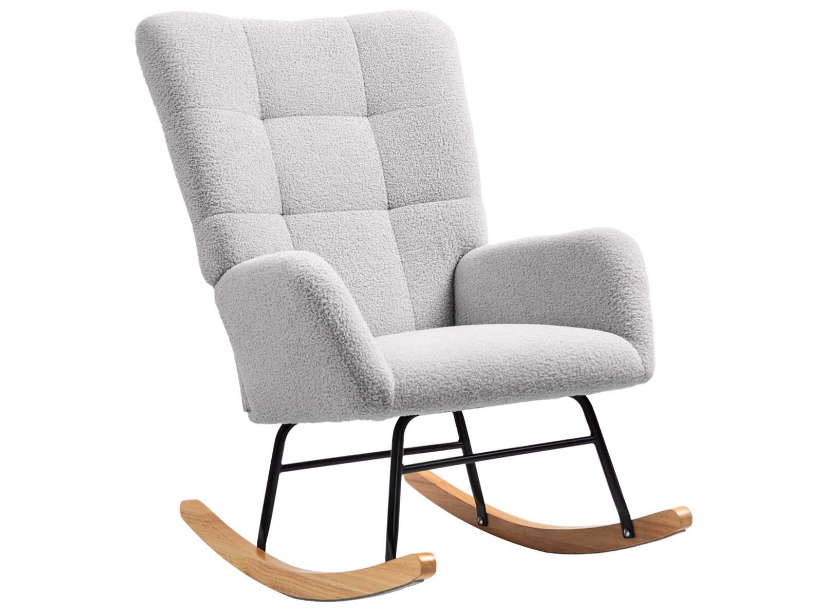 Specificaties: - Kleur: Lichtgrijs - Materialen: Teddy Velvet (polyester), schuim, metaal, rubberhout - Afmetingen: 70L x 94D x 100H cm - Zitmaat: 50B x 46D x 45-50H cm - Rugleuninggrootte: 65B x 69H cm - Rugleuningdikte: 10 cm - Maximaal ondersteund gewicht: 120 kg Non