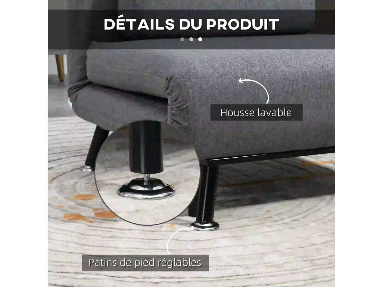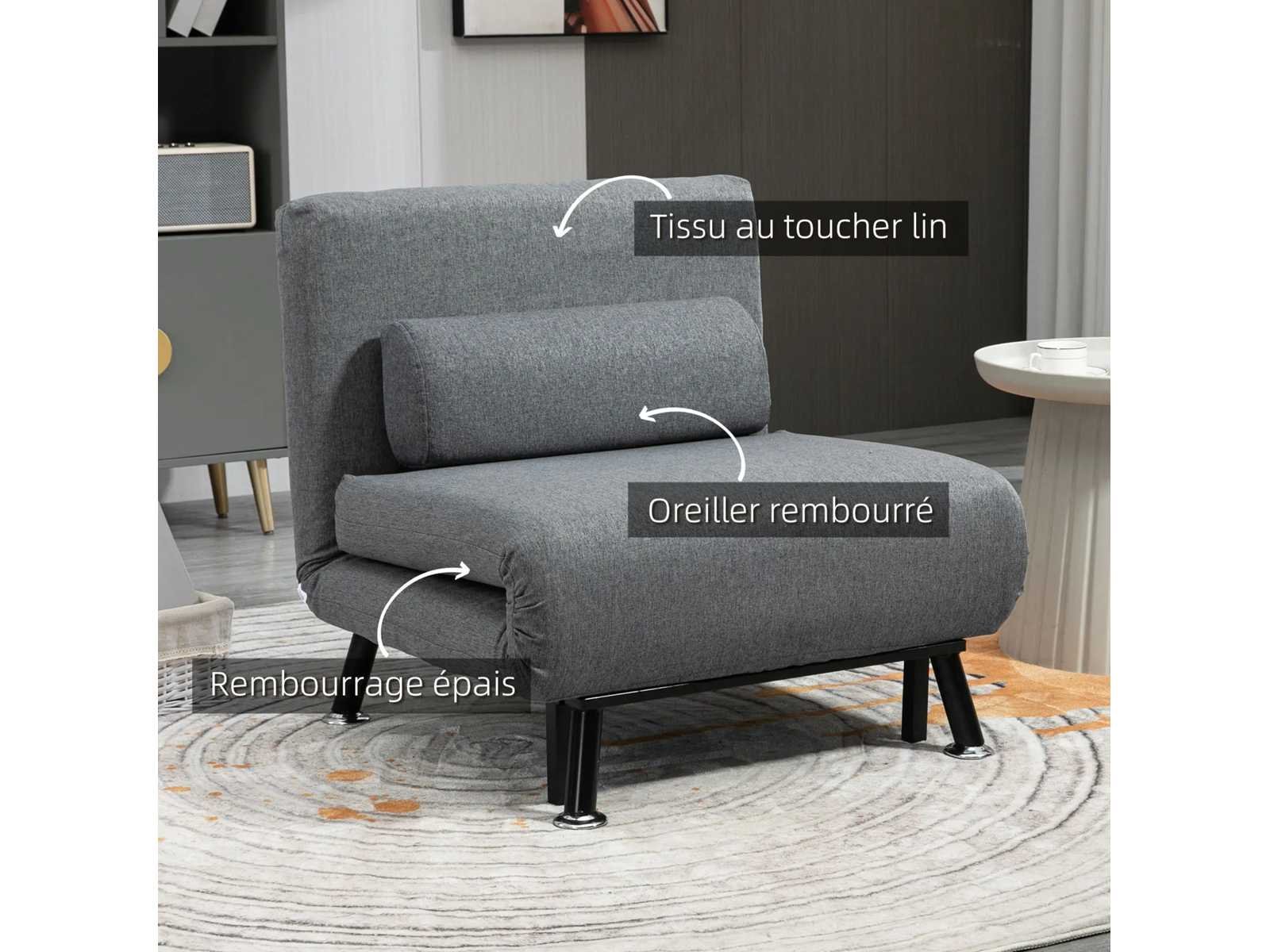 - Eigentijds ontwerp 1-zitter slaapbank voor perfecte integratie in de interieurruimte van uw keuze: woonkamer, slaapkamer, kantoor, enzovoort. - Zachte vulling en zachte, aangename suède coating - Eenzitter fauteuil met kussen voor een gezellige touch - 4 schuine metalen poten: extra elegantie, verfijning en optimale stabiliteit - Fauteuil voor dagelijks of incidenteel gebruik Specificaties: - Kleur: Grijs - Materialen: stof, metaal, schuimvulling -Zon. Fauteuil: 75L x 70B x 75H cm -Zon. Bed: 180L x 75B x 25H cm -Zon. Kussen: 55L x 20L cm (dikte: 12cm) - Aanbevolen maximale belasting: 150 kg Non