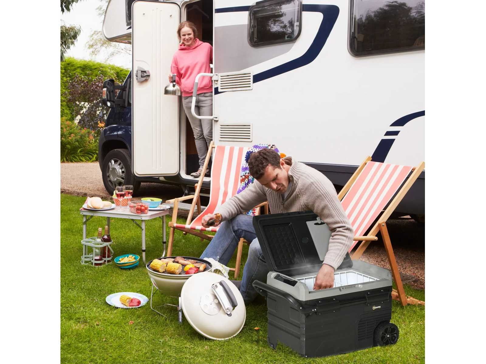Specificaties: - Kleur: grijs+zwart - Materiaal: Plastic, HDPE - Totale afmetingen: 71,1L x 46B x 44H cm - Volume: 40 L - Laagste temperatuur: -20°C - Spanning: DC 12V/24V (voor autogebruik), 110V-240V (zelfstandig gebruik) - Verlengkabel voor sigarettenaansteker in auto: 2,5 m - Wisselstroomkabel: 2m - Compressorvermogen: 60W - Laadvermogen: 150 kg - Opmerking: Het wordt aanbevolen om het ongeveer acht uur te laten rusten voordat je het gebruikt, niet op zijn zij, meestal ondersteboven gebruiken kan kort 30° worden gekanteld Non