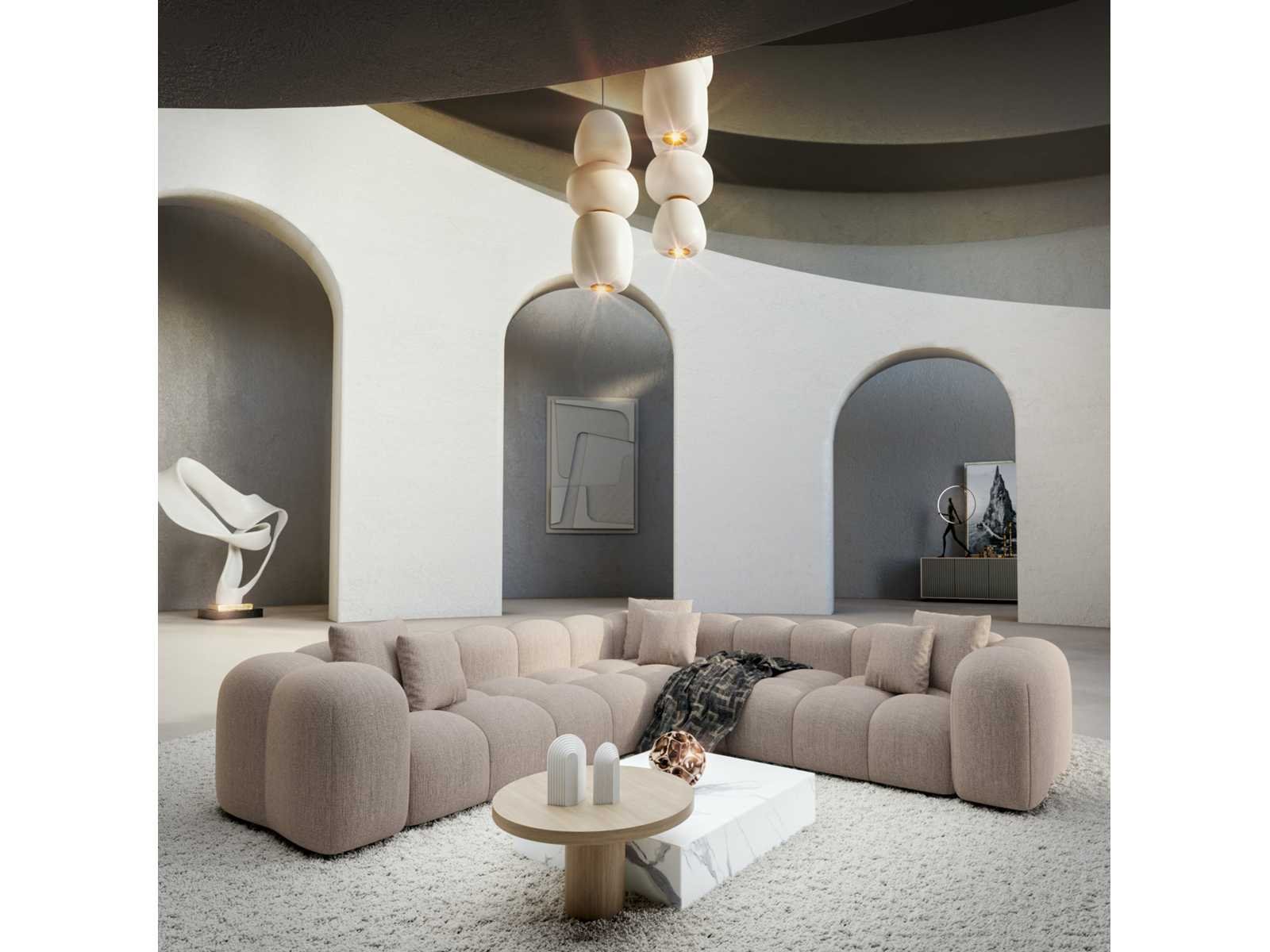 Materiaal Vulling: Schuimdichtheid 30 kg/m³ Structuur: FCS-gecertificeerd massief sparrenhout, spaanplaat, hoogdichte vezelplaat (MDF) Voeten: Plastic Laadcapaciteit Laadvermogen: 150 kg per element Lengte: 249 cm Breedte: 249 cm Hoogte: 72 cm Zithoogte: 42 cm Zitdiepte: 65 cm Non