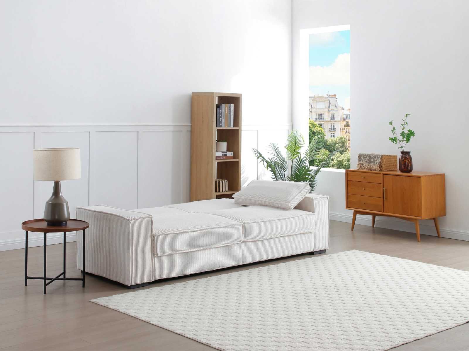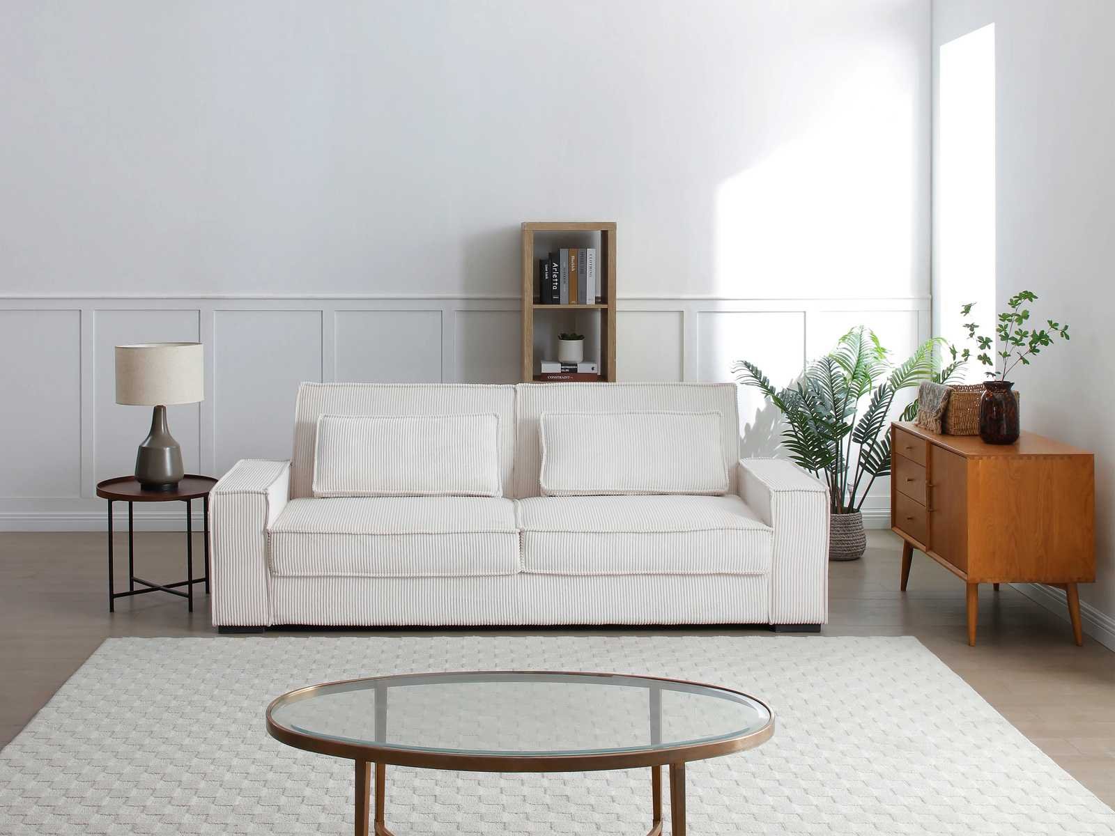 Kenmerken Kleur (tint): Beige Zaak: 100% polyester, fluweel Structuur: Hout, multiplex Afwerking: Geribbeld Aantal plaatsen: 3 zetels Opties: Kussens inbegrepen Zitbekleding: Polyurethaanschuim, gerecycled polyurethaanschuim Zitdichtheid: 50 kg/m³ Stoelvering: Nosag-veren, kruisende elastische banden, spiraalveren Achterleuningbekleding: Polyurethaanschuim Rugsteundichtheid: 50 kg/m³ Schorsing van het dossier: Nosag-veren, Snijdende elastische banden Met armleuningen Type cabriolet: Sofa Zonder bedbasis Maximale belasting ondersteund: 360 kg Verzamel jezelf Grootte Lengte: 230 cm Hoogte: 90 cm Diepte: 95 cm Beenhoogte: 5 cm Zithoogte: 44 cm Zitdiepte: 66 cm Breedte van het bed: 119 cm Bedlengte: 186 cm Non