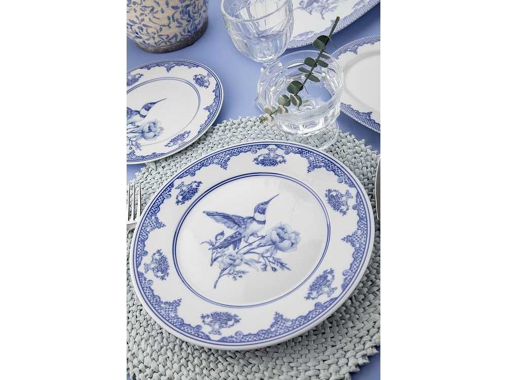 Tafelbediening 100% porselein: Serveerschaal: 27 x 27 cm (6 stukken) Soepschaal: 21 x 21 cm (6 stukken) Kom: 16 cm (6 stukken) Plat: 24 x 17 x 3 cm (1 stuk) Groot schaaltje: 32 x 20 x 3 cm (1 stuk) Non