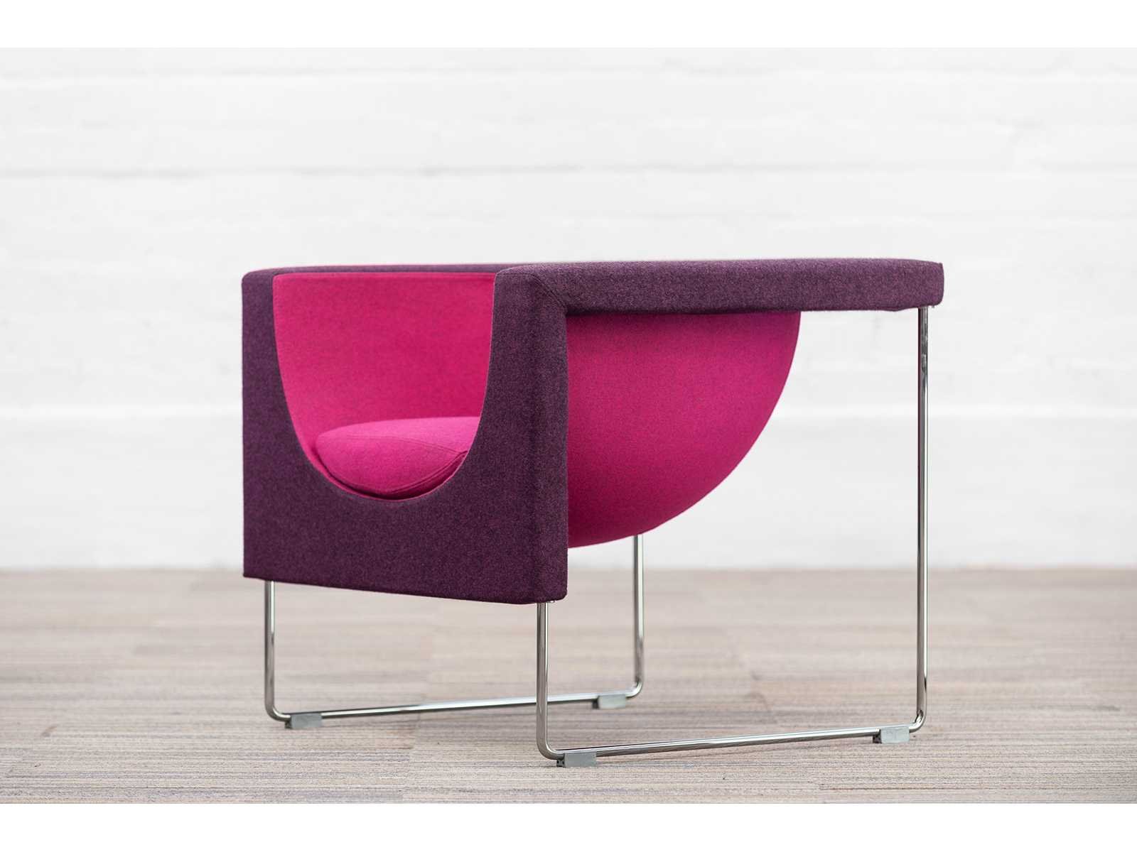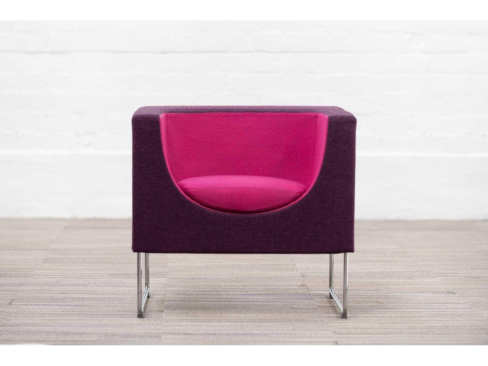 STUA Nube Design Loungechair Fushia/grijs Nube is een ontwerp van Jesús en Jon Gasca. De buitenlijnen van de Nube-fauteuil van STUA zijn gemaakt van platte parallelle oppervlakken terwijl de binnenzijde rond en warm is, als van het menselijk lichaam. Deze tegenstrijdigheid wordt extra versterkt door het gebruik van twee kleuren stof. Het frame van massief verchroomd staal is licht, minimalistisch en bijna onzichtbaar. Nee Merk: STUA Model: Nube Kleur: paars/fuchsia Gewicht: 10kg Lengte: 70cm Breedte: 67cm Hoogte: 65cm Zithoogte: 45cm Materiaal: textiel