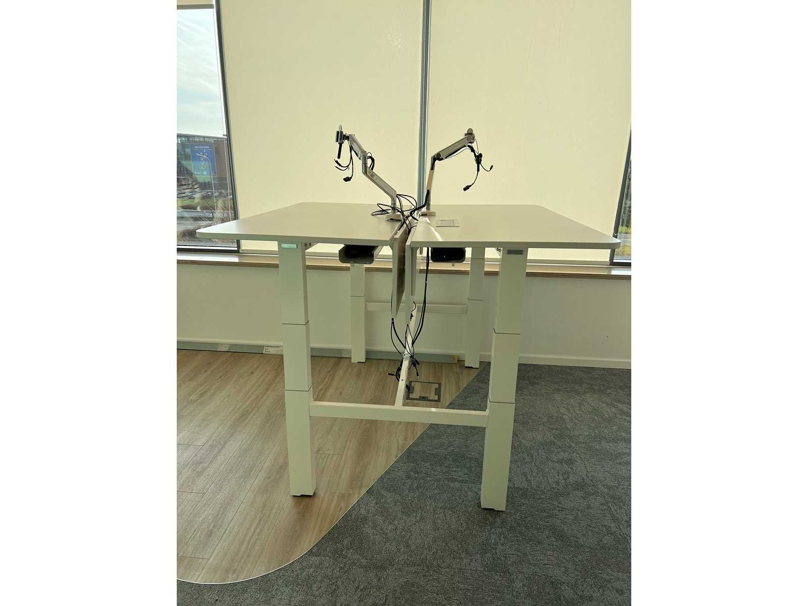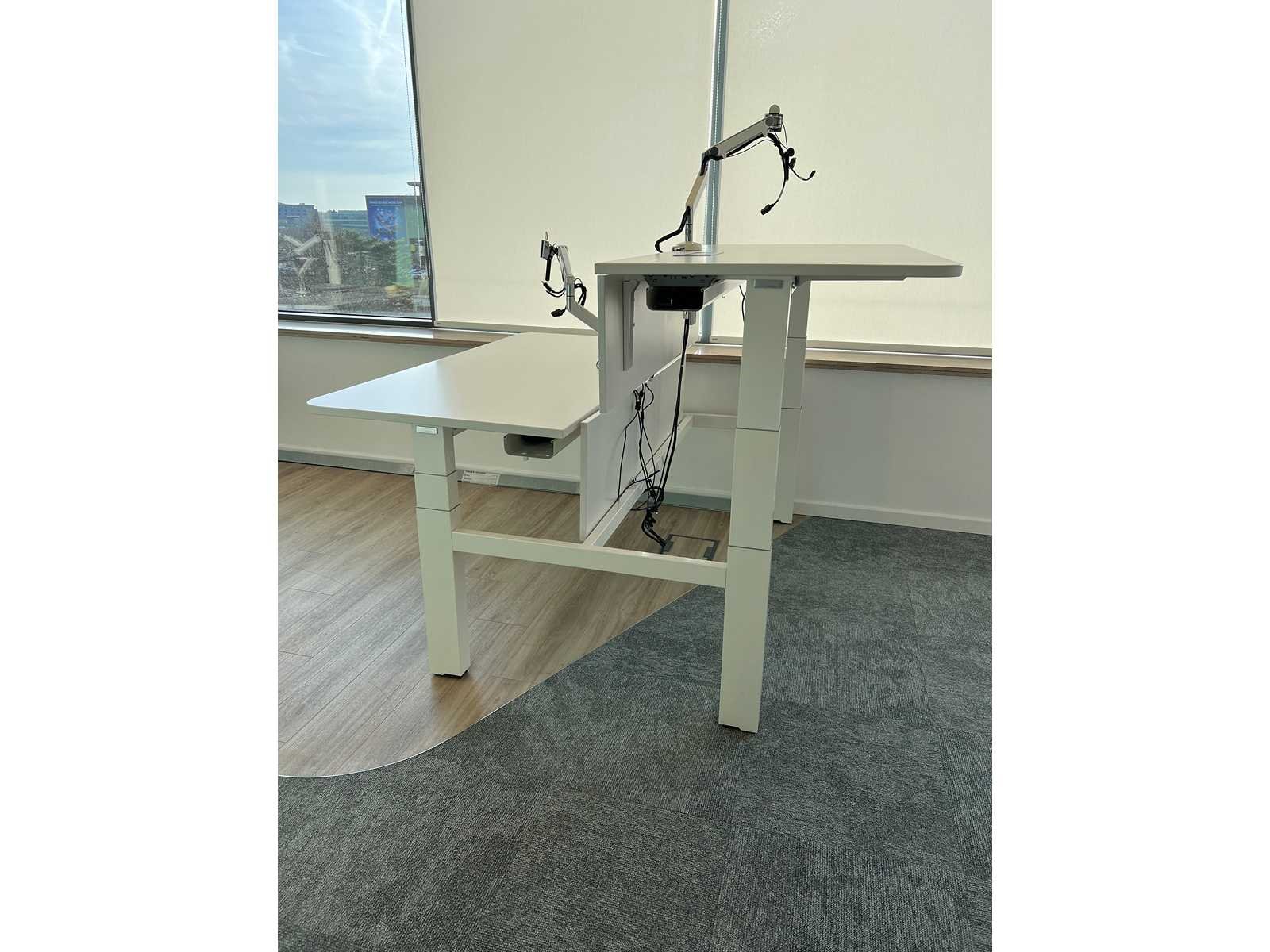Elektrisch verstelbare zit/sta 2 persoonswerkplaats Nee Merk: HAWORTH Type: Zit/Sta elektrisch 2p workbench Model: Your-Place Zit-sta: true Elektrisch verstelbaar: true Kleur: wit Gewicht: 80kg Lengte: 160cm Breedte: 160cm Hoogte: 62-125cm Materiaal: melamine/metaal
