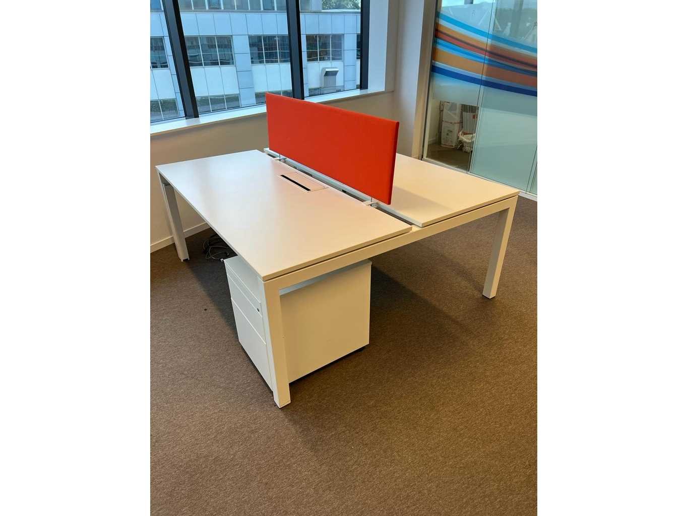 Nee Merk: PAMI Type: 2p workbench Kleur: wit Gewicht: 50kg Lengte: 180cm Hoogte: 74cm Materiaal: melamine/metaal Diepte: 160cm