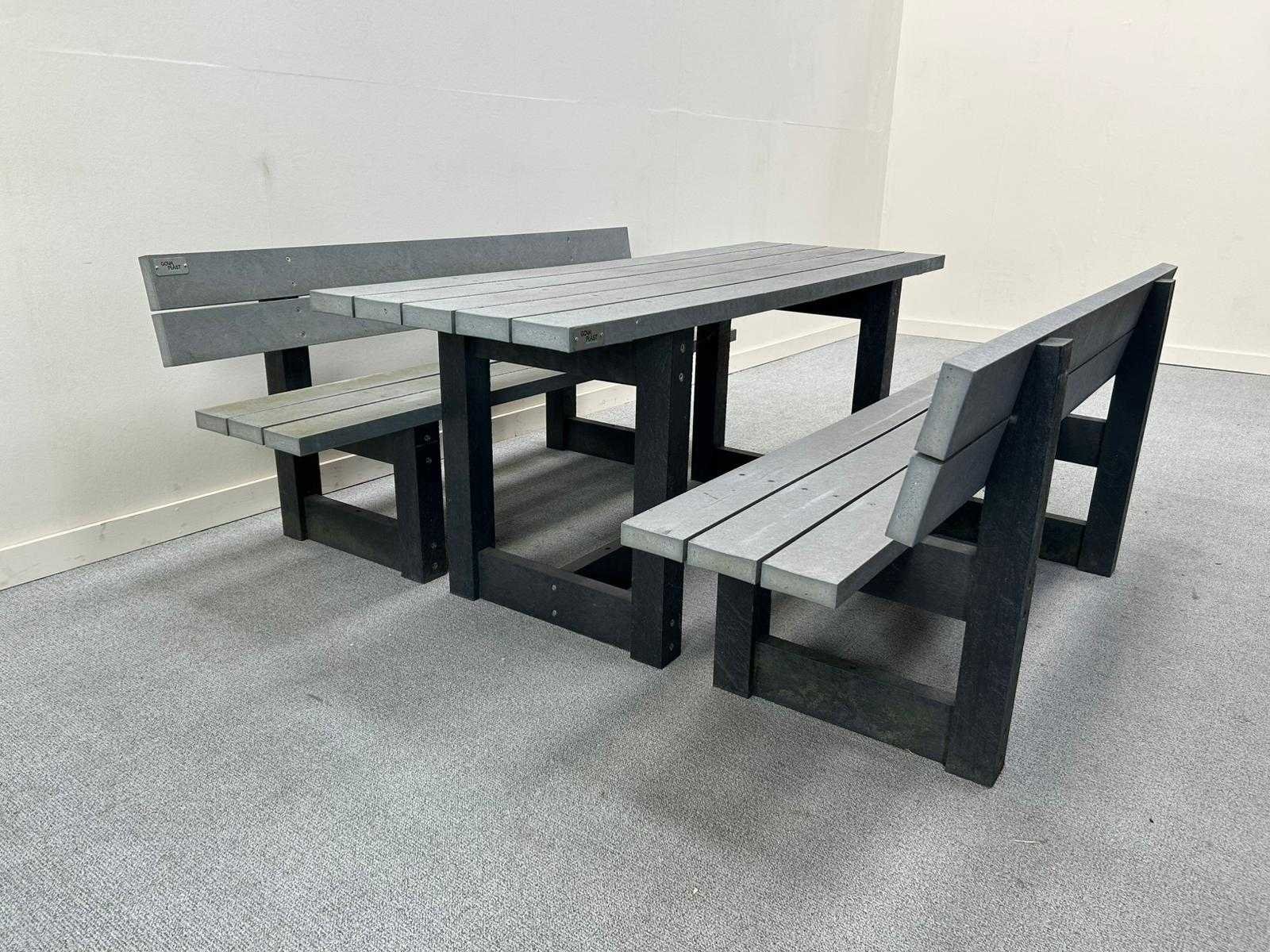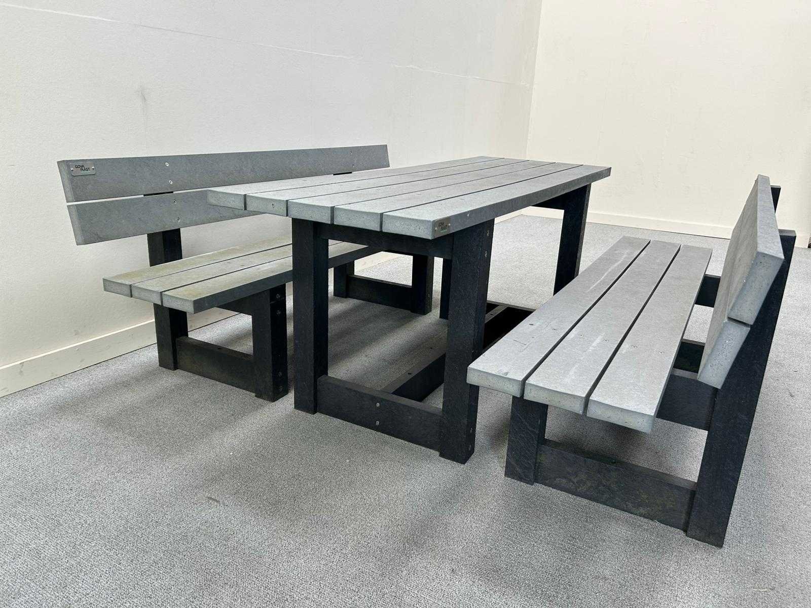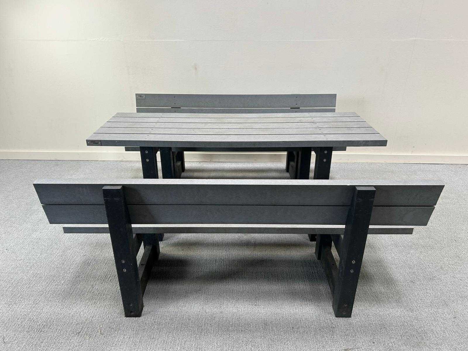 Nee Merk: GOVA PLAST Product type: 2 banken + tafel Kleur: grijs Lengte: 180cm Breedte: 63cm Hoogte: 75cm Materiaal: gerecycleerd kunststof