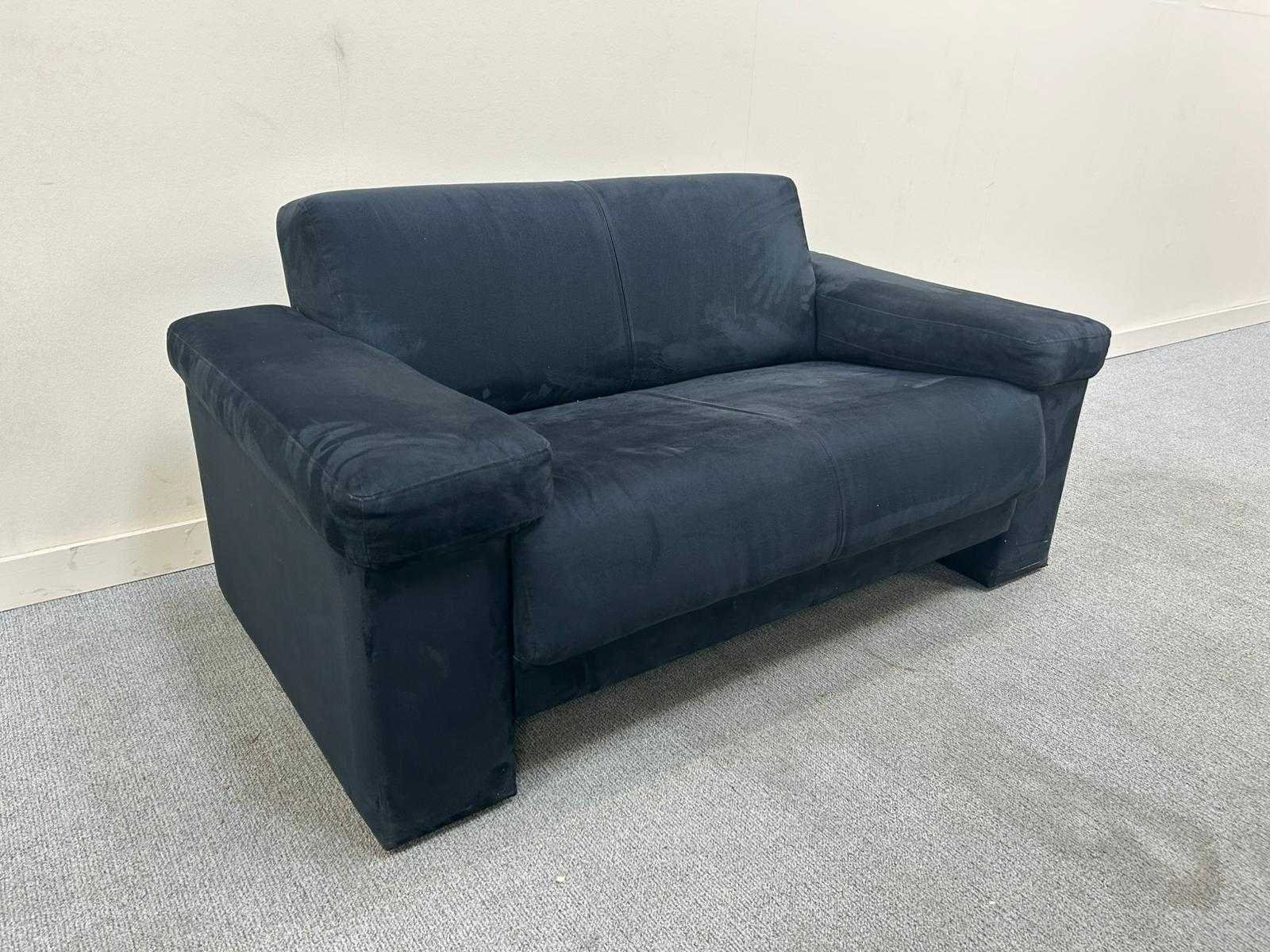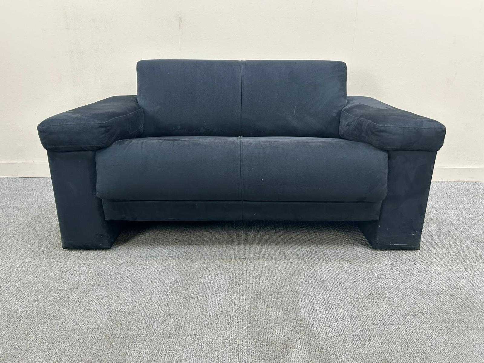 Zetel 2-zit in donkerblauwe stof, lichte gebruikssporen. Nee Product type: Zetel 2-zit Zitplaatsen: 2 Kleur: Donker blauw Gewicht: 60kg Breedte: 145cm Hoogte: 70cm Zithoogte: 46cm Diepte: 85cm Materiaal: Stof